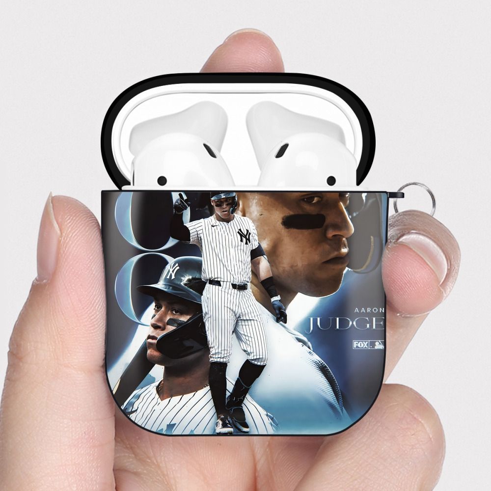 Aaron Judge 300 Home Runs 1 AirPods 2 Case Hard Shell Black, Flexible PC Material, Precise Cutouts, Full Protection, Anti-Fingerprint, Washable, Includes Keychain – Durable & Slim Design