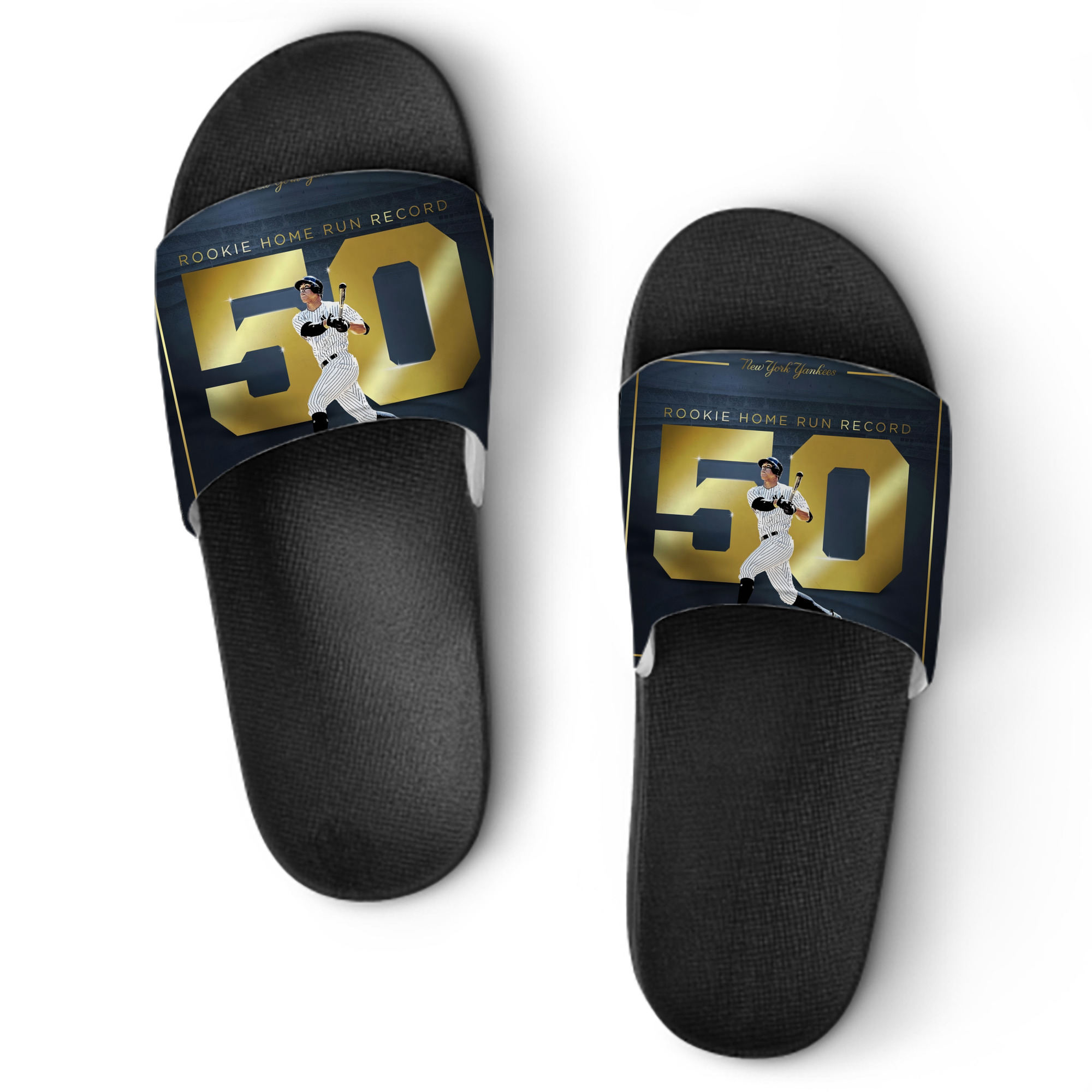 A generic imageAaron Judge 50 Home Runs 3 PVC Home Slippers For Men & Women – Durable, Comfortable, Waterproof, Non-Slip, Stylish Casual Indoor & Outdoor Sandals