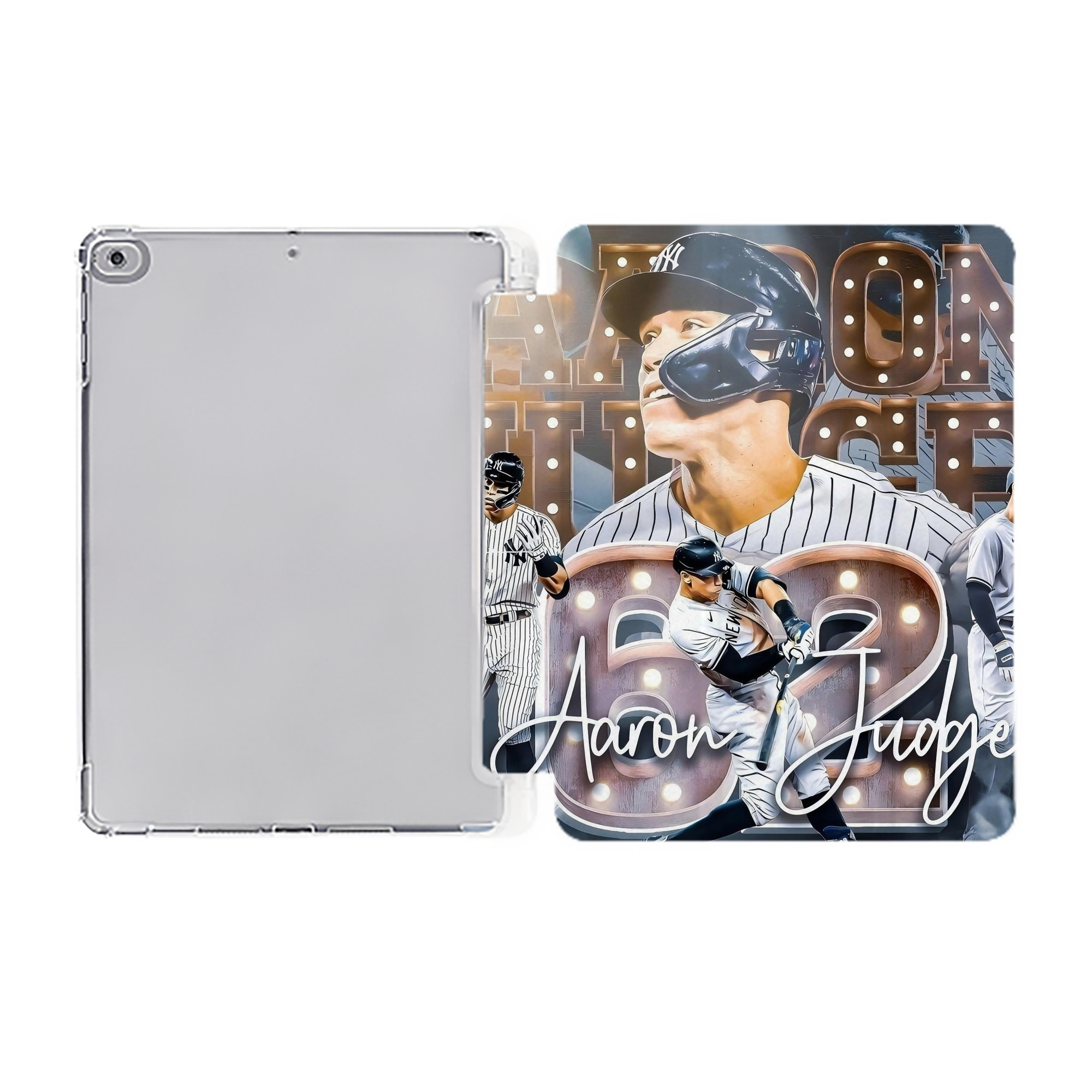 Aaron Judge 62 Home Runs Premium Tri-Fold PU Leather & Silicone IPad Case With Pencil Slot – Fits 9.5,10.5,10.9 – Adjustable Stand, Slim, Protective