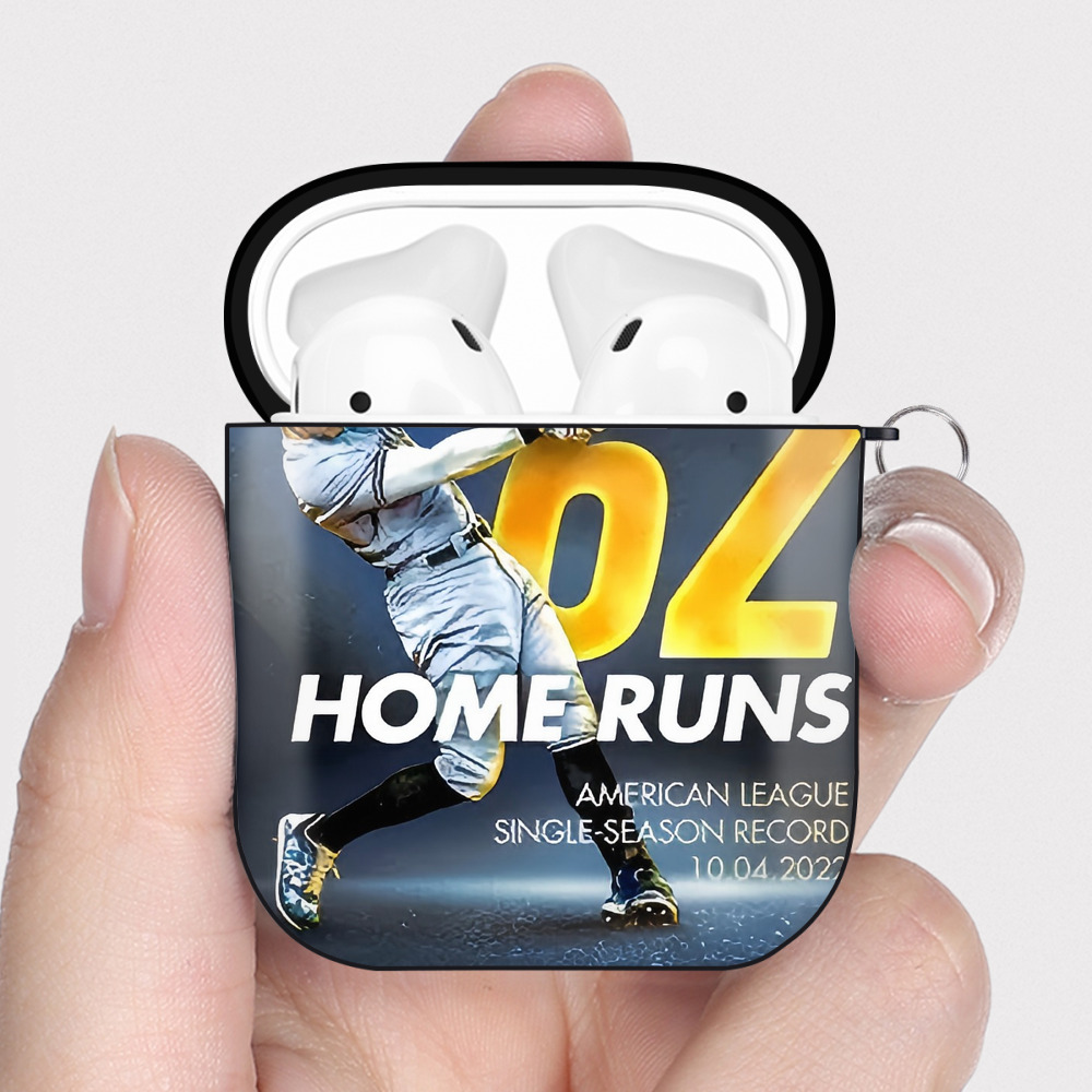 Aaron Judge 62nd Home Run Milestone AirPods 2 Case Hard Shell Black, Flexible PC Material, Precise Cutouts, Full Protection, Anti-Fingerprint, Washable, Includes Keychain – Durable & Slim Design