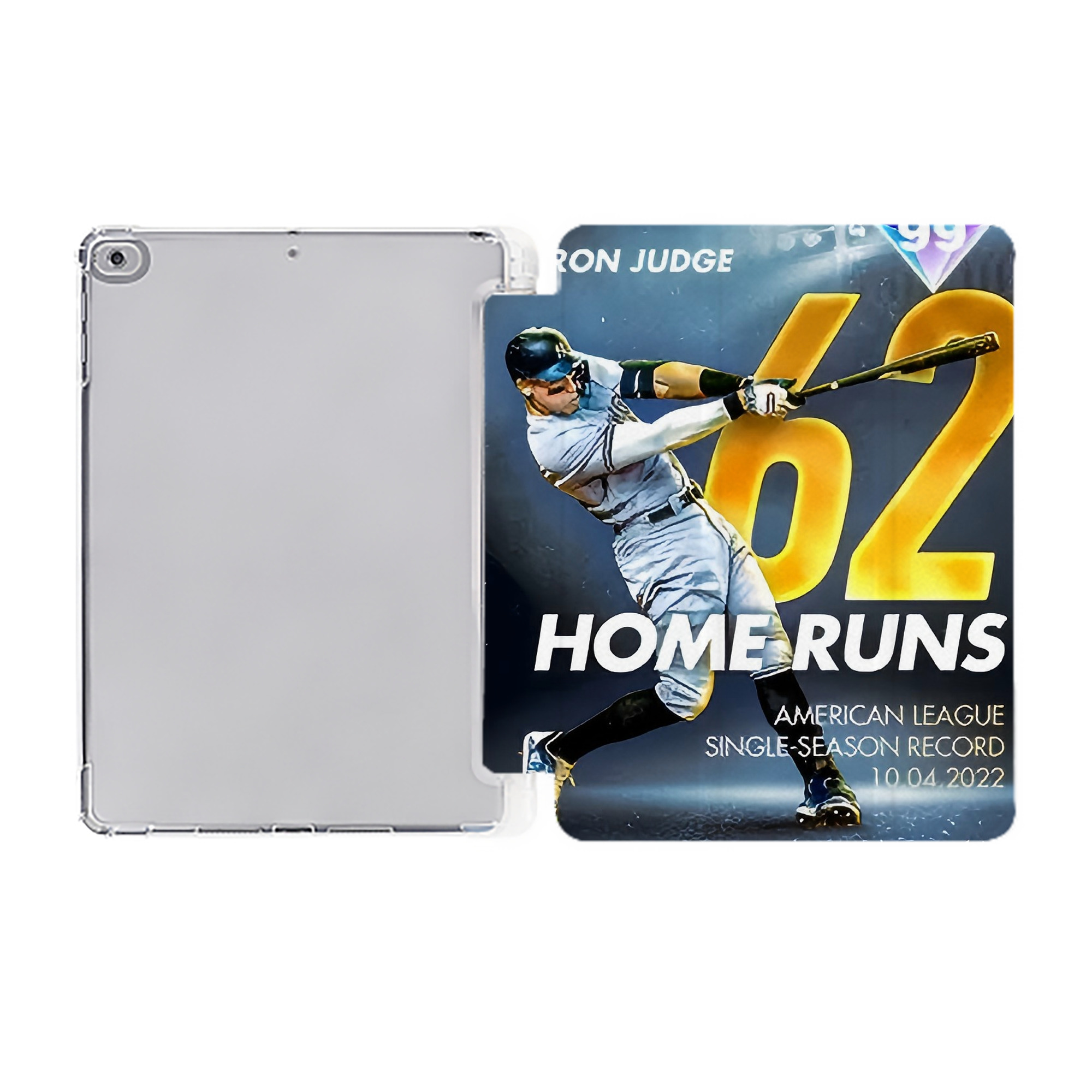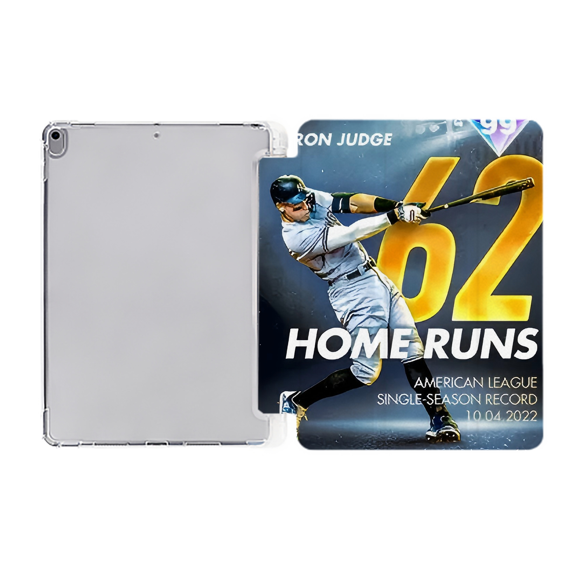 Aaron Judge 62nd Home Run Milestone Premium Tri-Fold PU Leather & Silicone IPad Case With Pencil Slot – Fits 9.5,10.5,10.9 – Adjustable Stand, Slim, Protective