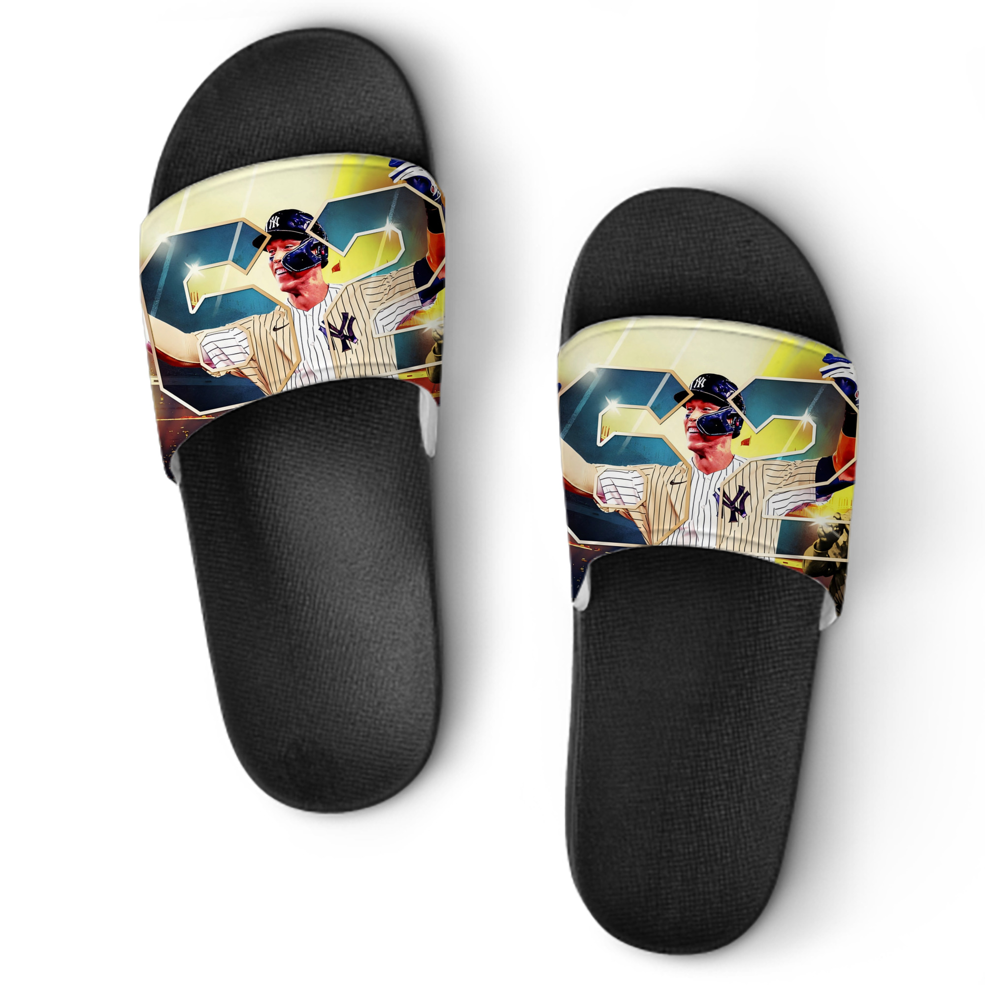 A generic imageAaron Judge 62nd Home Run PVC Home Slippers For Men & Women – Durable, Comfortable, Waterproof, Non-Slip, Stylish Casual Indoor & Outdoor Sandals