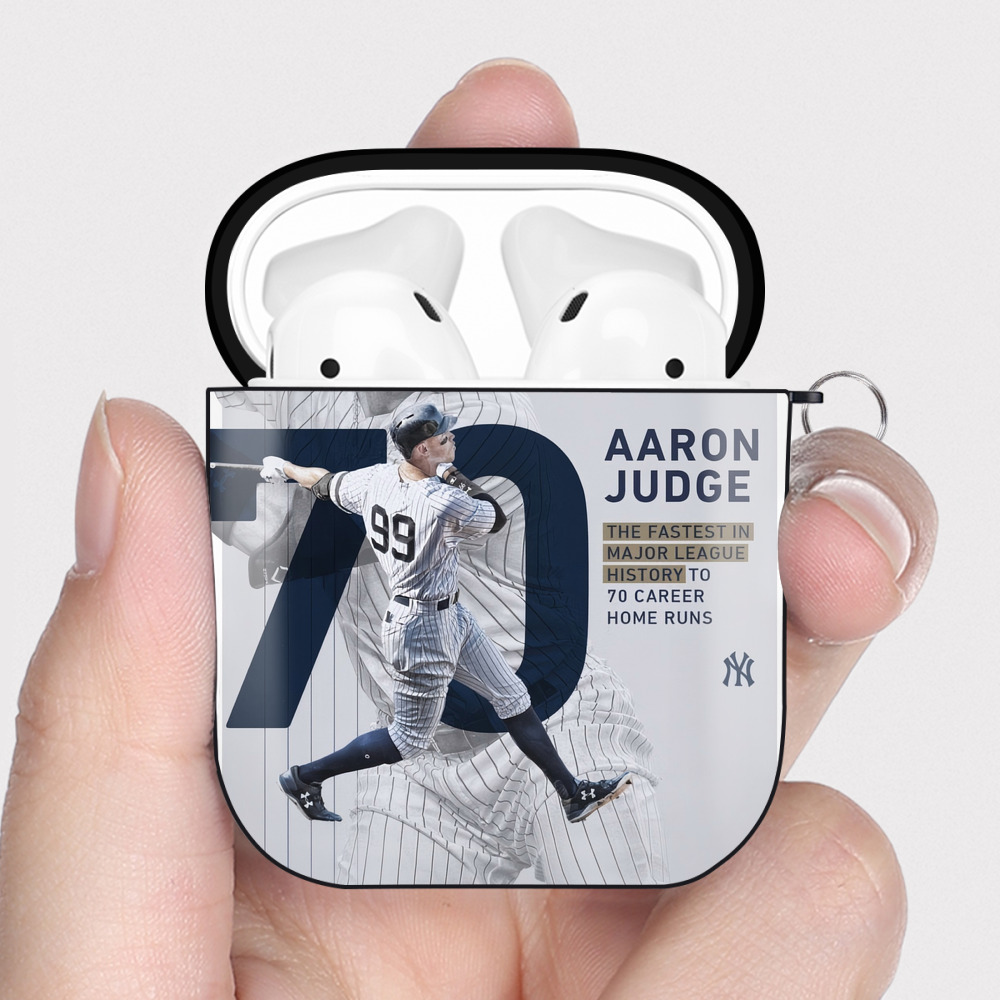 Aaron Judge 70 Home Runs AirPods 2 Case Hard Shell Black, Flexible PC Material, Precise Cutouts, Full Protection, Anti-Fingerprint, Washable, Includes Keychain – Durable & Slim Design