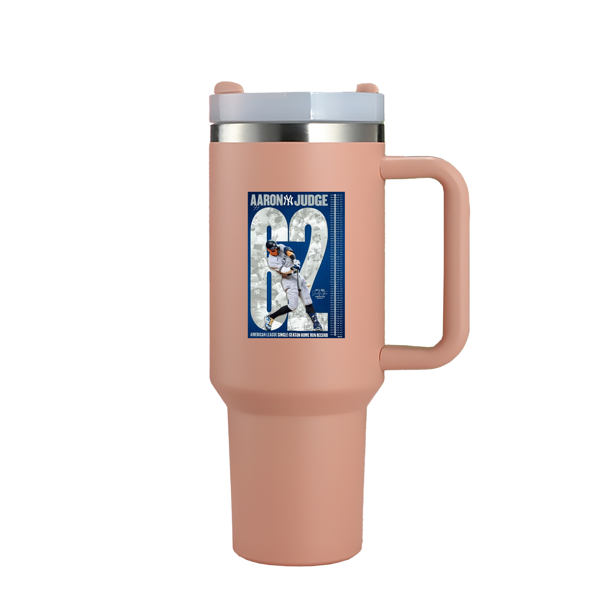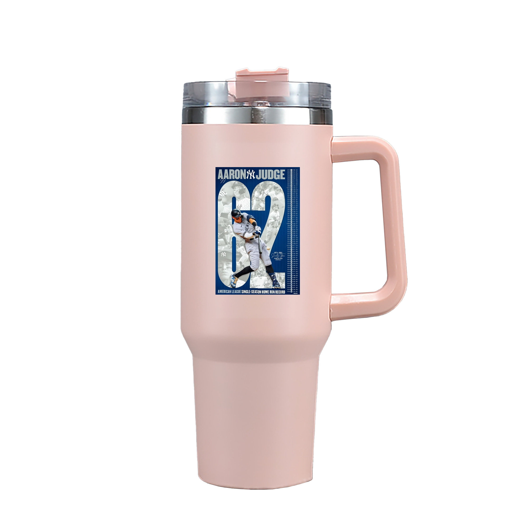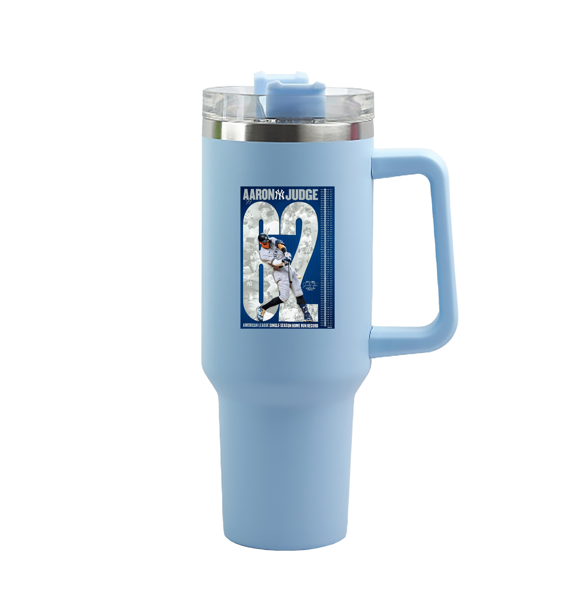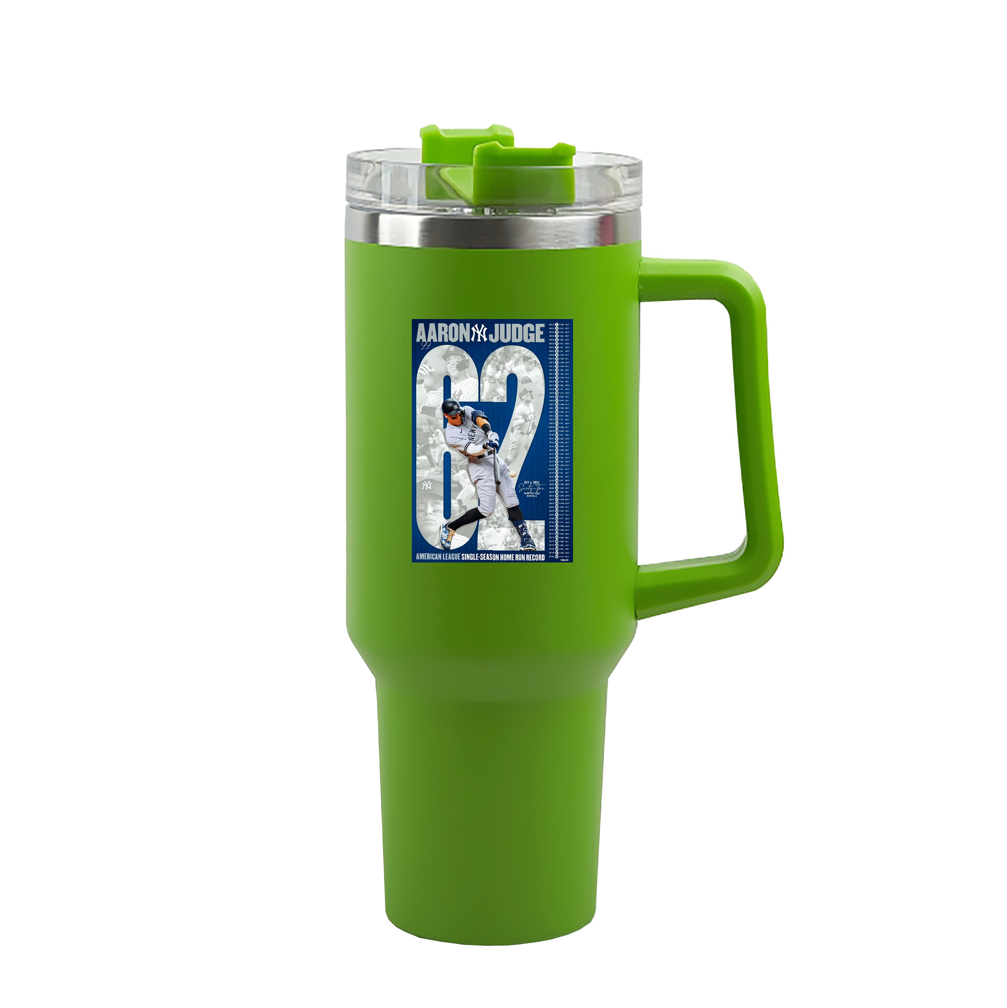 Aaron Judge AL Single Season 62 Home Run Record 40oz Handle Car Tumbler – Durable Stainless Steel Travel Mug With UV Print – Double Wall Insulated, Fits Most Car Cup Holders