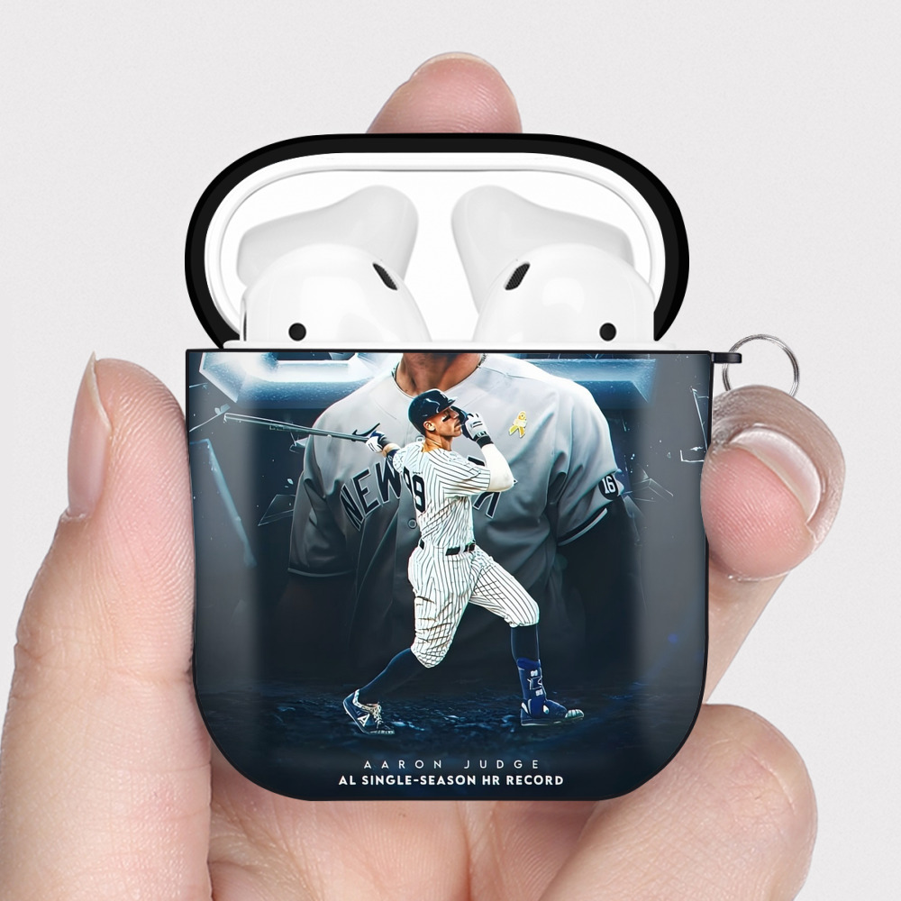 Aaron Judge AL Single Season 62 Home Run Record AirPods 2 Case Hard Shell Black, Flexible PC Material, Precise Cutouts, Full Protection, Anti-Fingerprint, Washable, Includes Keychain – Durable & Slim Design
