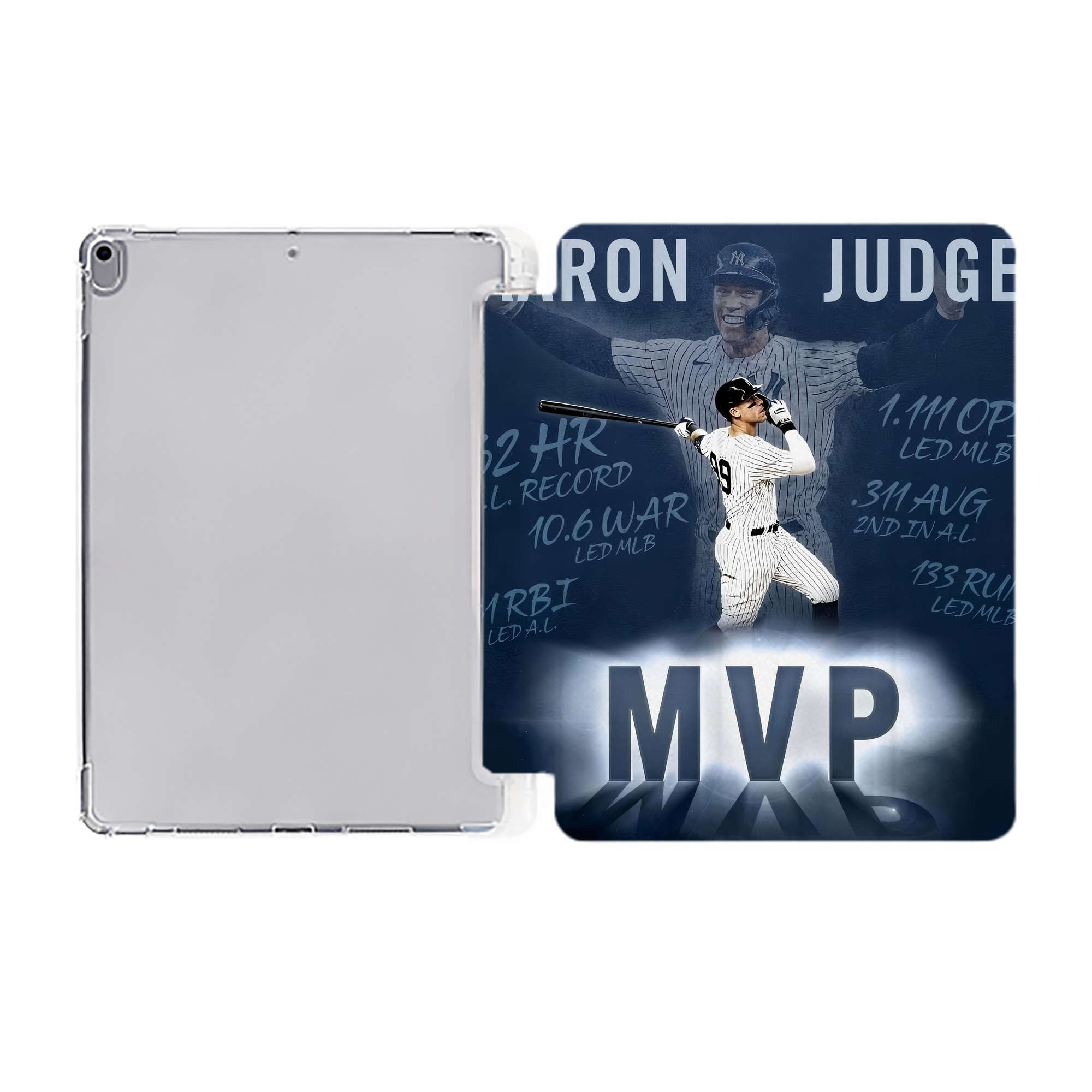 Aaron Judge MVP Premium Tri-Fold PU Leather & Silicone IPad Case With Pencil Slot – Fits 9.5,10.5,10.9 – Adjustable Stand, Slim, Protective