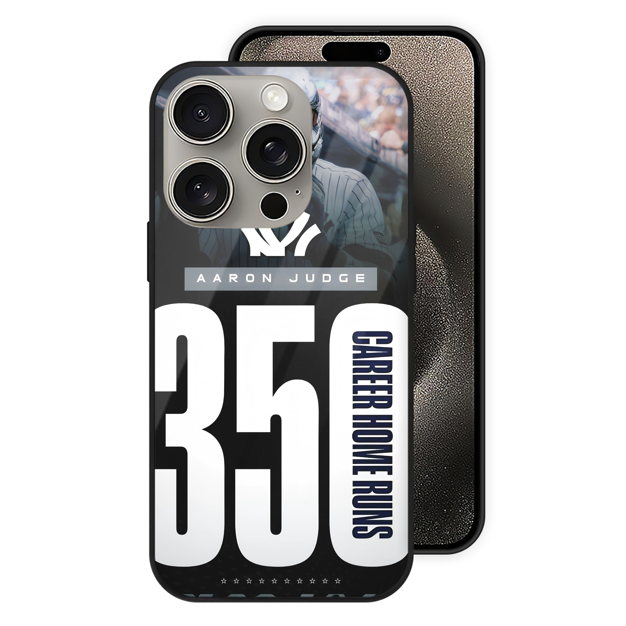 Aaron Judge's 350th Career Home Runs IPhone 15 Pro Mirror Phone Case – UV Printed Glass + TPU – Scratch-Resistant, Wireless Charging Compatible, Precise Fit & Stylish Design