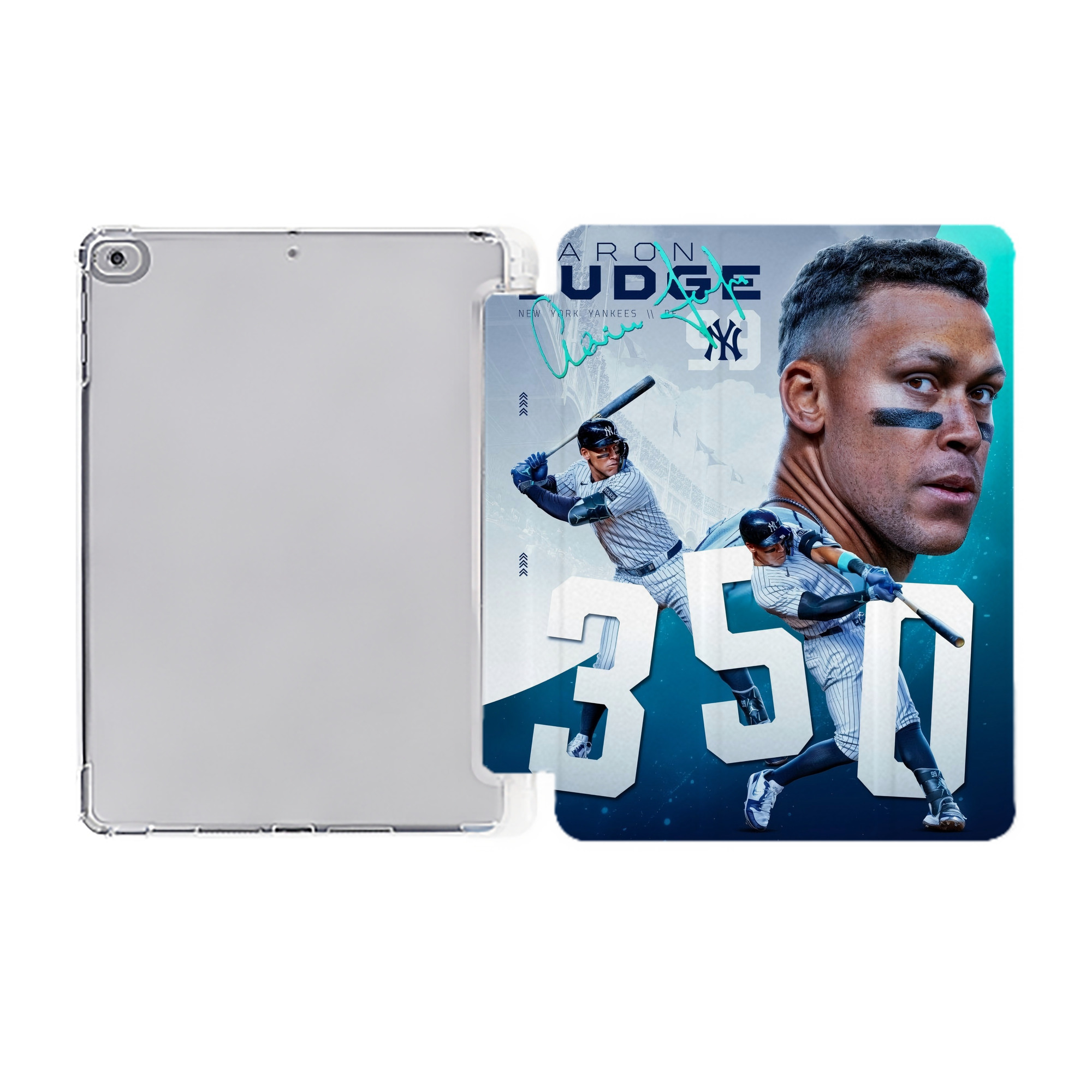 Aaron Judge's 350th Career Home Runs Premium Tri-Fold PU Leather & Silicone IPad Case With Pencil Slot – Fits 9.5,10.5,10.9 – Adjustable Stand, Slim, Protective