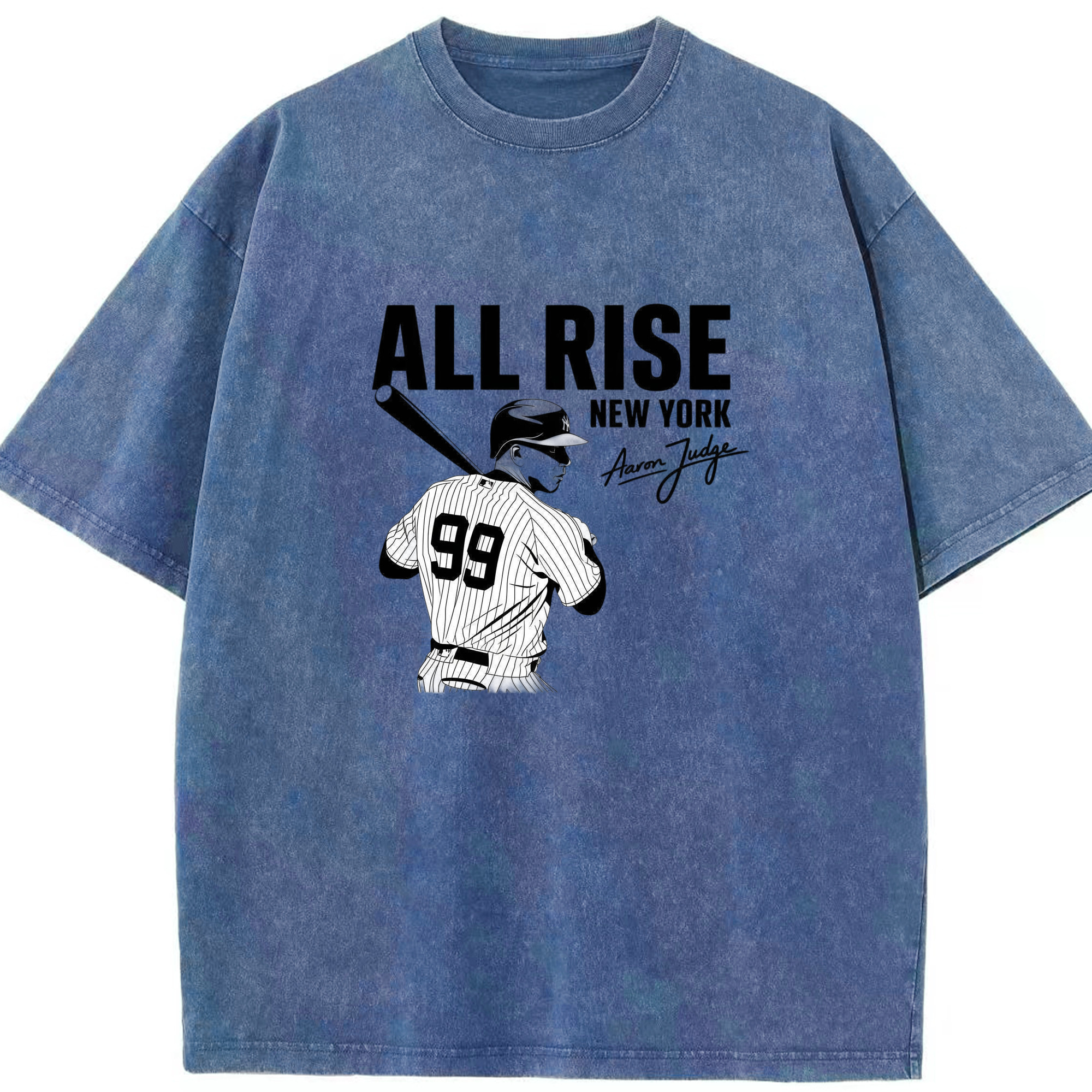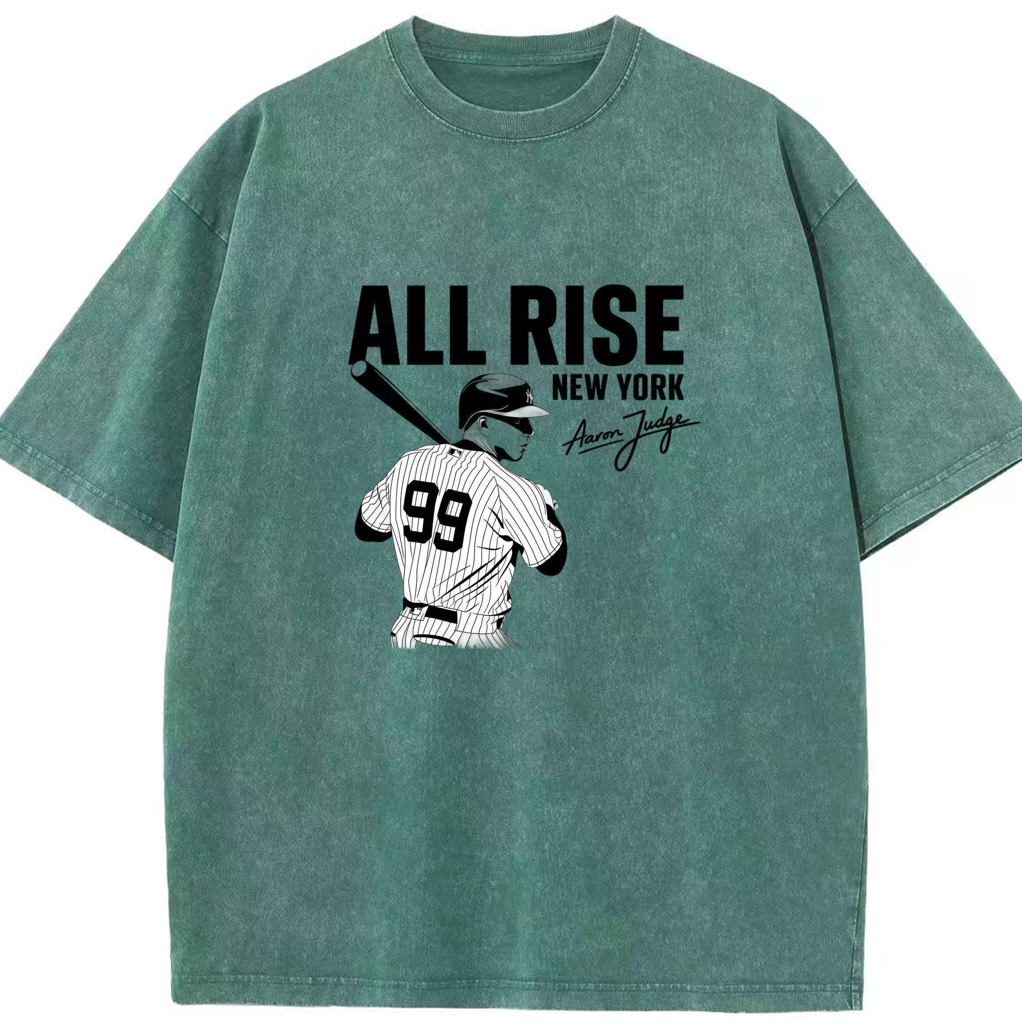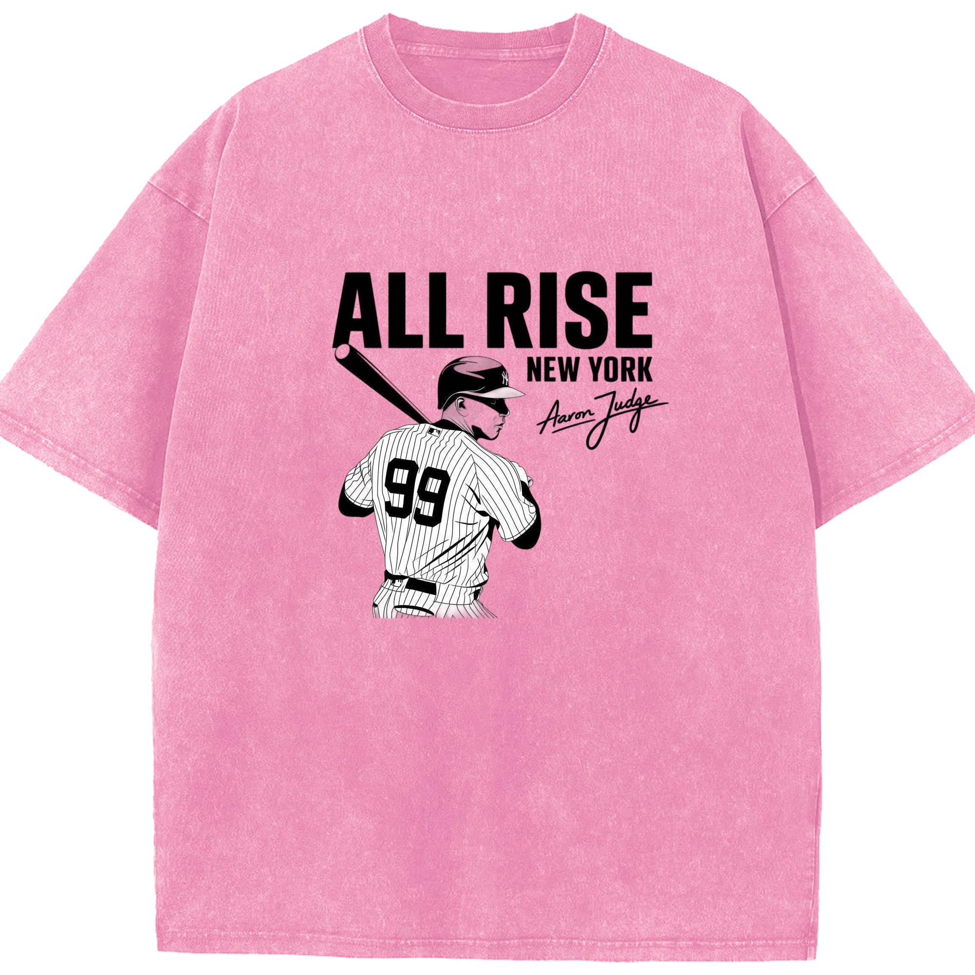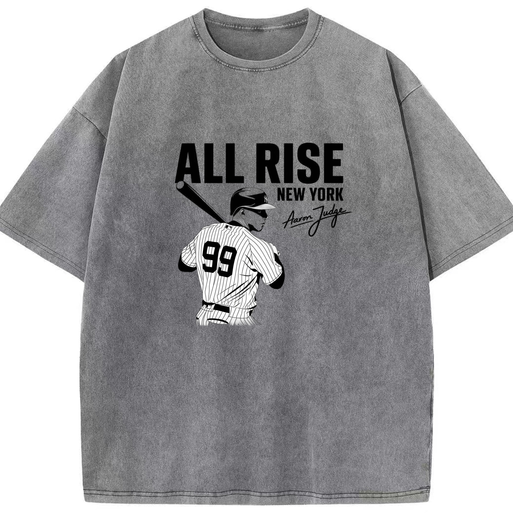 All Rise New York Aaron Judge 99 Washed Vintage Look 230g Cotton Oversized T-Shirt With Front Heat Transfer Print – Soft, Lightweight, Stylish Fit – Comfortable Casual Wear For Sports & Everyday Use