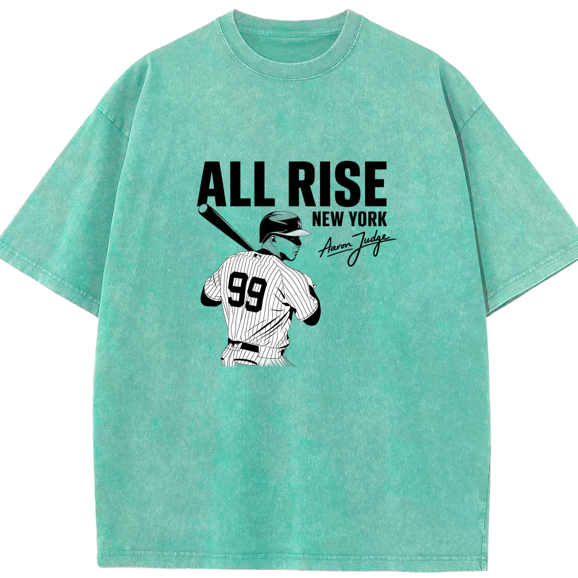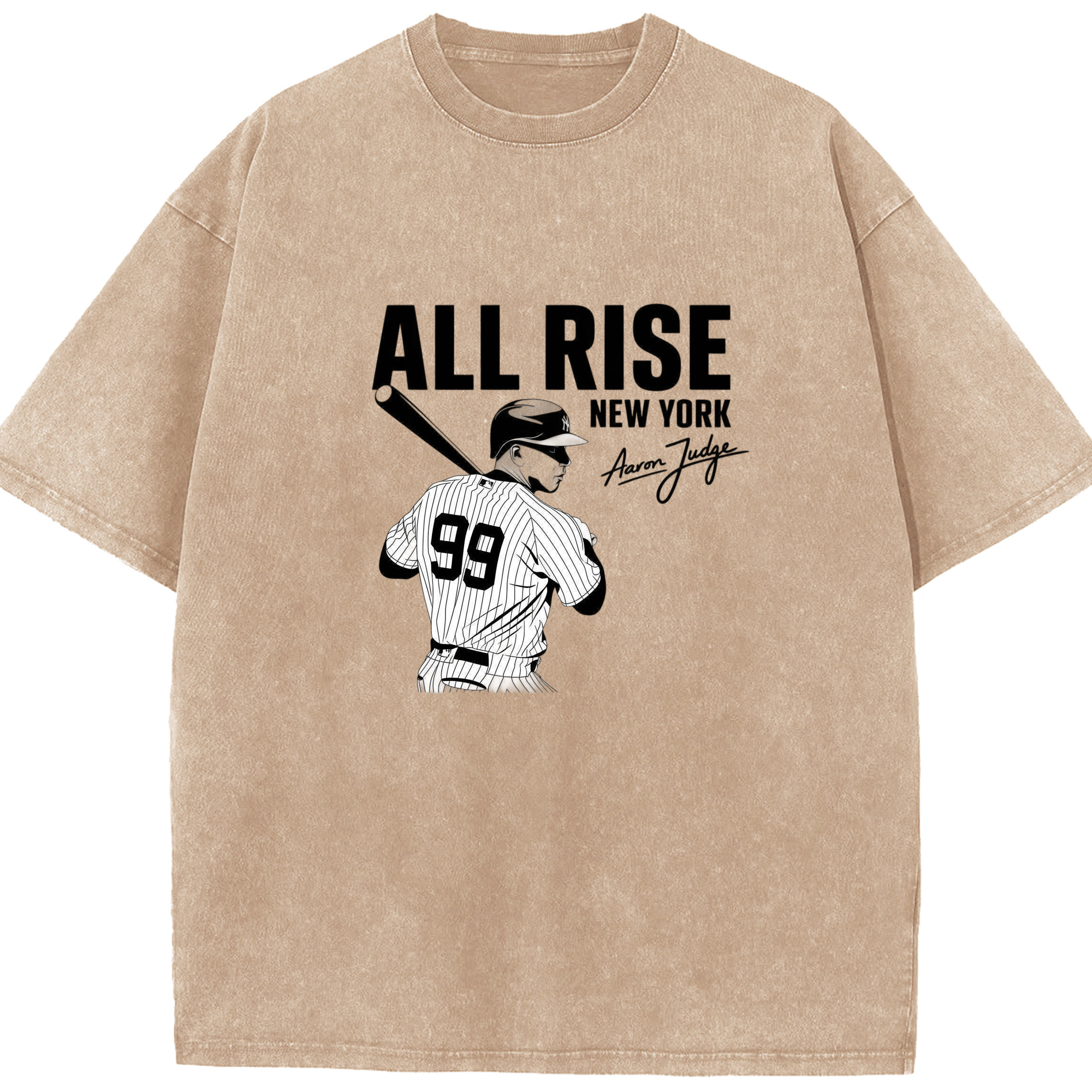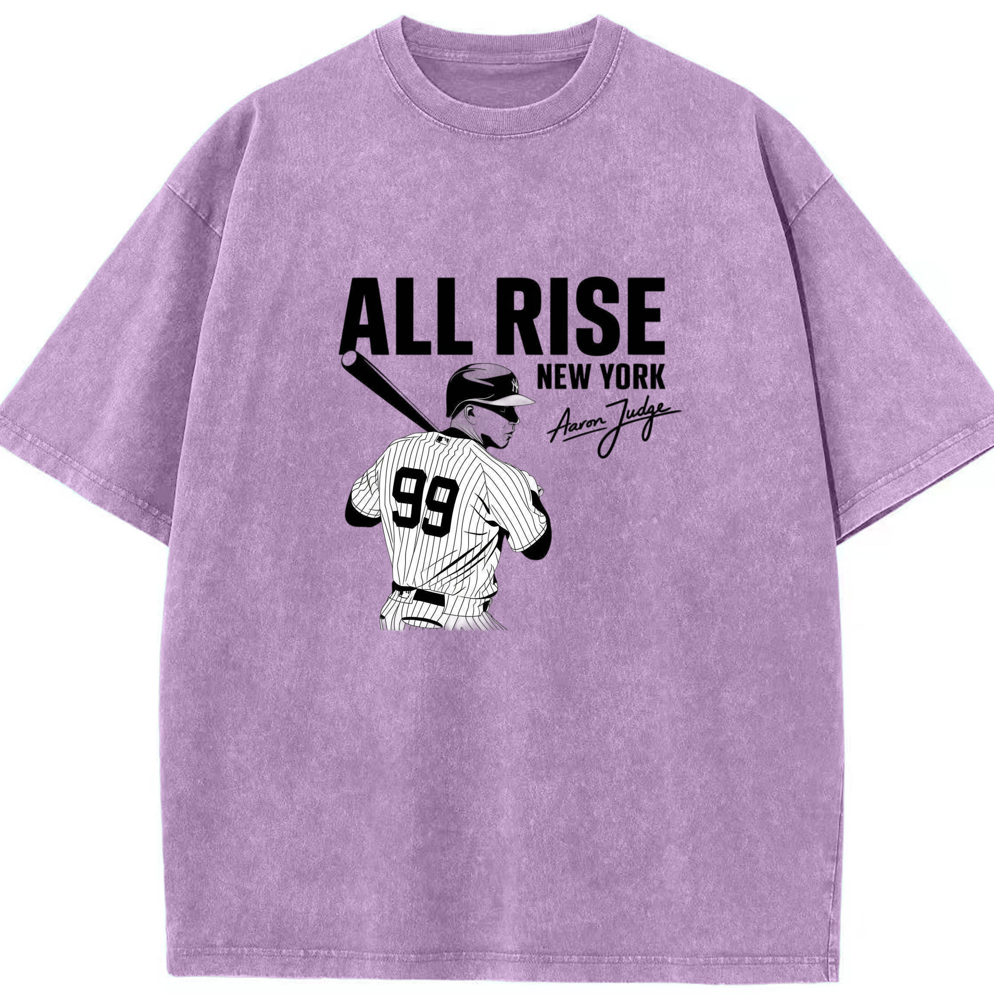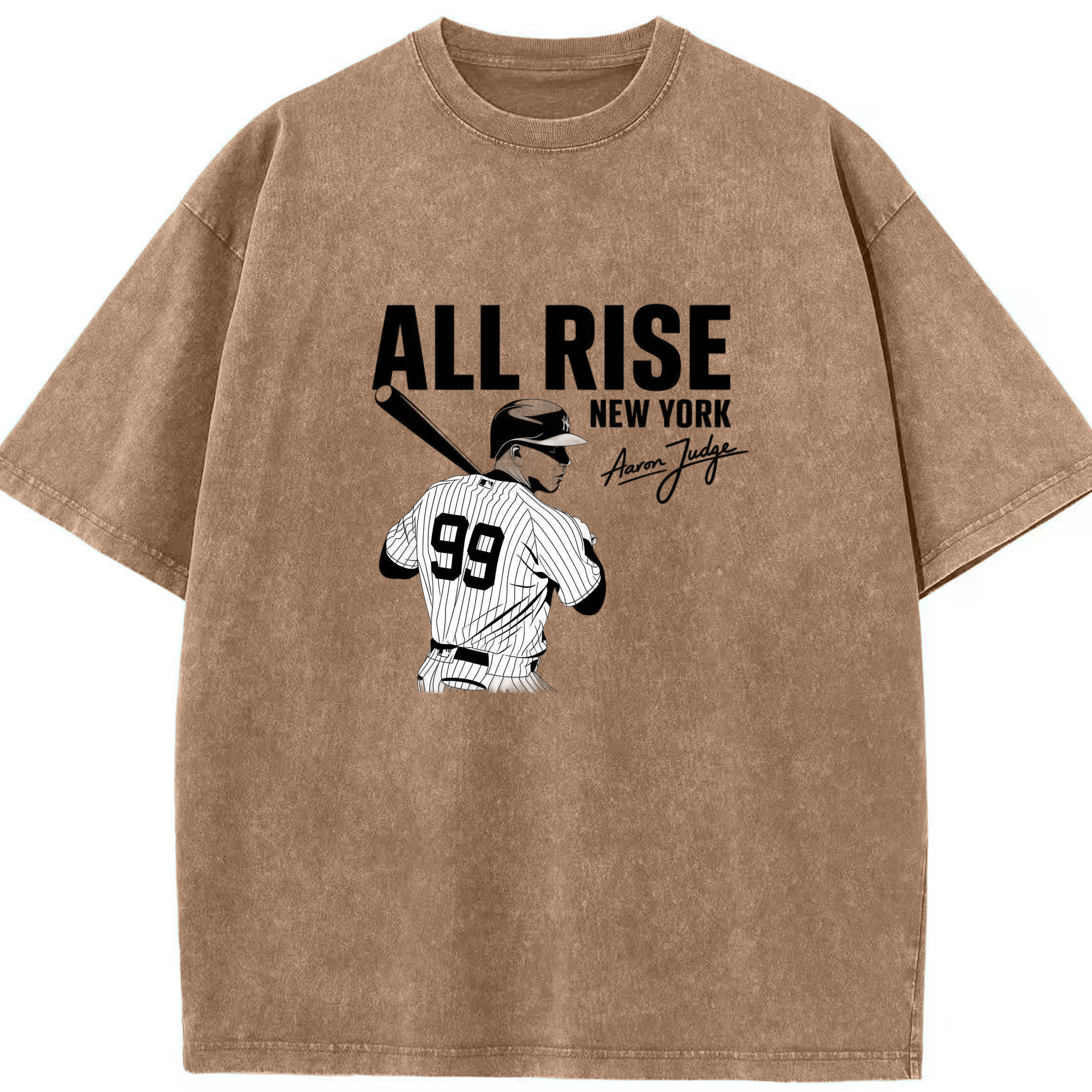 All Rise New York Aaron Judge 99 Washed Vintage Look 230g Cotton Oversized T-Shirt With Front Heat Transfer Print – Soft, Lightweight, Stylish Fit – Comfortable Casual Wear For Sports & Everyday Use