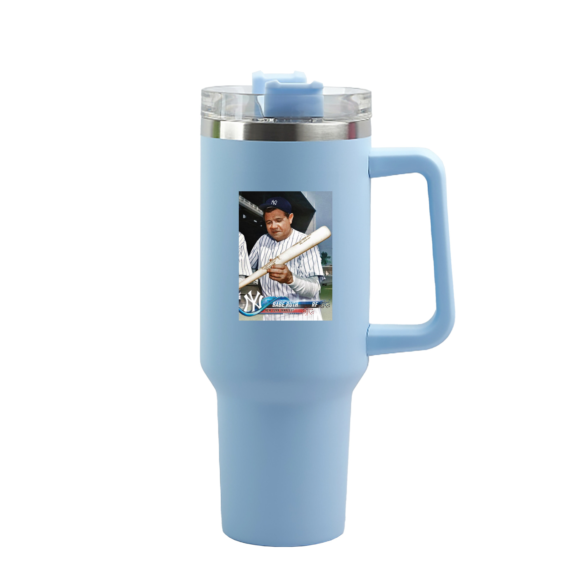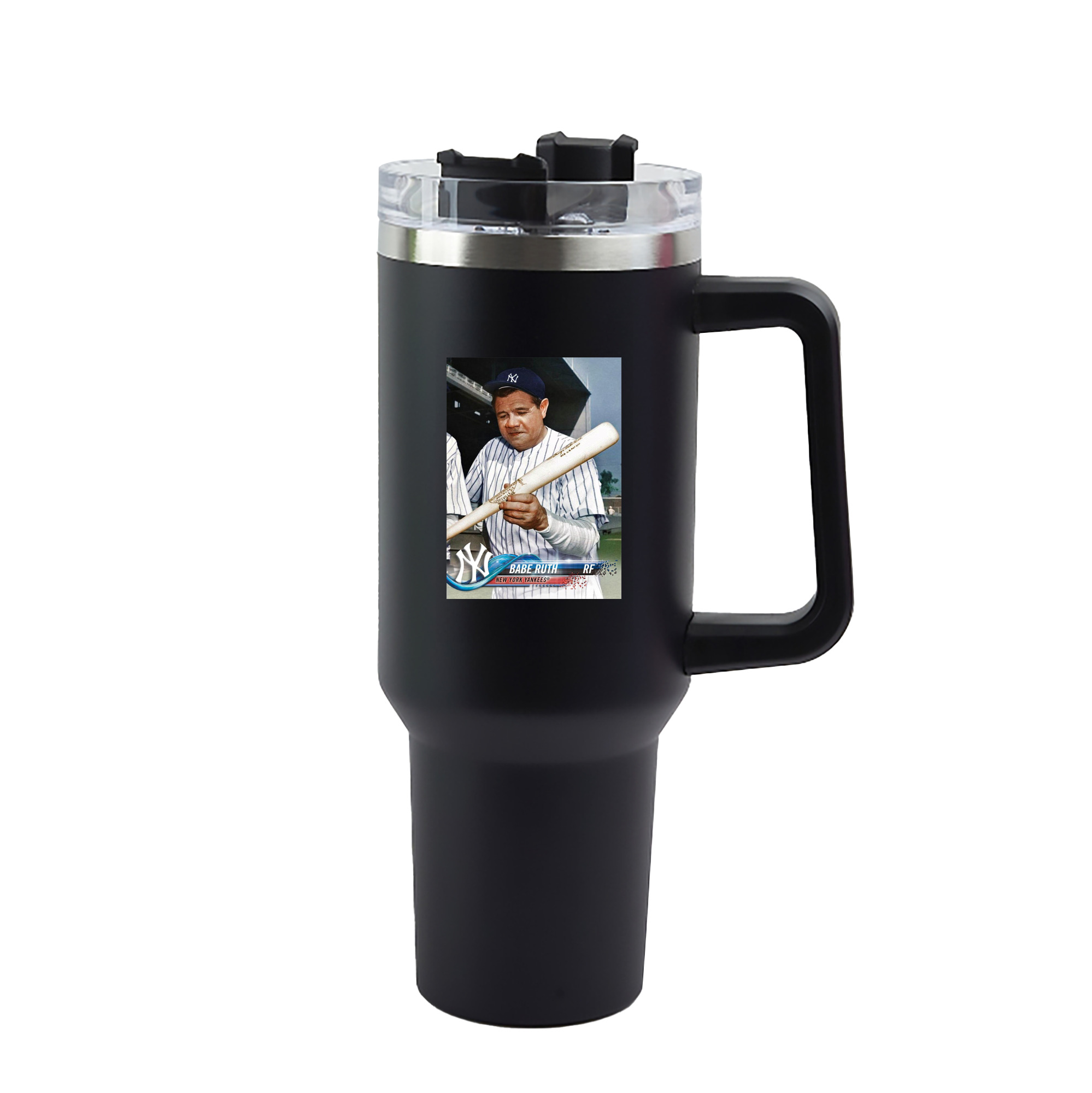 A generic imageBabe Ruth 20 40oz Handle Car Tumbler – Durable Stainless Steel Travel Mug With UV Print – Double Wall Insulated, Fits Most Car Cup HoldersBabe Ruth 20 40oz Handle Car Tumbler – Durable Stainless Steel Travel Mug With UV Print – Double Wall Insulated, Fits Most Car Cup Holders
