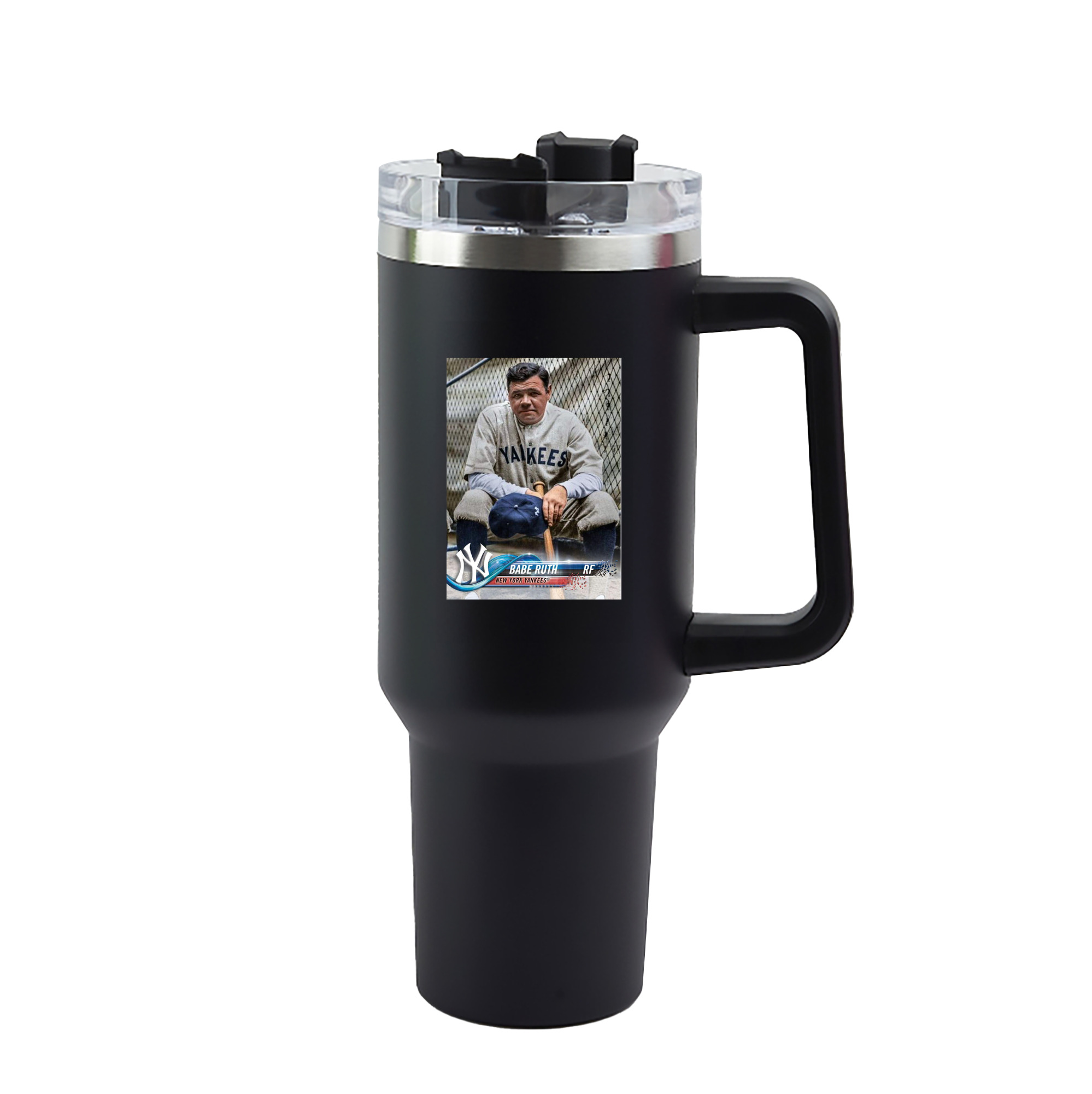 A generic imageBabe Ruth 24 40oz Handle Car Tumbler – Durable Stainless Steel Travel Mug With UV Print – Double Wall Insulated, Fits Most Car Cup HoldersBabe Ruth 24 40oz Handle Car Tumbler – Durable Stainless Steel Travel Mug With UV Print – Double Wall Insulated, Fits Most Car Cup Holders