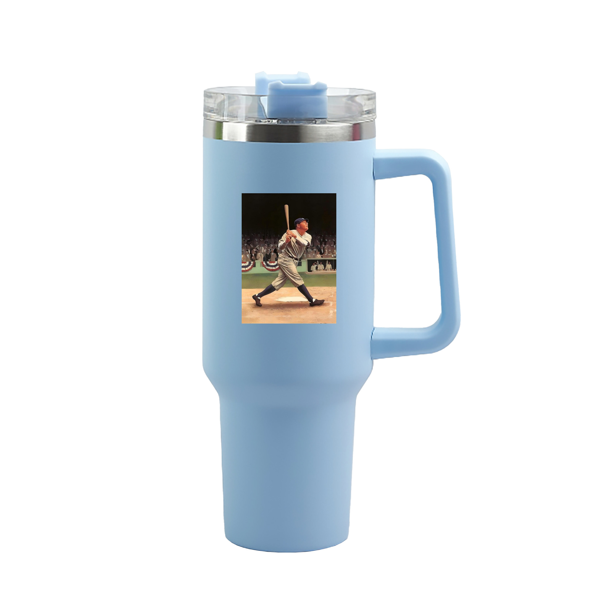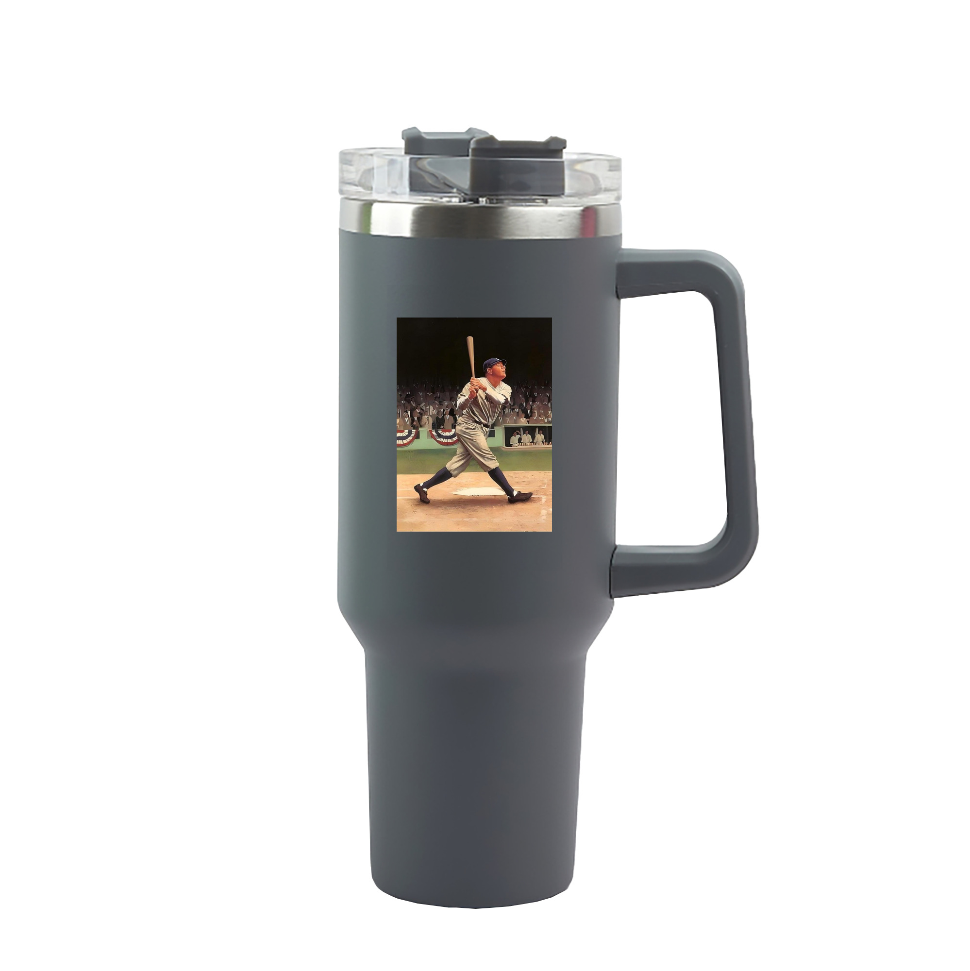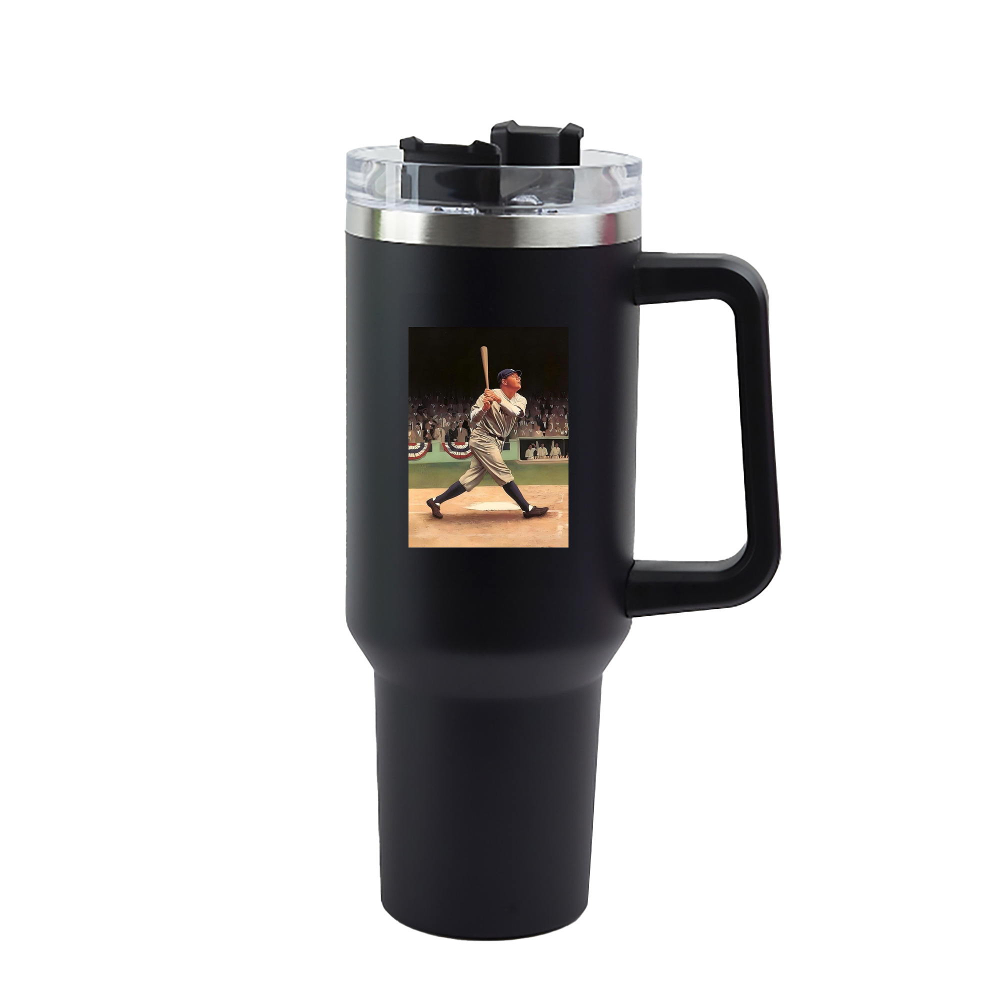 A generic imageBabe Ruth 35 40oz Handle Car Tumbler – Durable Stainless Steel Travel Mug With UV Print – Double Wall Insulated, Fits Most Car Cup HoldersBabe Ruth 35 40oz Handle Car Tumbler – Durable Stainless Steel Travel Mug With UV Print – Double Wall Insulated, Fits Most Car Cup Holders