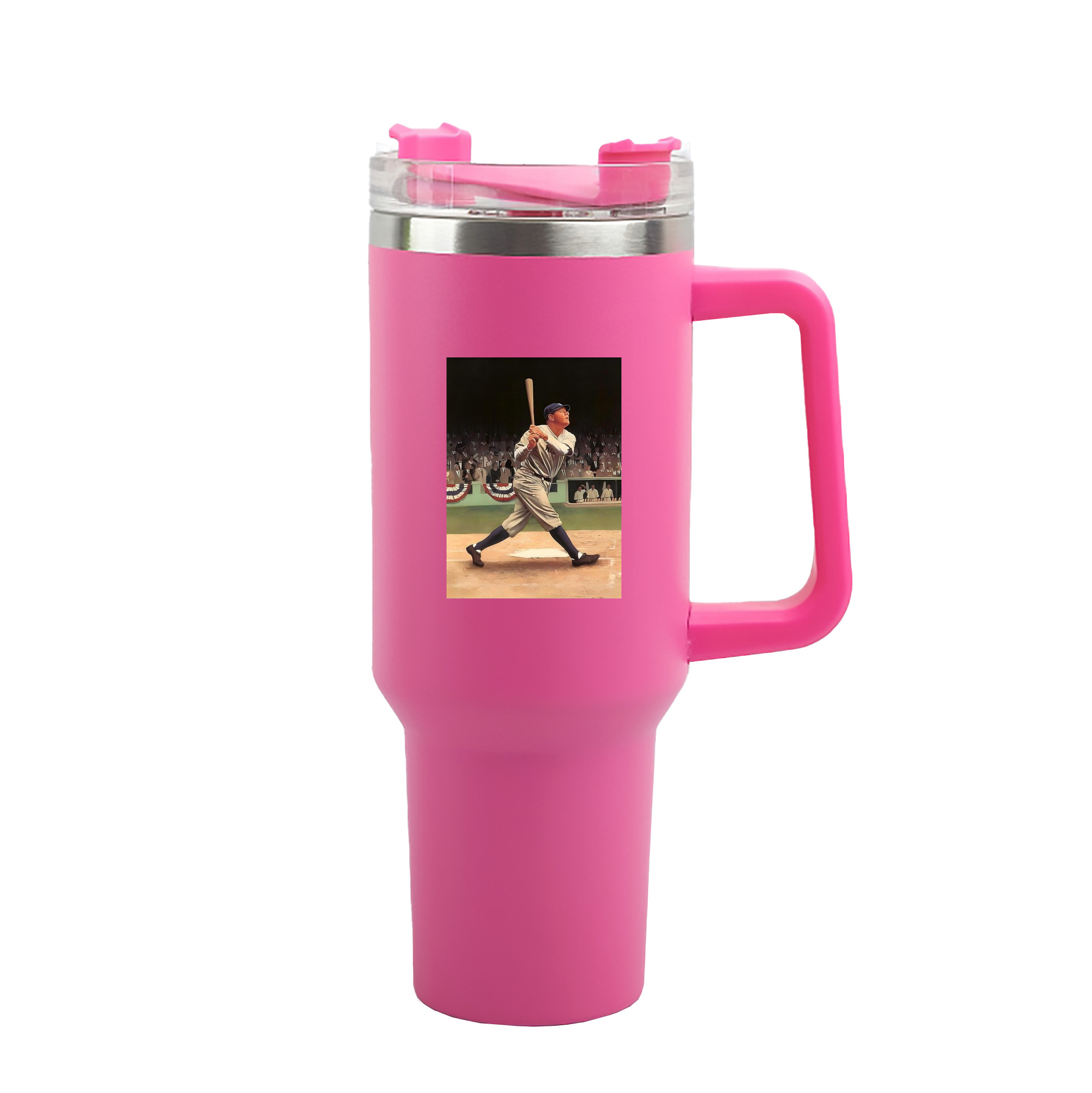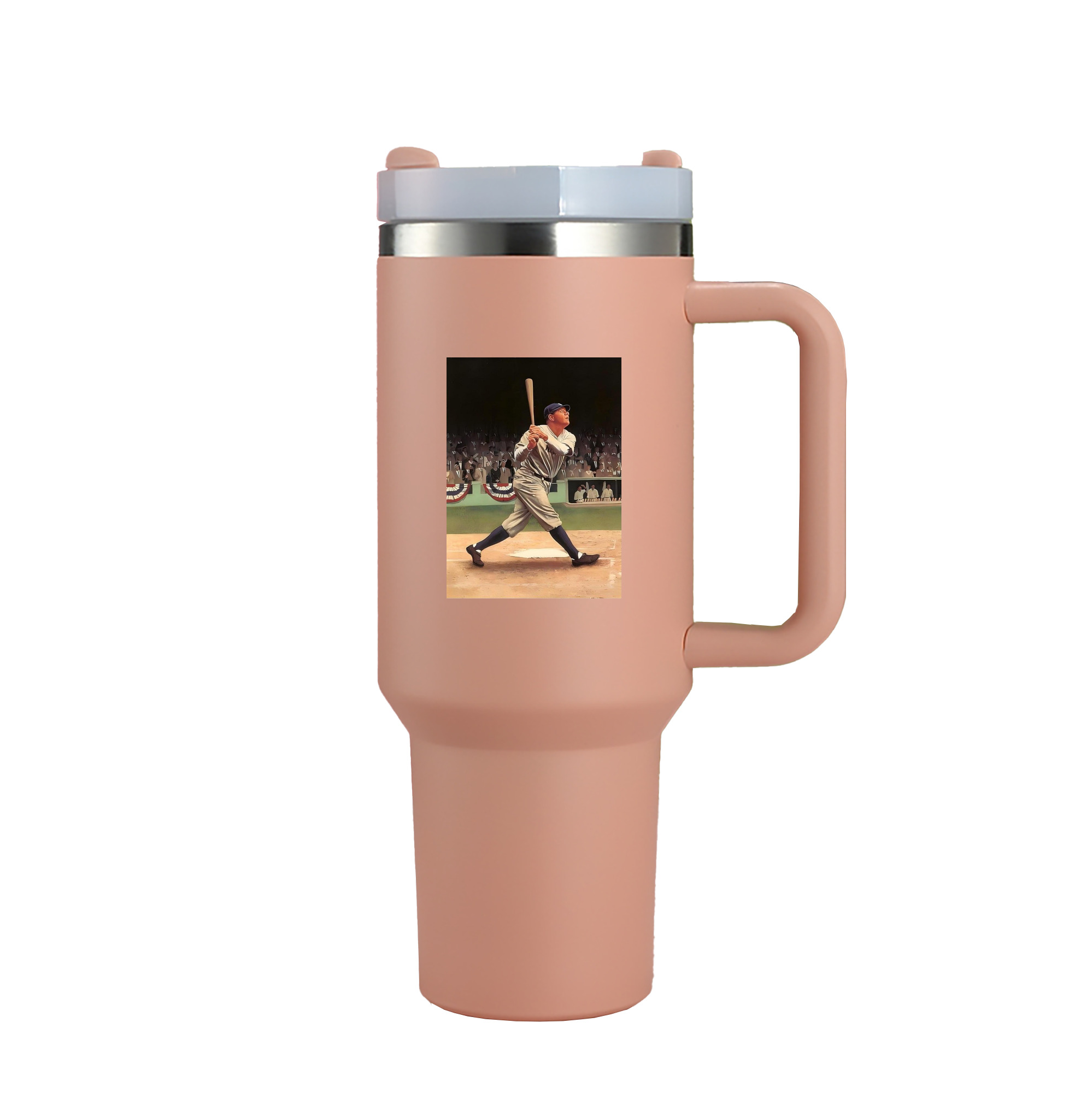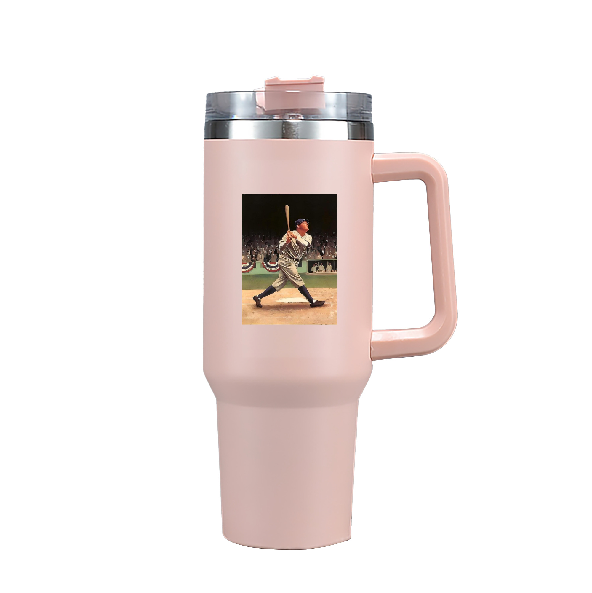 A generic imageBabe Ruth 35 40oz Handle Car Tumbler – Durable Stainless Steel Travel Mug With UV Print – Double Wall Insulated, Fits Most Car Cup HoldersBabe Ruth 35 40oz Handle Car Tumbler – Durable Stainless Steel Travel Mug With UV Print – Double Wall Insulated, Fits Most Car Cup Holders