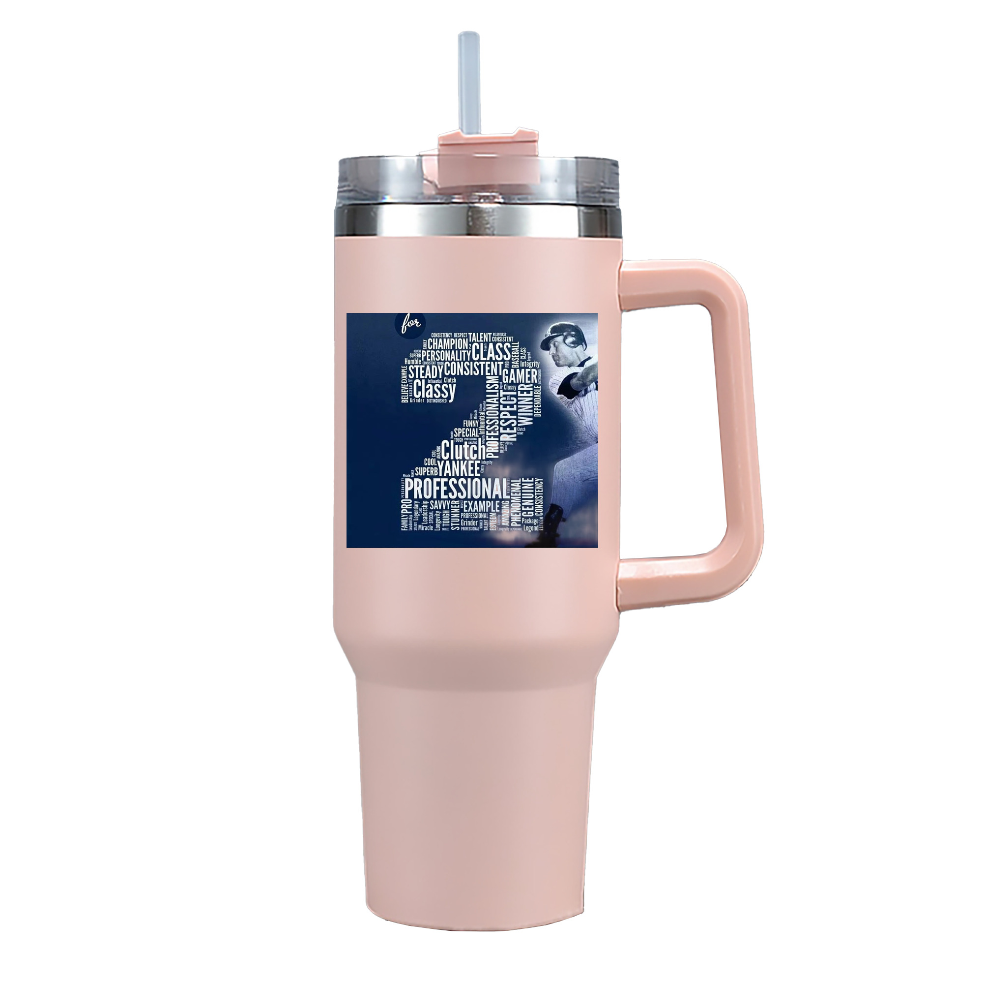 Derek Jeter 10 40oz Handle Car Cup With Crystal Sticker Design – Durable Stainless Steel Travel Mug With Reusable Straw – Double Wall Insulated