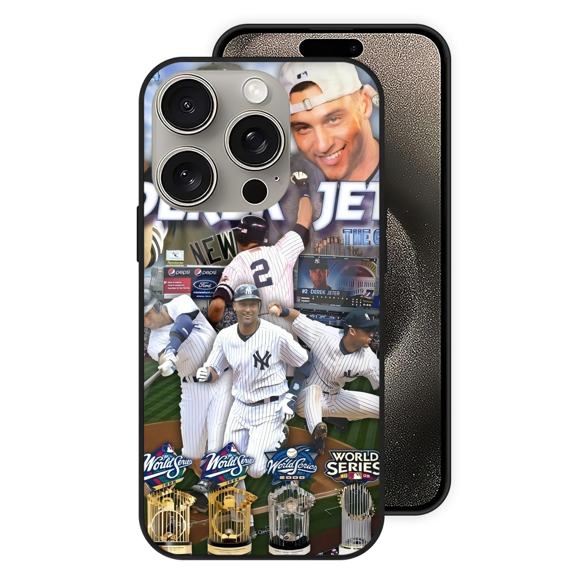 Derek Jeter 100 IPhone 15 Pro Mirror Phone Case – UV Printed Glass + TPU – Scratch-Resistant, Wireless Charging Compatible, Precise Fit & Stylish Design
