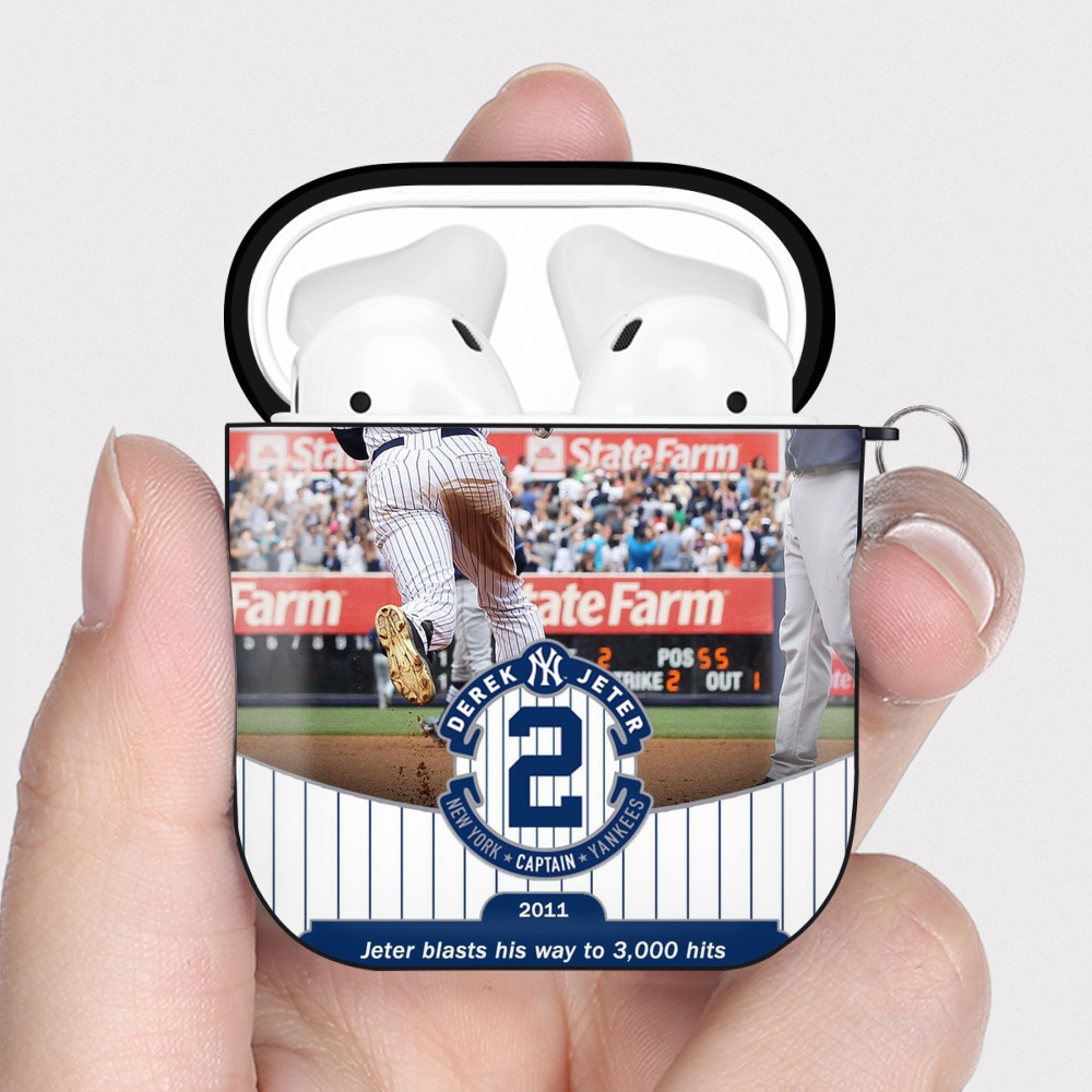 Derek Jeter 102 AirPods 2 Case Hard Shell Black, Flexible PC Material, Precise Cutouts, Full Protection, Anti-Fingerprint, Washable, Includes Keychain – Durable & Slim Design
