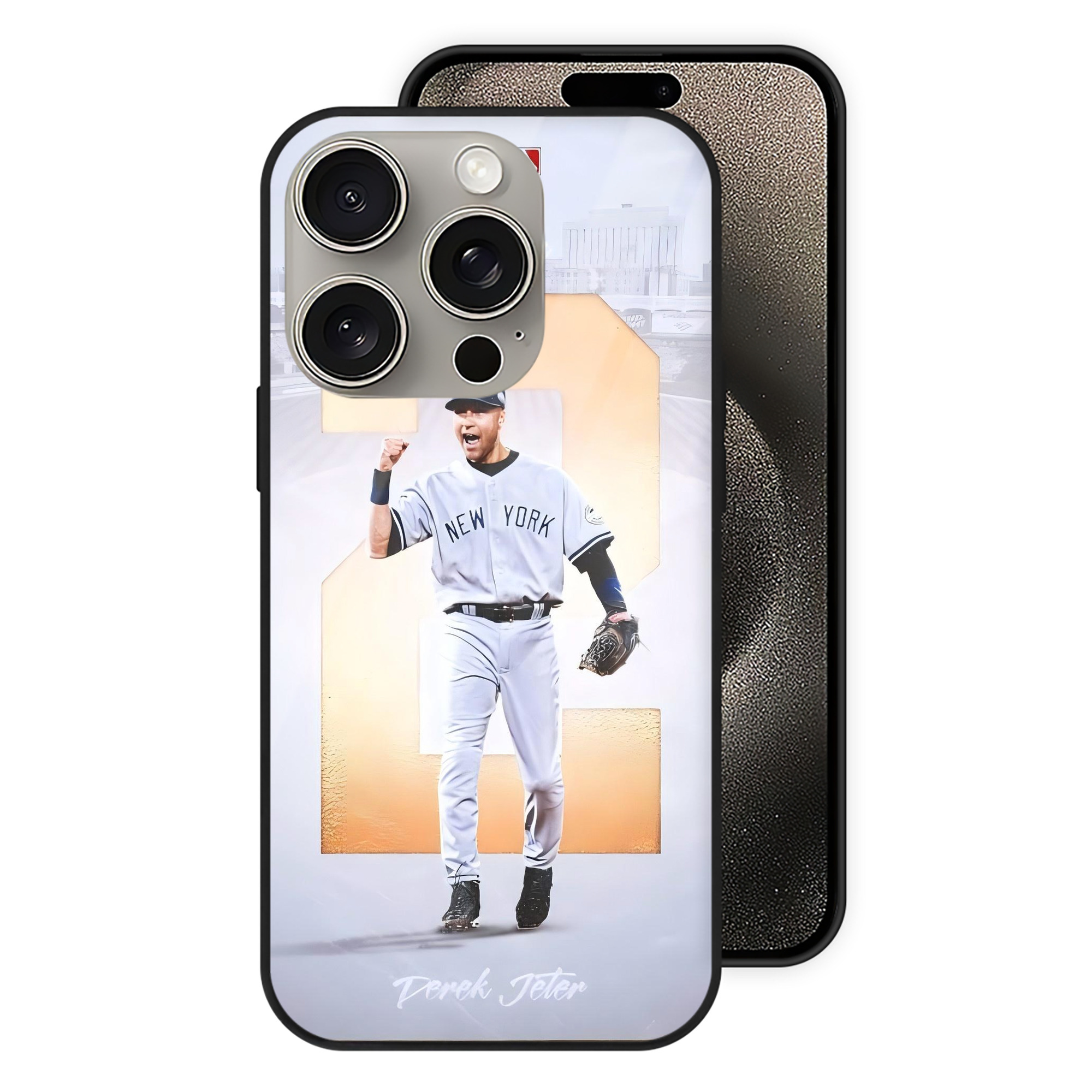 Derek Jeter 112 IPhone 15 Pro Mirror Phone Case – UV Printed Glass + TPU – Scratch-Resistant, Wireless Charging Compatible, Precise Fit & Stylish Design