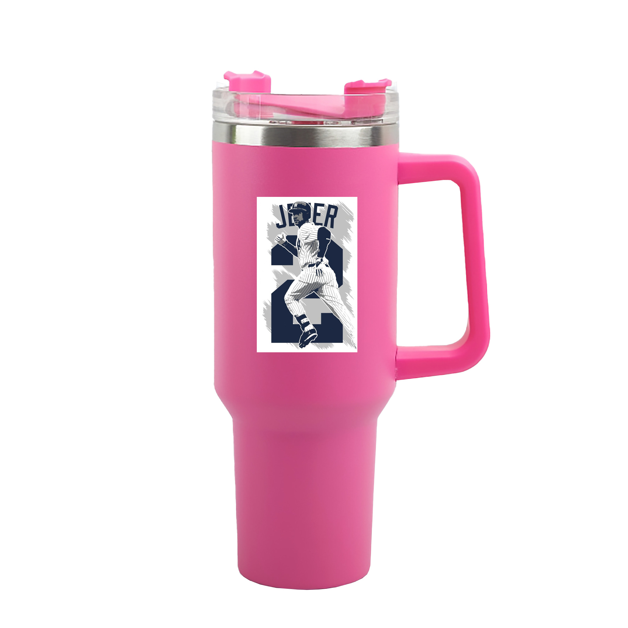 Derek Jeter 113 40oz Handle Car Tumbler – Durable Stainless Steel Travel Mug With UV Print – Double Wall Insulated, Fits Most Car Cup Holders