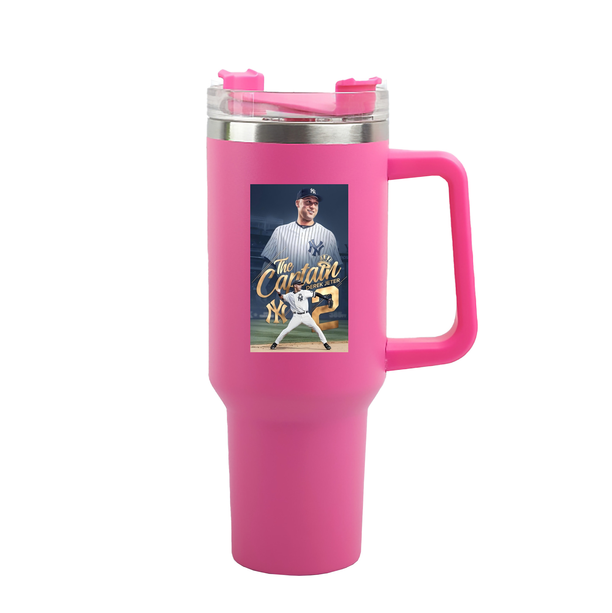 Derek Jeter 29 40oz Handle Car Tumbler – Durable Stainless Steel Travel Mug With UV Print – Double Wall Insulated, Fits Most Car Cup Holders