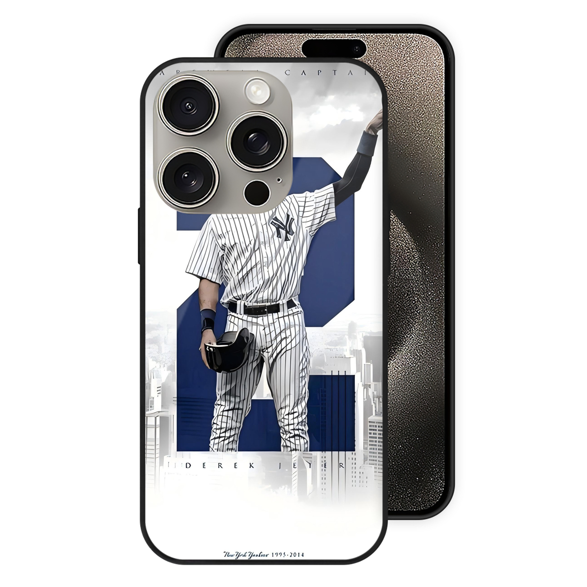 Derek Jeter 68 IPhone 15 Pro Mirror Phone Case – UV Printed Glass + TPU – Scratch-Resistant, Wireless Charging Compatible, Precise Fit & Stylish Design