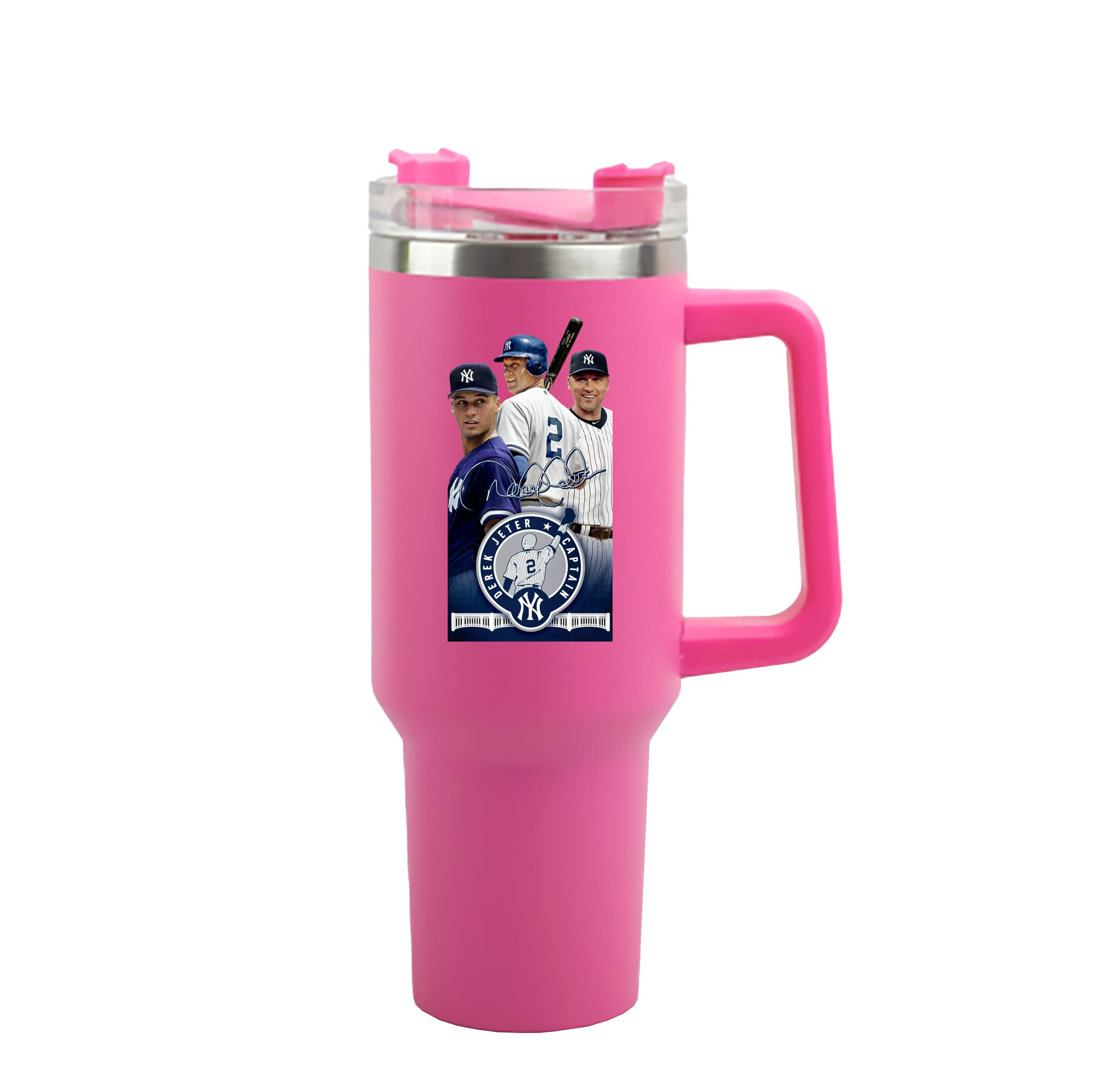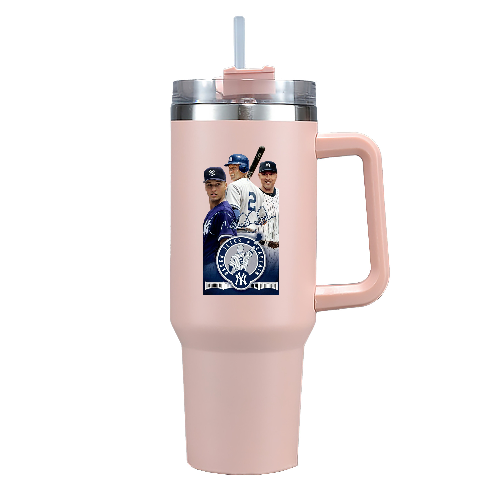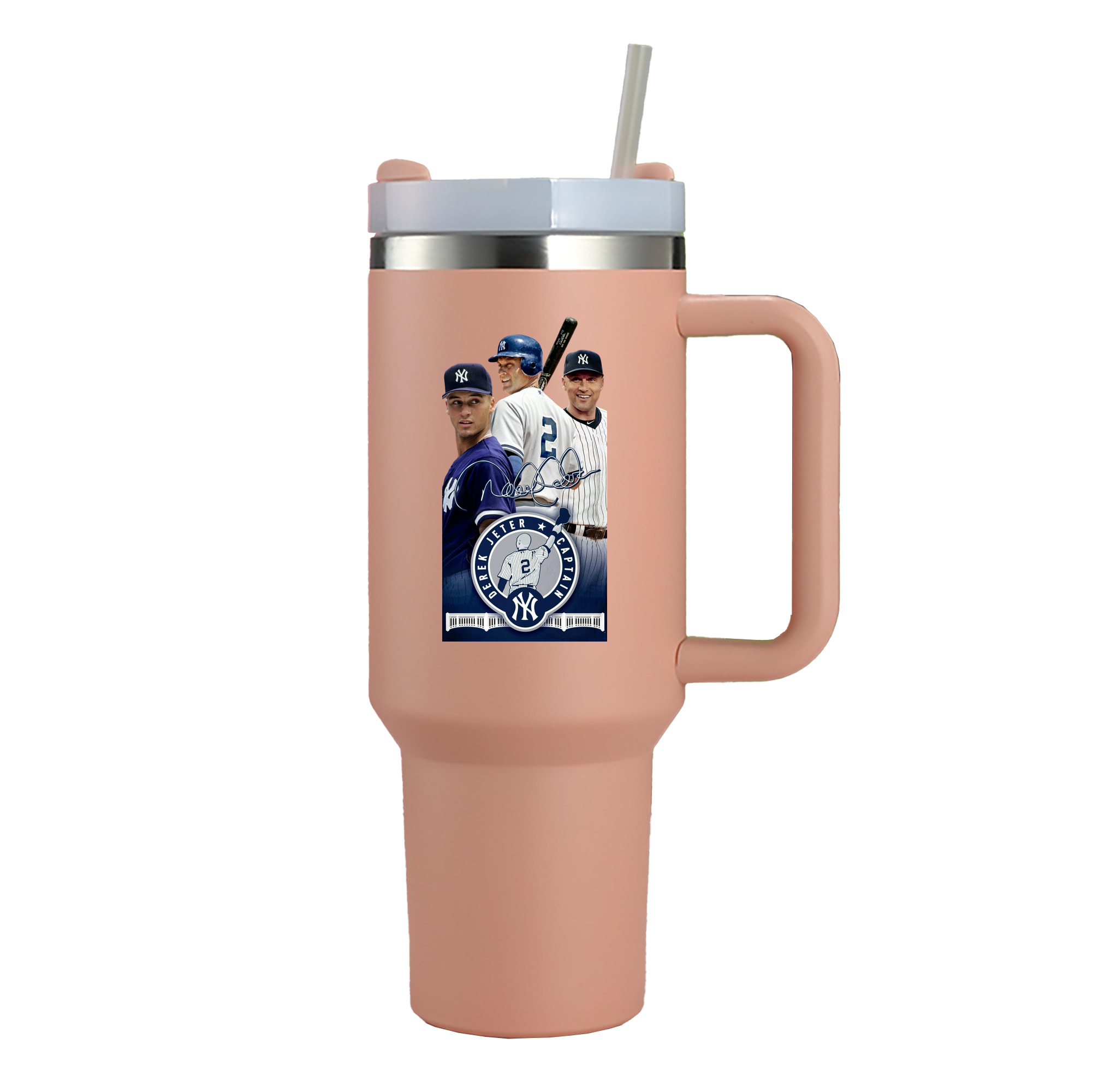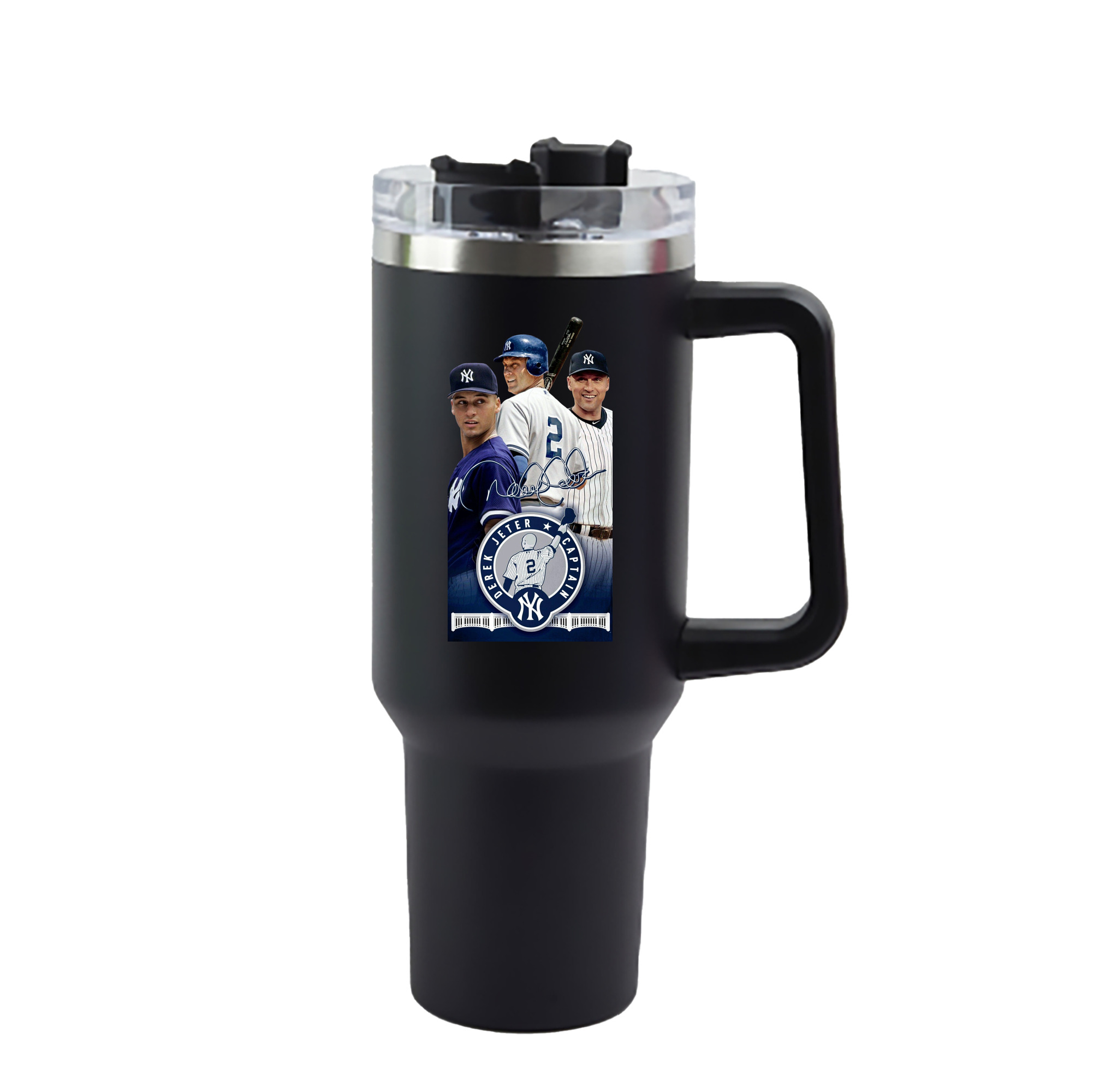 Derek Jeter 79 40oz Handle Car Cup With Crystal Sticker Design – Durable Stainless Steel Travel Mug With Reusable Straw – Double Wall Insulated