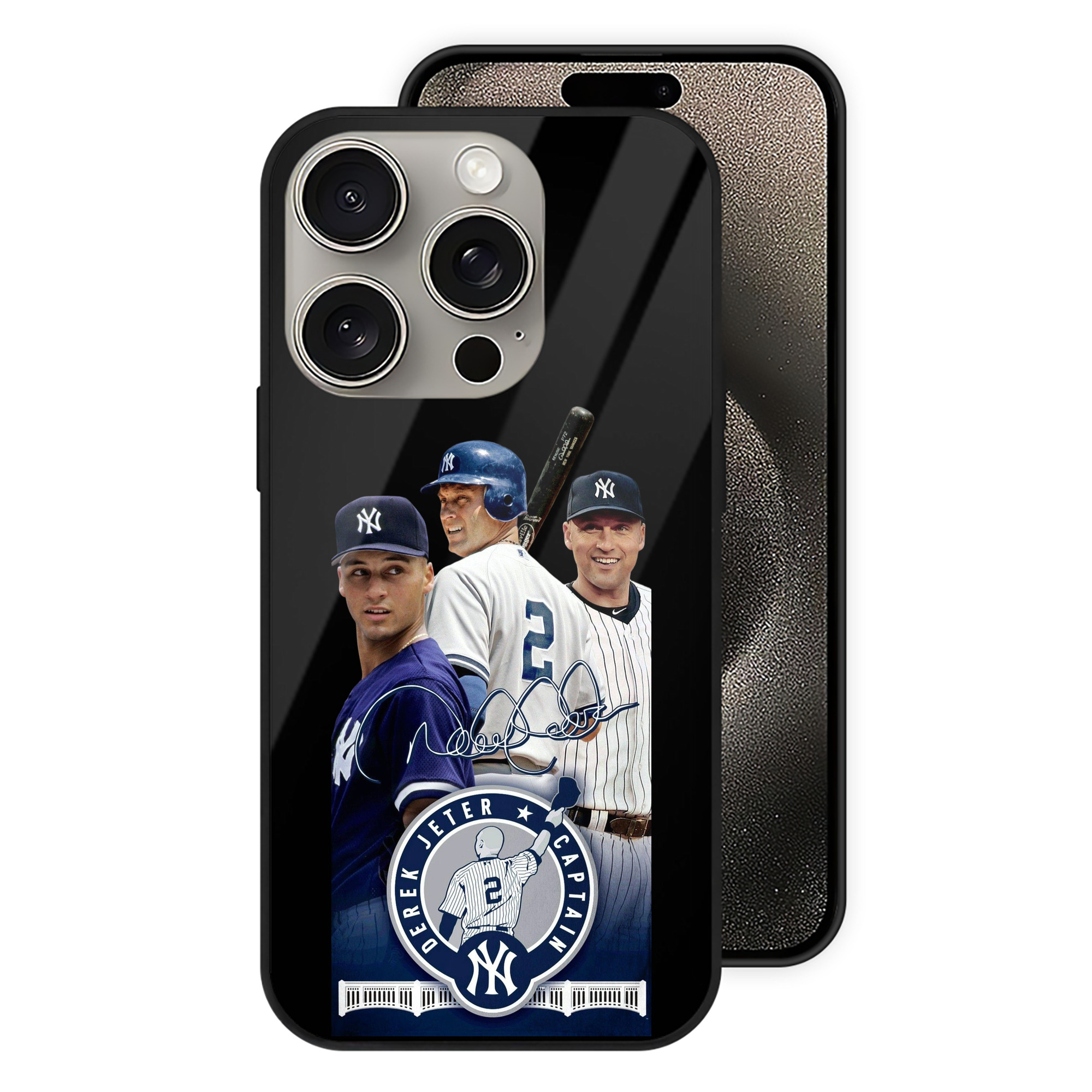 Derek Jeter 79 IPhone 15 Pro Mirror Phone Case – UV Printed Glass + TPU – Scratch-Resistant, Wireless Charging Compatible, Precise Fit & Stylish Design