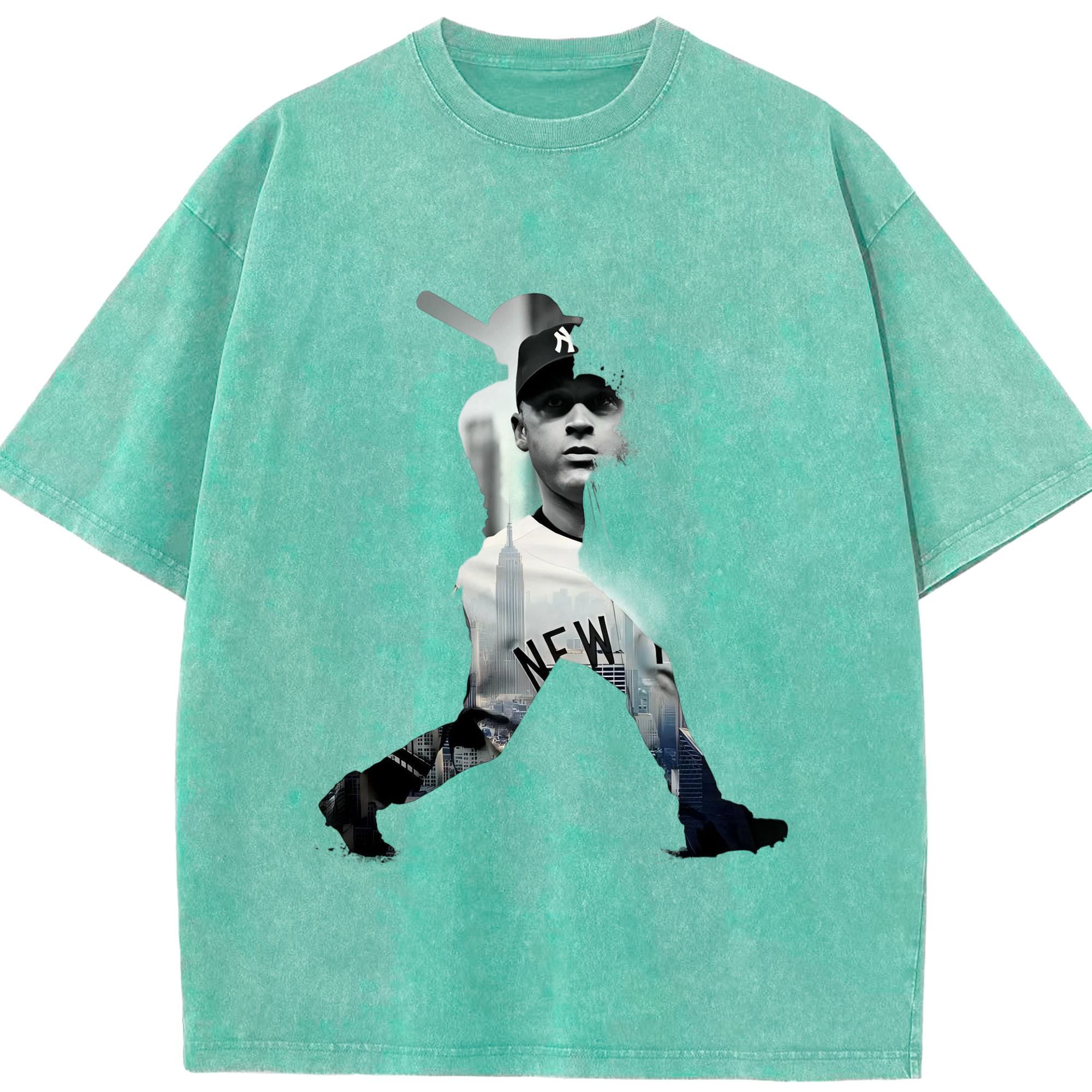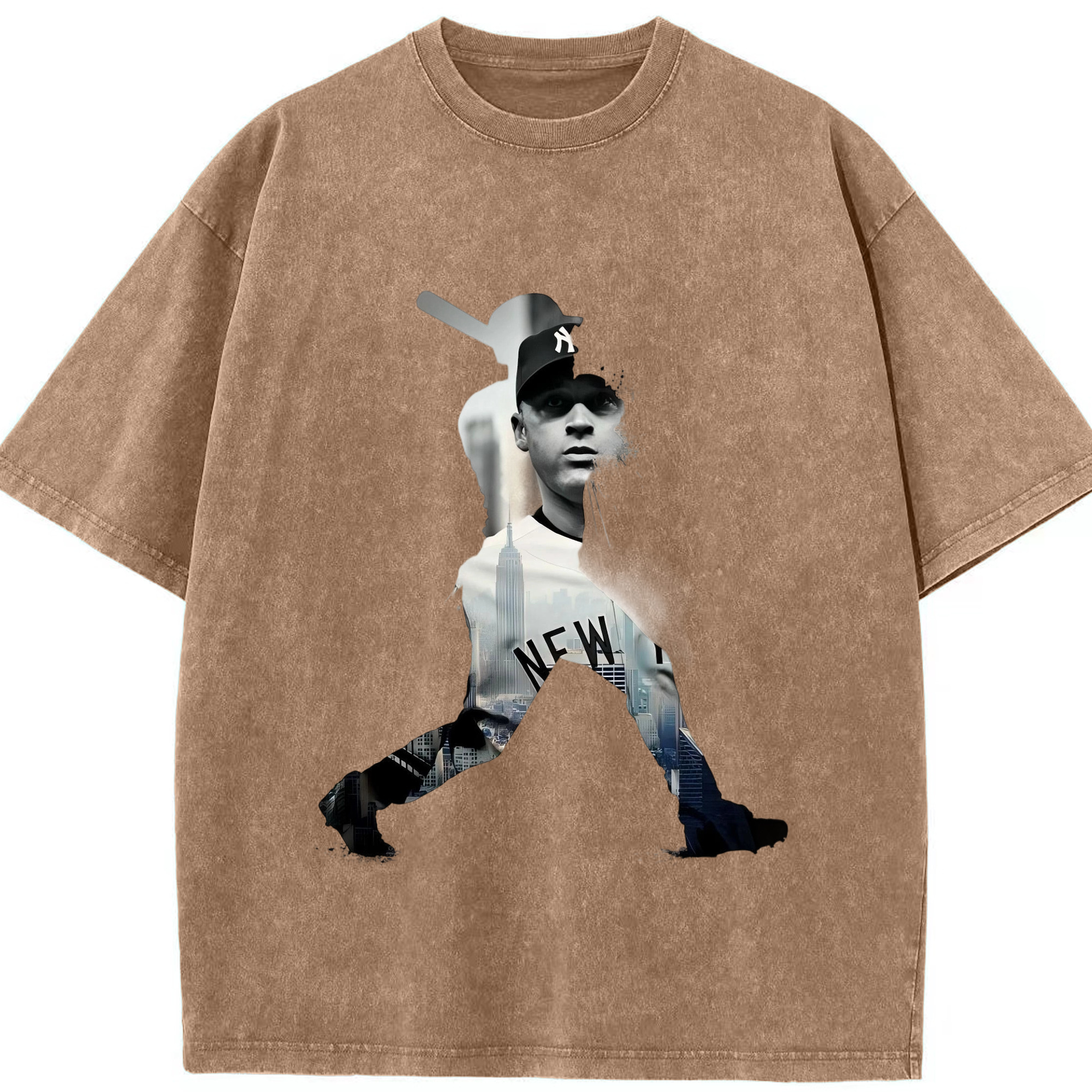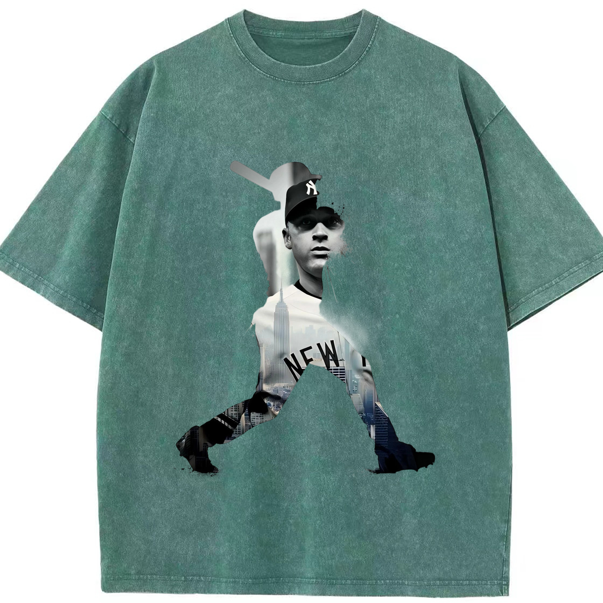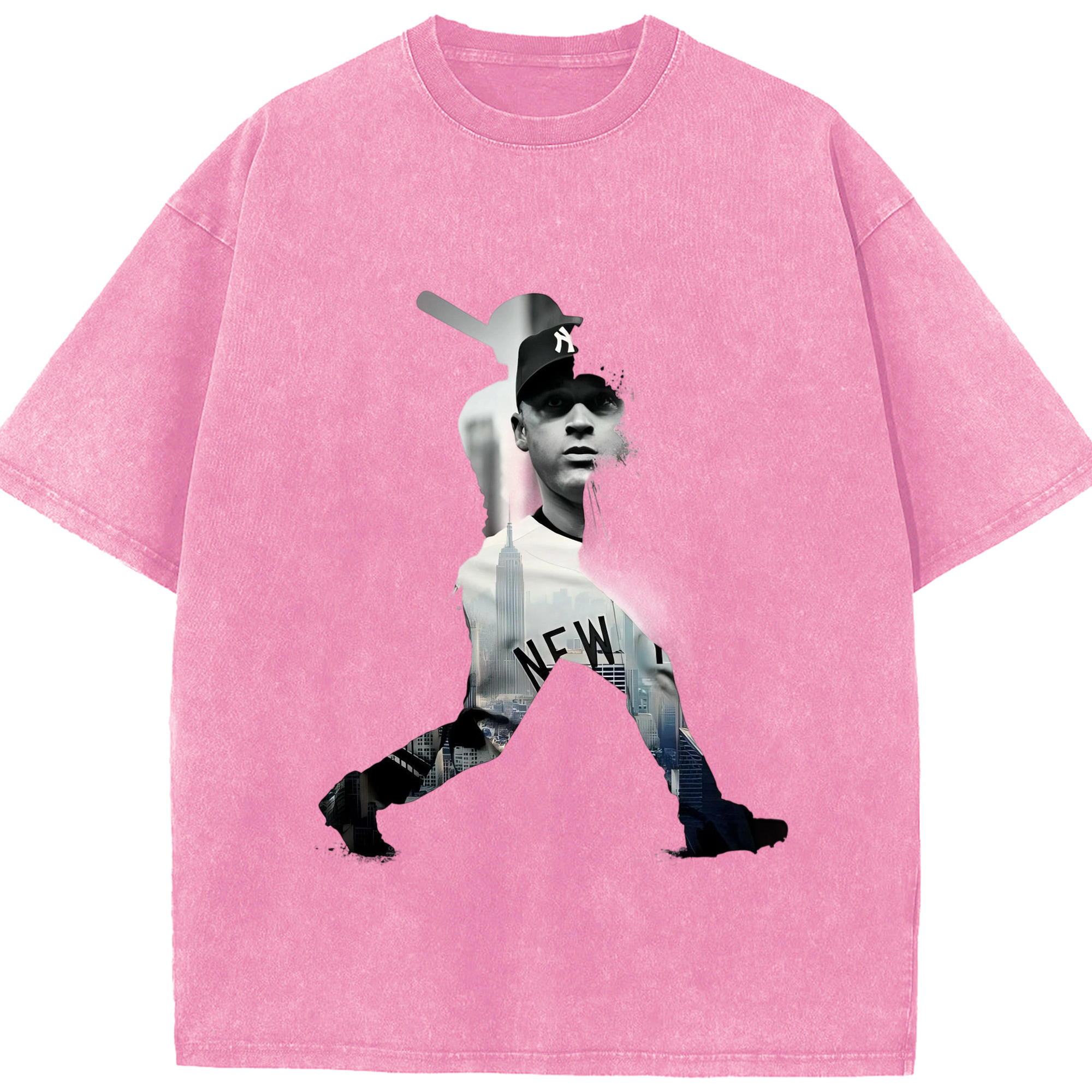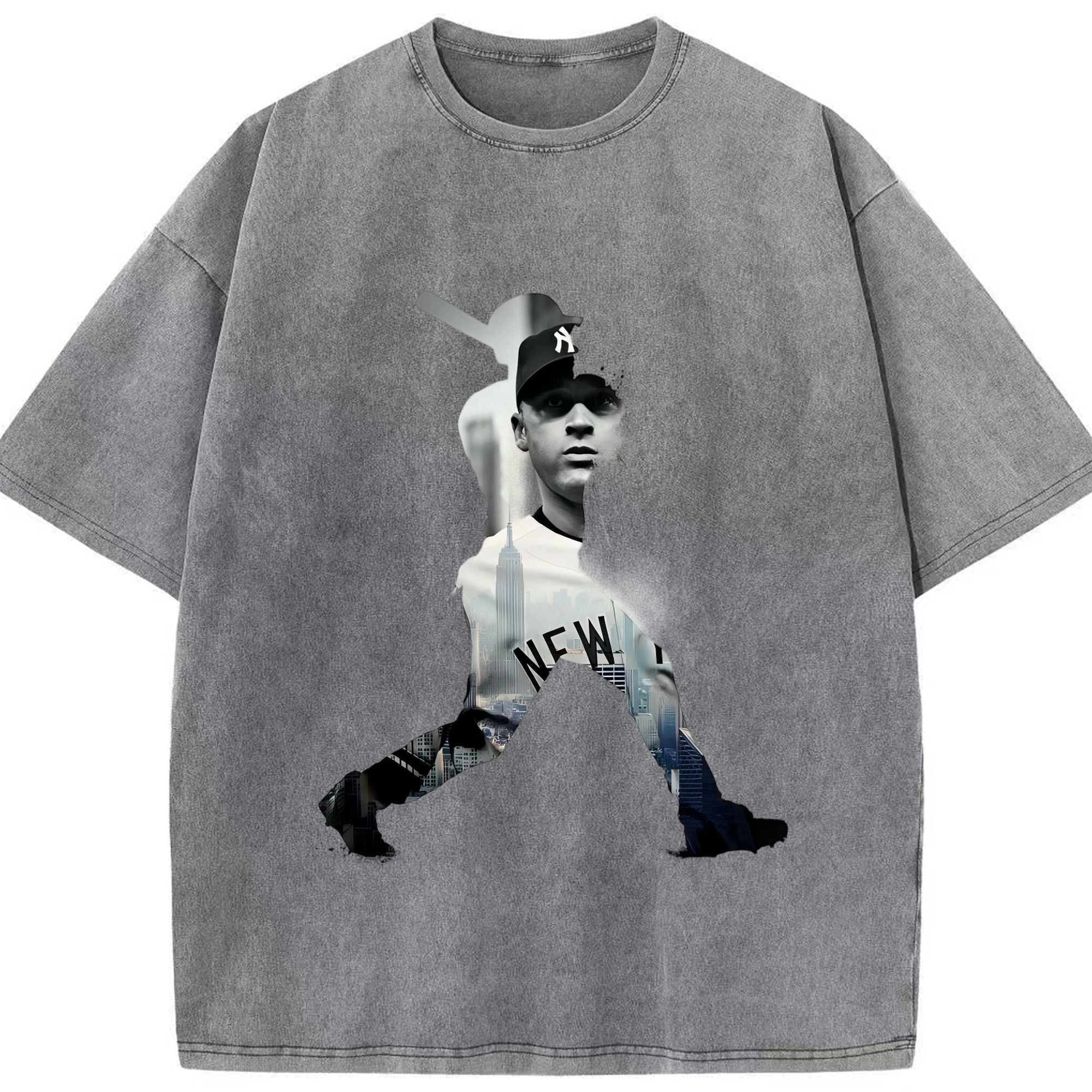 Derek Jeter 83 Washed Vintage Look 230g Cotton Oversized T-Shirt With Front Heat Transfer Print – Soft, Lightweight, Stylish Fit – Comfortable Casual Wear For Sports & Everyday Use
