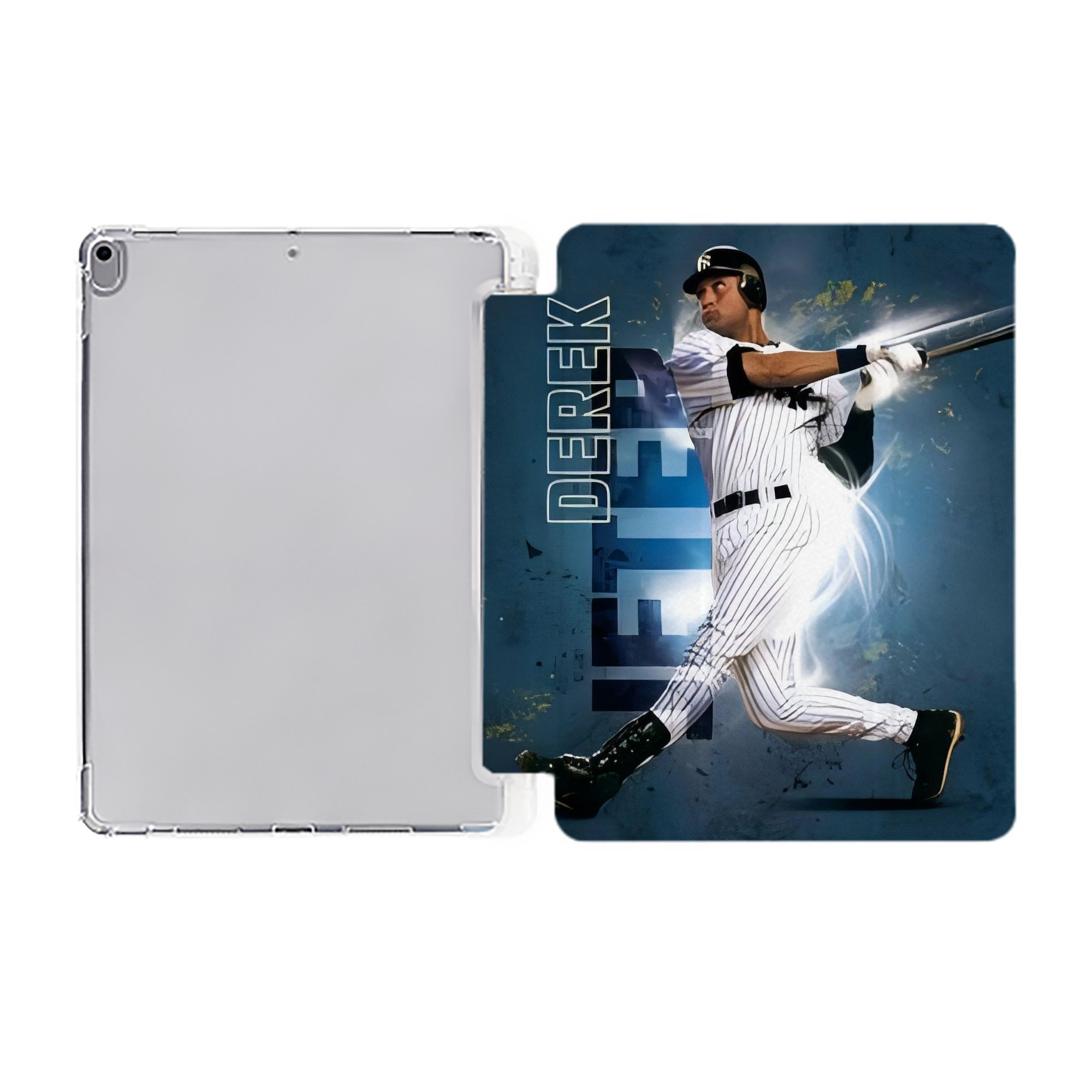 Derek Jeter 99 Premium Tri-Fold PU Leather & Silicone IPad Case With Pencil Slot – Fits 9.5,10.5,10.9 – Adjustable Stand, Slim, Protective