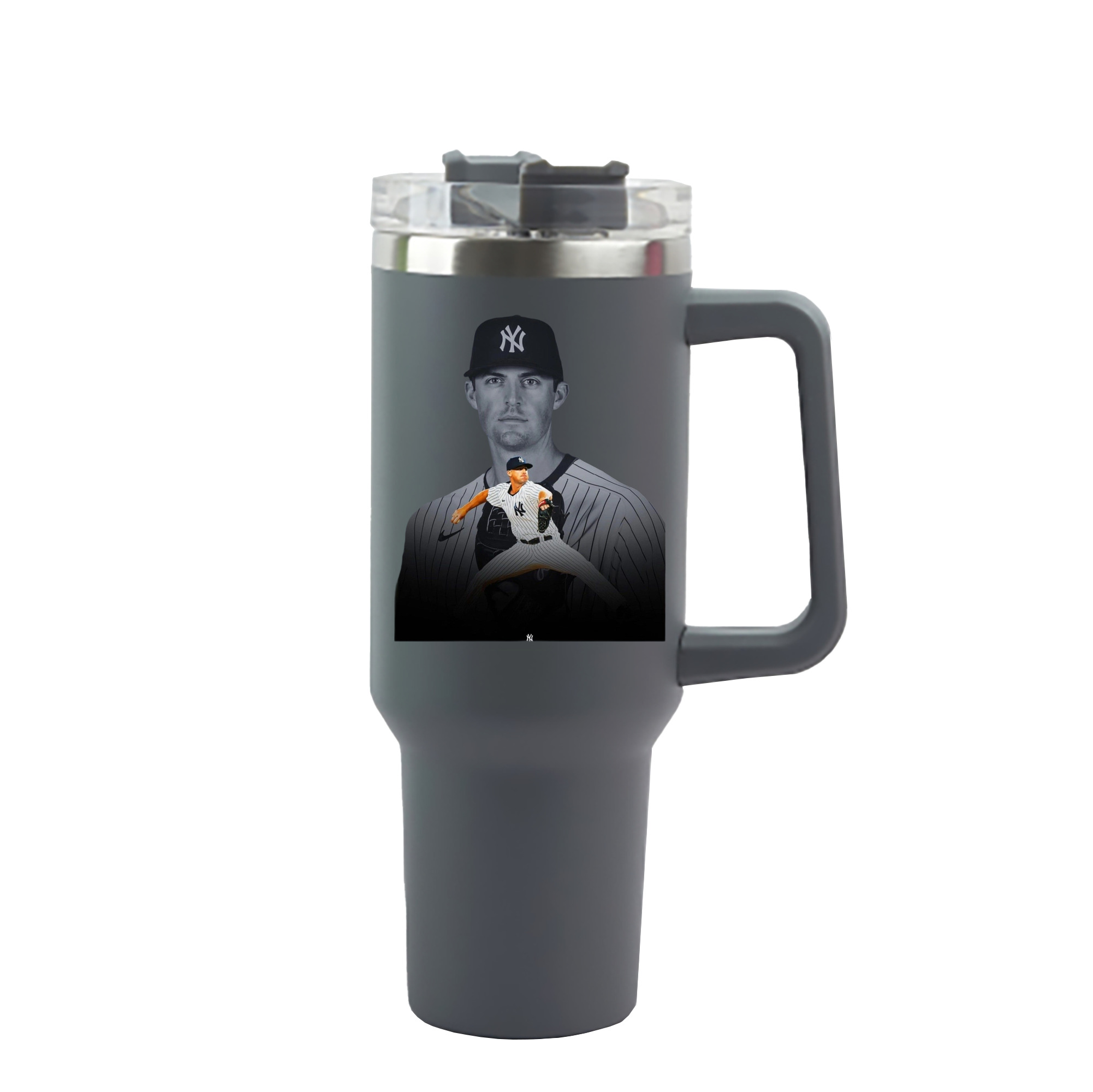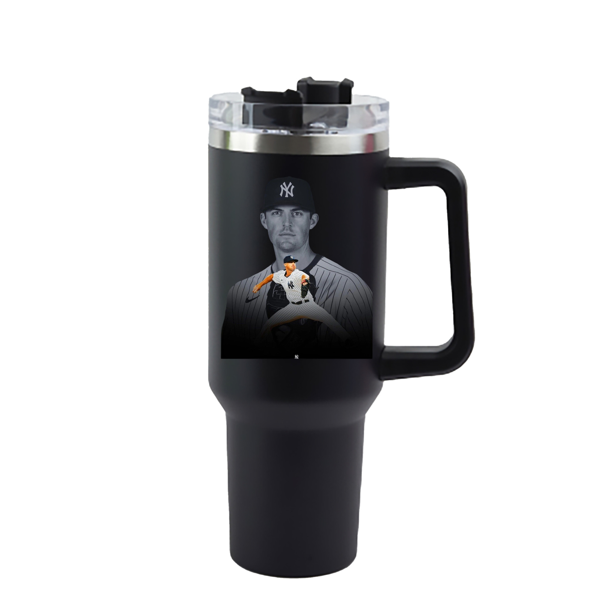 DJ Lemahieu 1 40oz Handle Car Cup With Crystal Sticker Design – Durable Stainless Steel Travel Mug With Reusable Straw – Double Wall Insulated