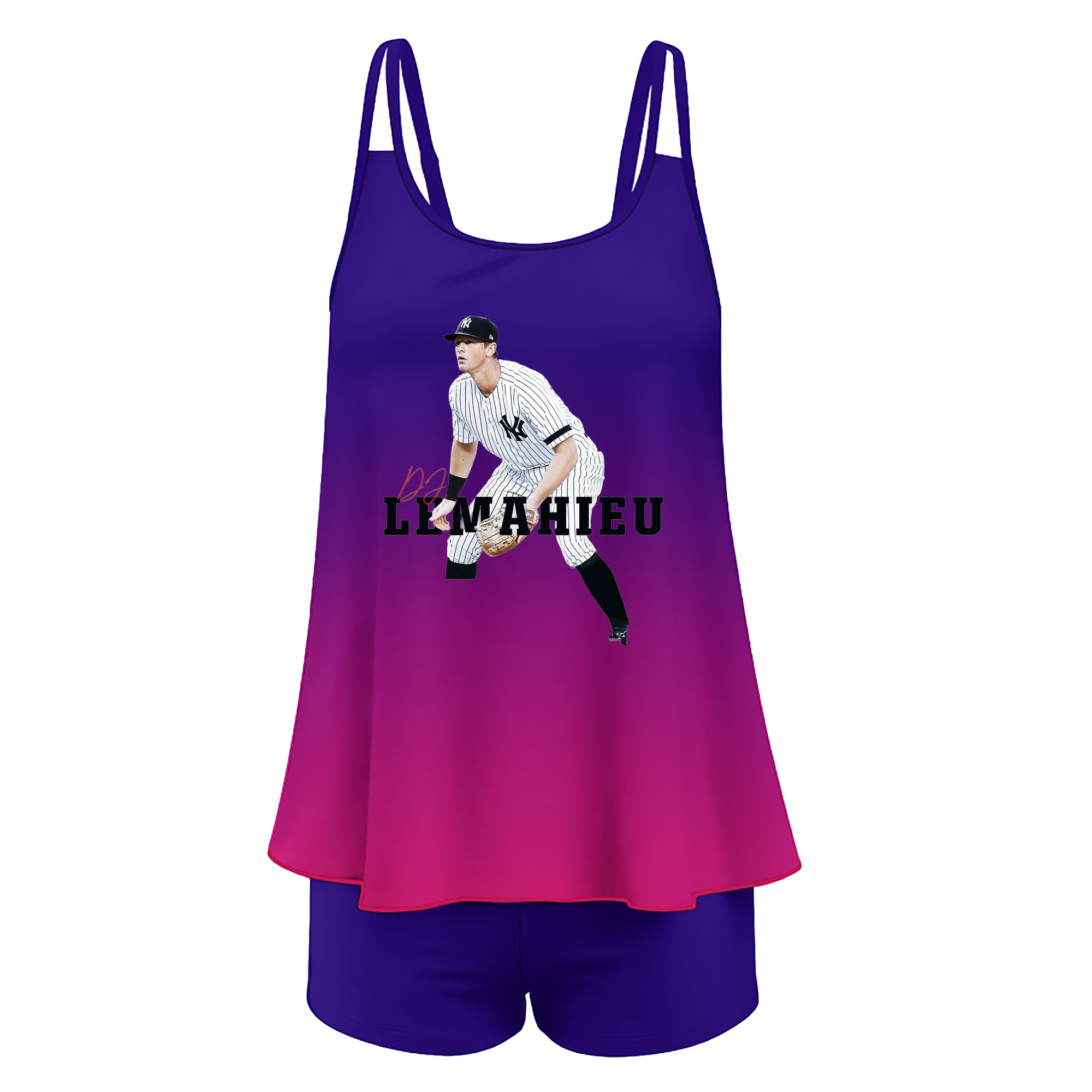 DJ Lemahieu 6 Women’s Heat Transfer Printed Two-Piece Swimsuit Set – Sexy Double Strap Bandeau Top & Boyshort Bottoms, Soft Nylon-Spandex, Perfect for Beach, Pool & Vacation