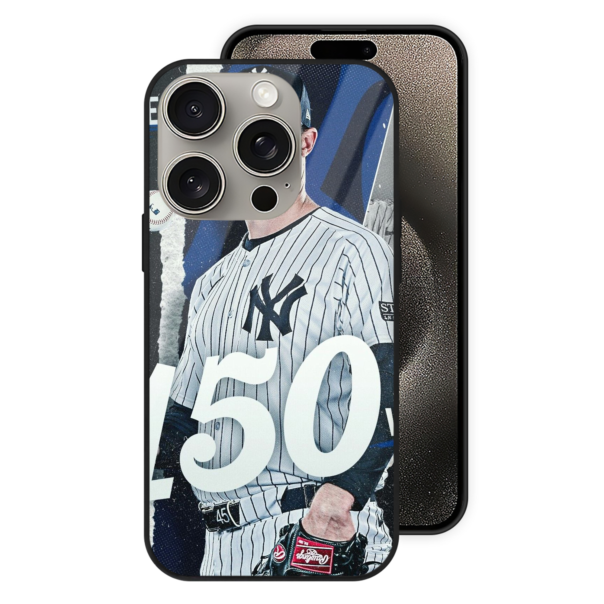 Gerrit Cole 10 IPhone 15 Pro Mirror Phone Case – UV Printed Glass + TPU – Scratch-Resistant, Wireless Charging Compatible, Precise Fit & Stylish Design