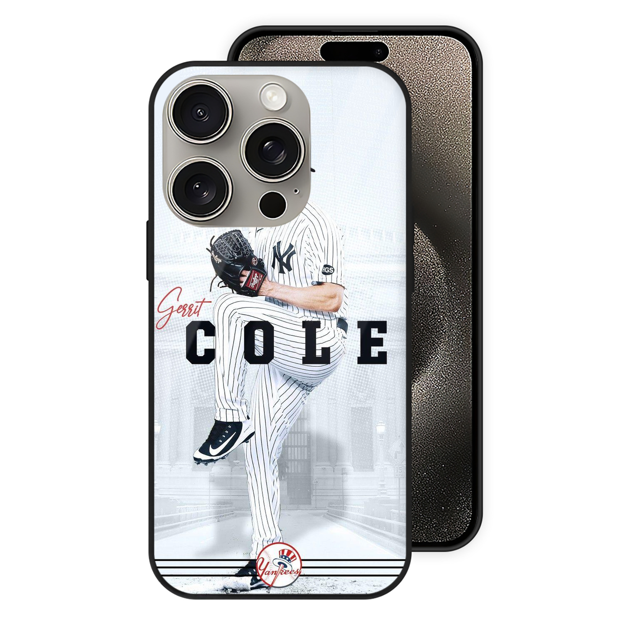 Gerrit Cole 24 IPhone 15 Pro Mirror Phone Case – UV Printed Glass + TPU – Scratch-Resistant, Wireless Charging Compatible, Precise Fit & Stylish Design