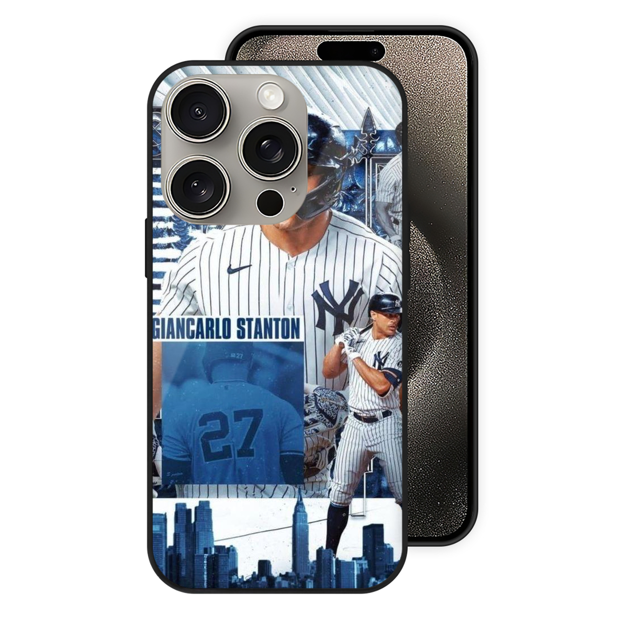 Giancarlo Stanton 17 IPhone 15 Pro Mirror Phone Case – UV Printed Glass + TPU – Scratch-Resistant, Wireless Charging Compatible, Precise Fit & Stylish Design