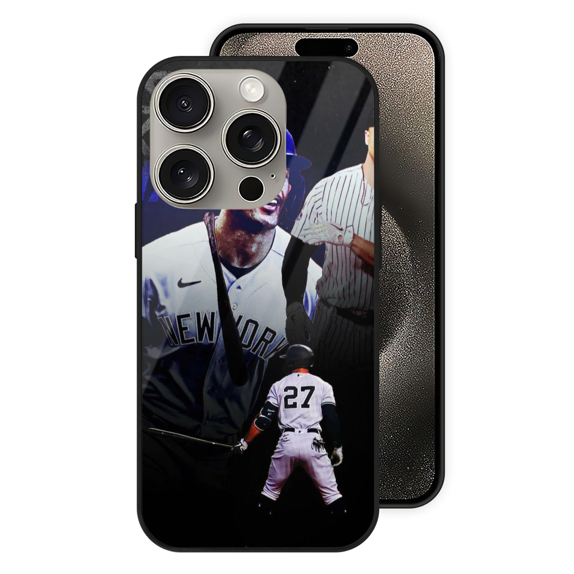 Giancarlo Stanton 36 IPhone 15 Pro Mirror Phone Case – UV Printed Glass + TPU – Scratch-Resistant, Wireless Charging Compatible, Precise Fit & Stylish Design