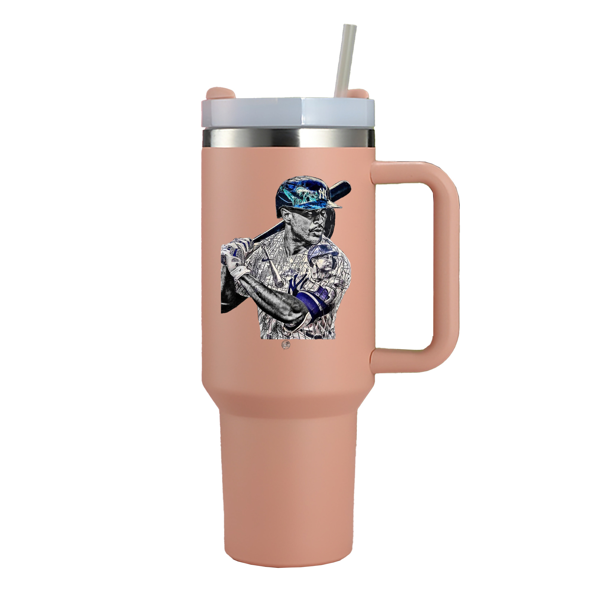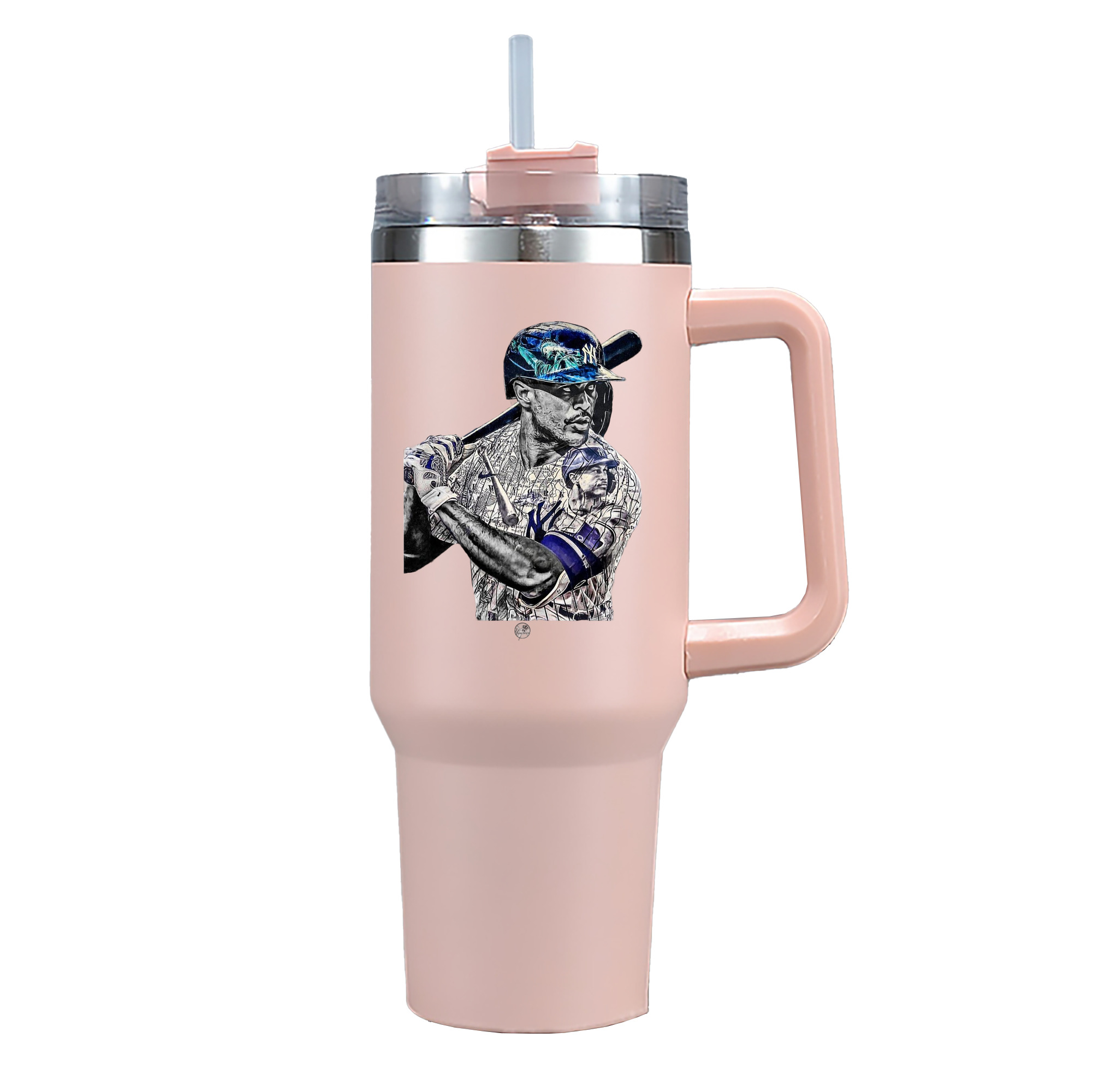 Giancarlo Stanton 5 40oz Handle Car Cup With Crystal Sticker Design – Durable Stainless Steel Travel Mug With Reusable Straw – Double Wall Insulated
