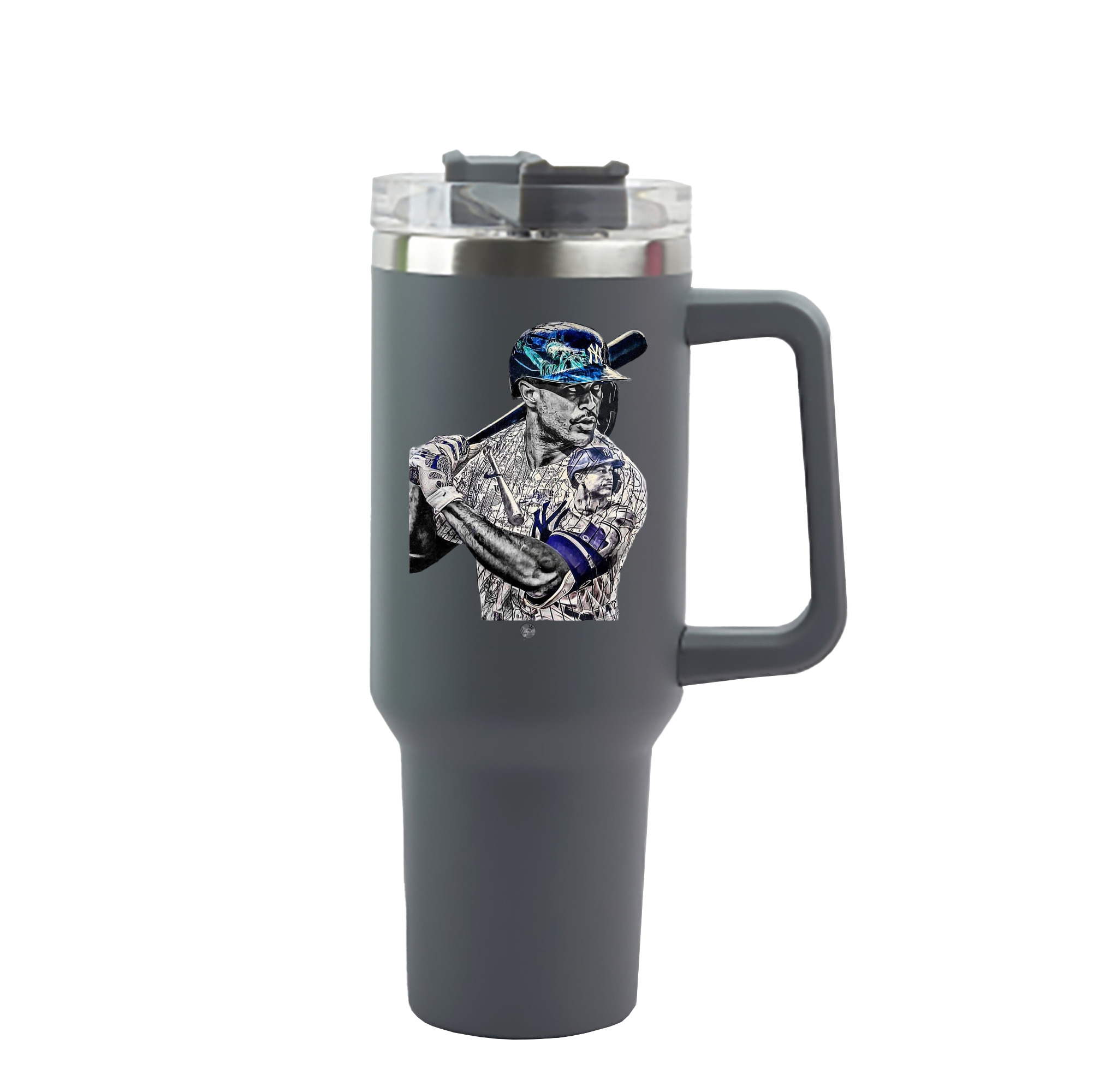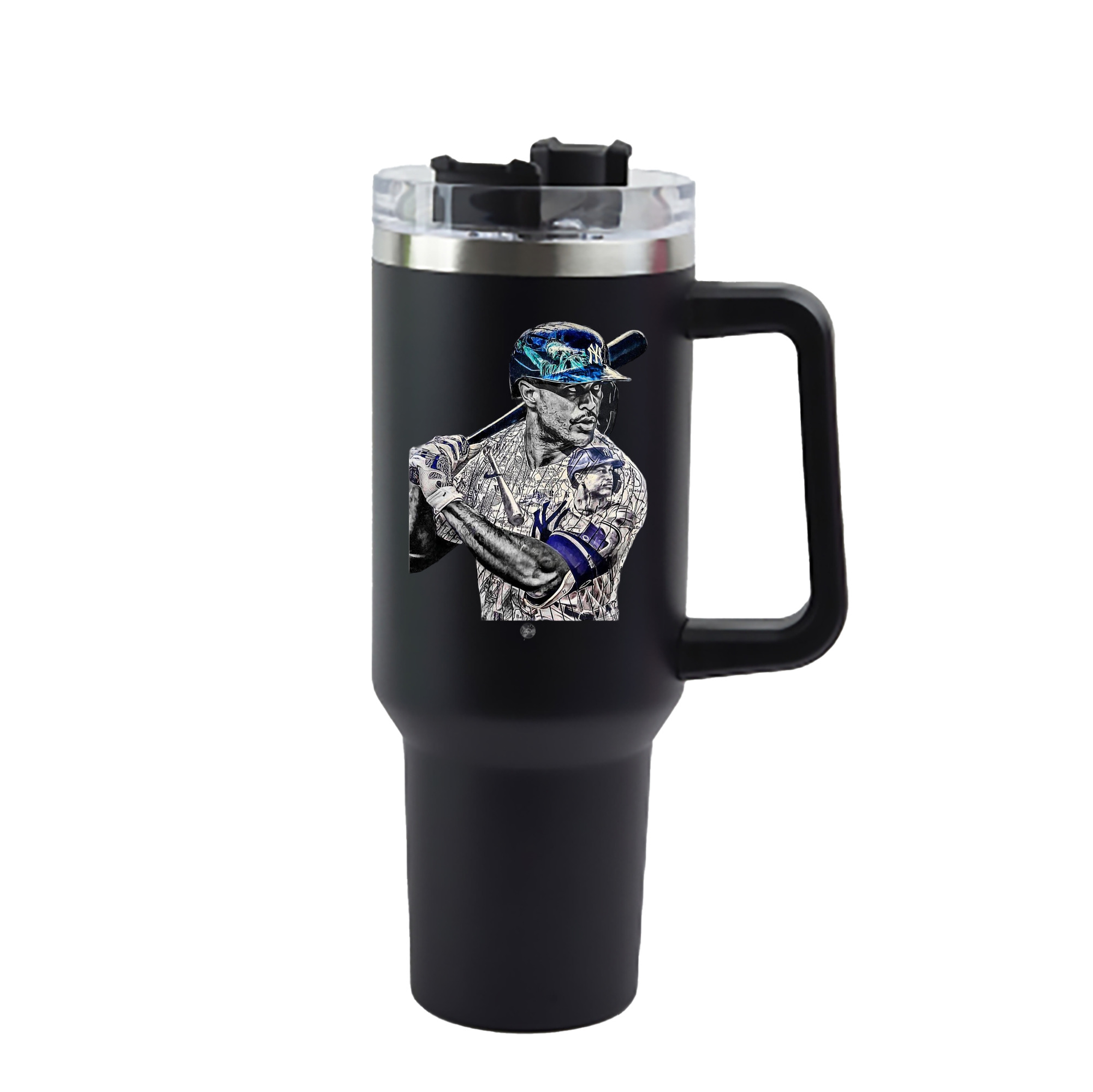 A generic imageGiancarlo Stanton 5 40oz Handle Car Cup With Crystal Sticker Design – Durable Stainless Steel Travel Mug With Reusable Straw – Double Wall InsulatedGiancarlo Stanton 5 40oz Handle Car Cup With Crystal Sticker Design – Durable Stainless Steel Travel Mug With Reusable Straw – Double Wall Insulated