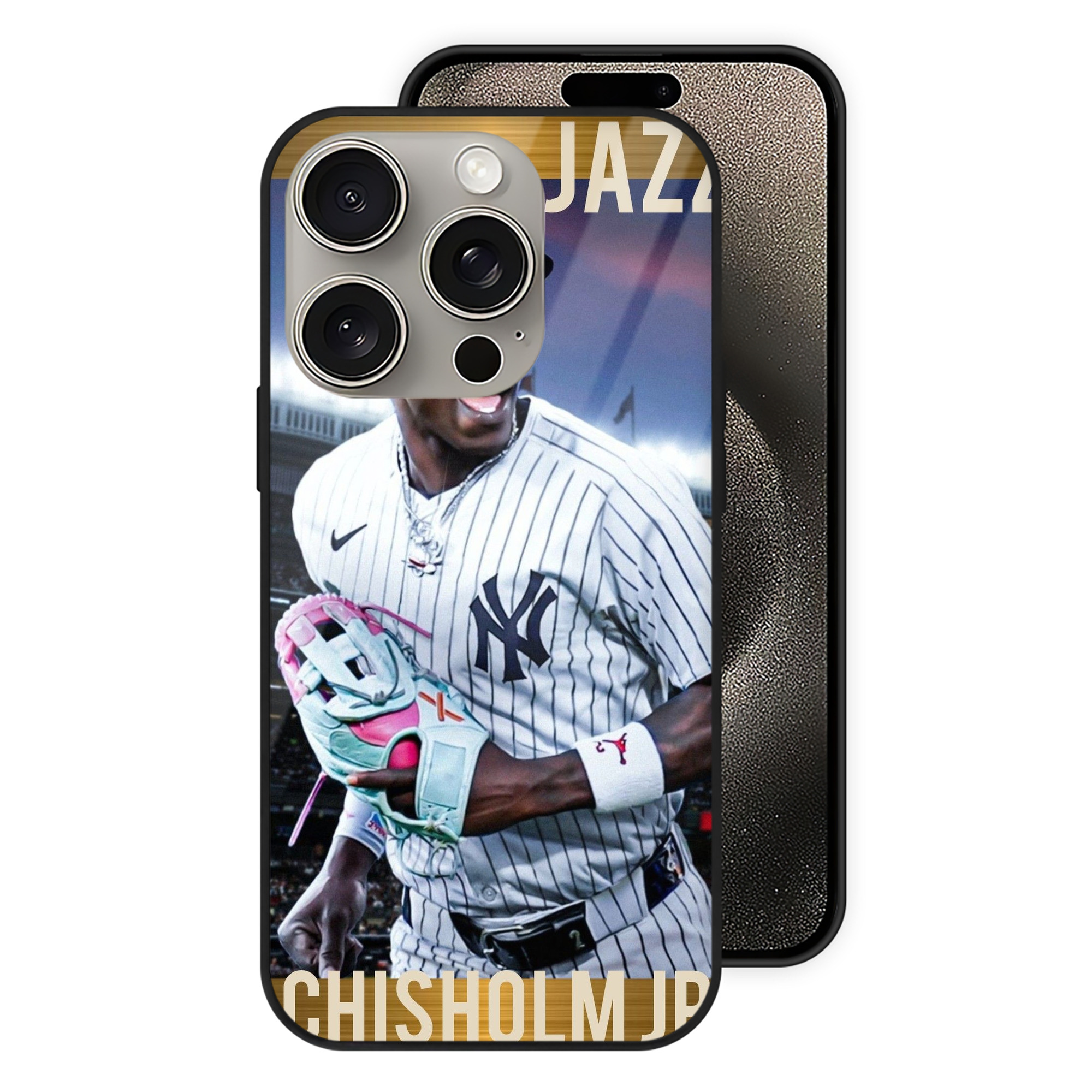 Jazz Chisholm Jr. 44 IPhone 15 Pro Mirror Phone Case – UV Printed Glass + TPU – Scratch-Resistant, Wireless Charging Compatible, Precise Fit & Stylish Design