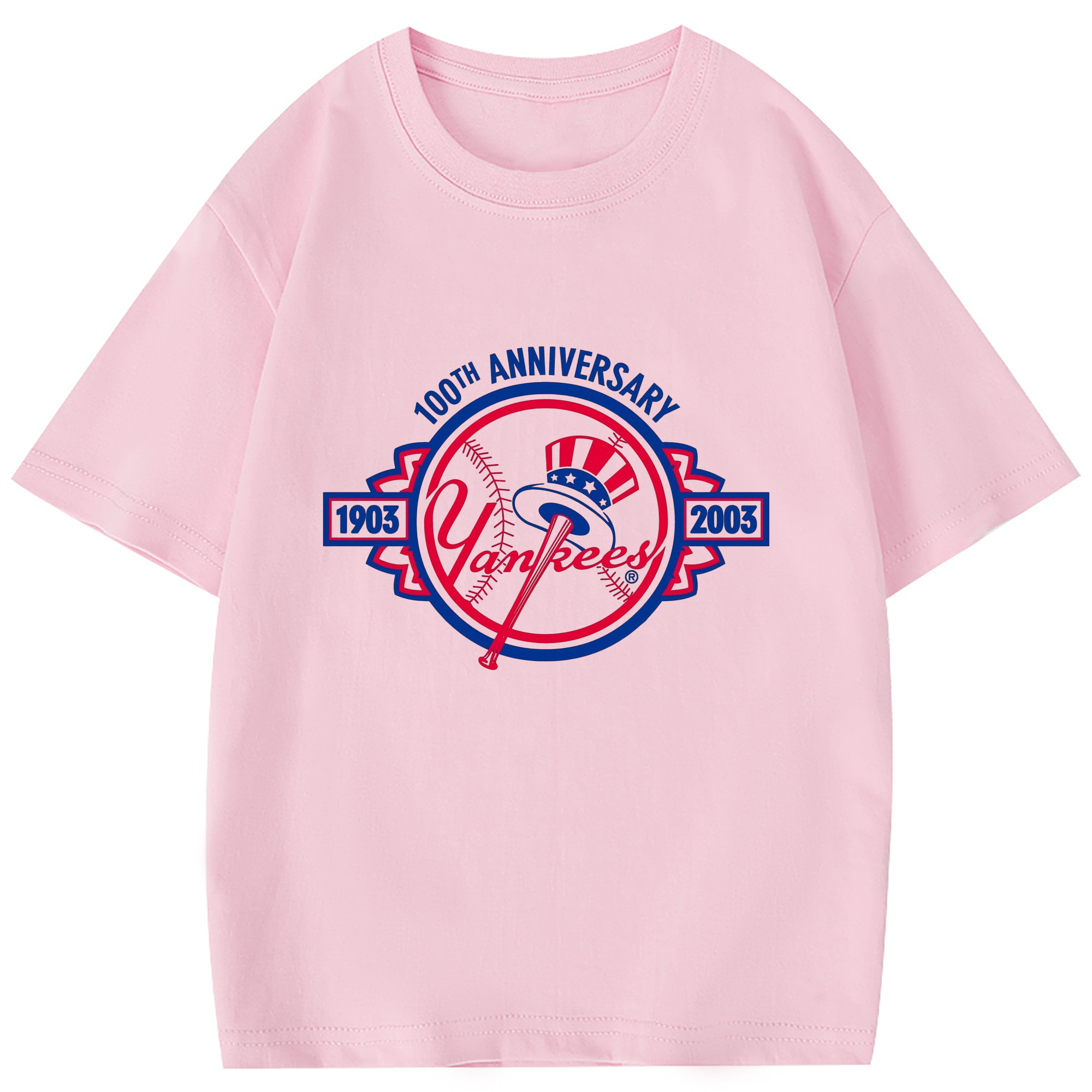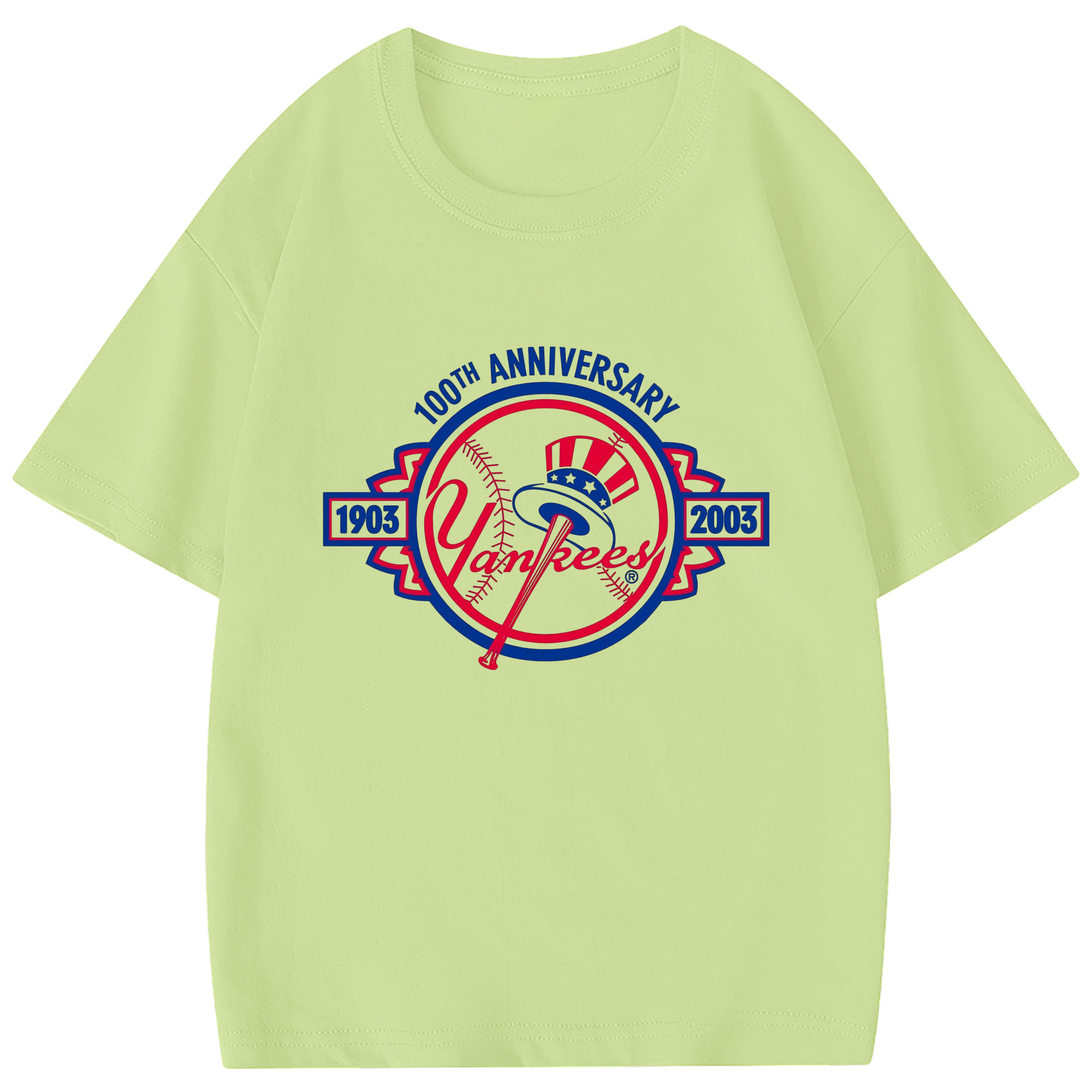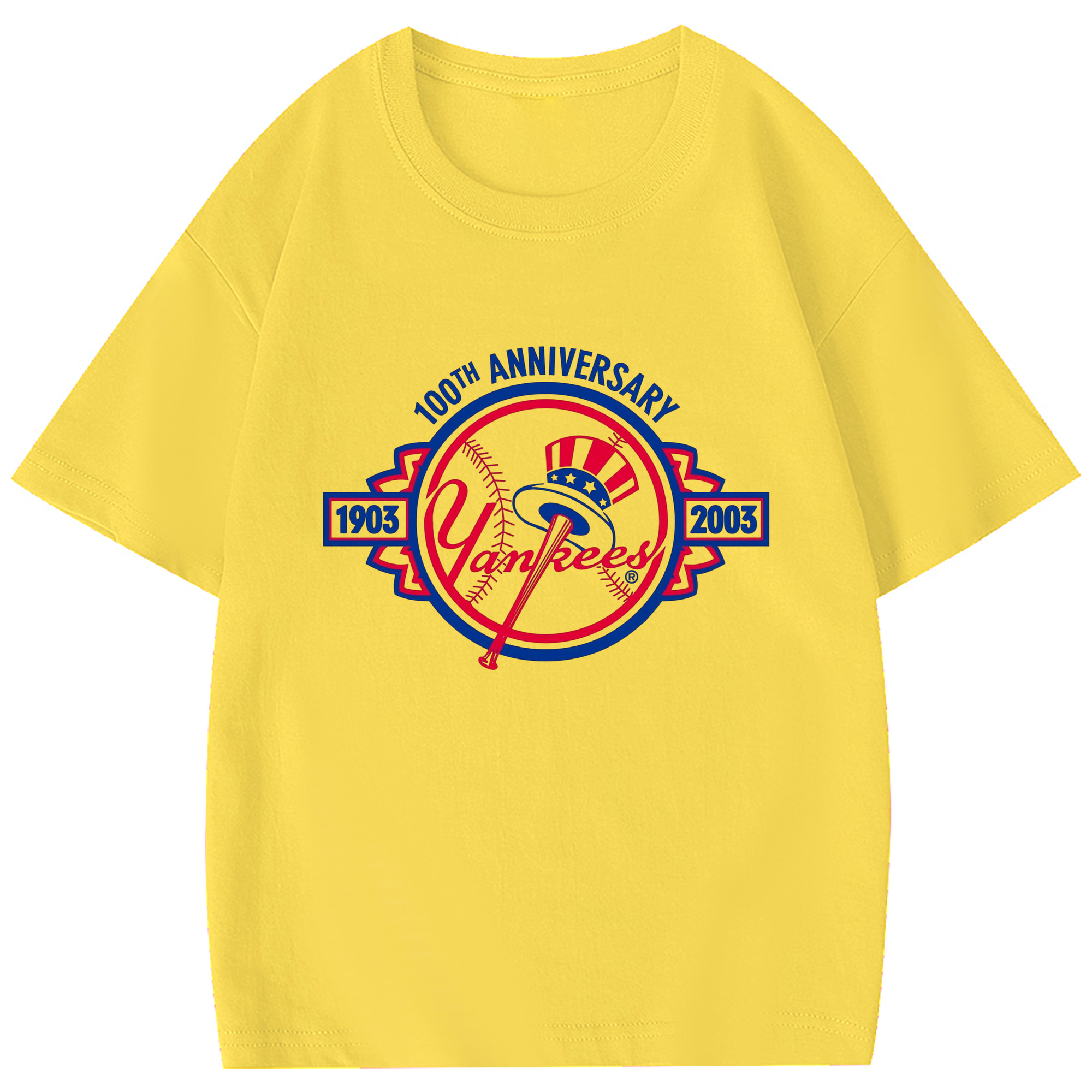 New York Yankees 100th Anniversary 1903-2003 Combed Cotton Kids T-Shirt 180g With Front Heat Transfer Print – Soft, Lightweight, Side-Seamed Design – Stylish And Comfortable Casual Wear For Everyday Activities