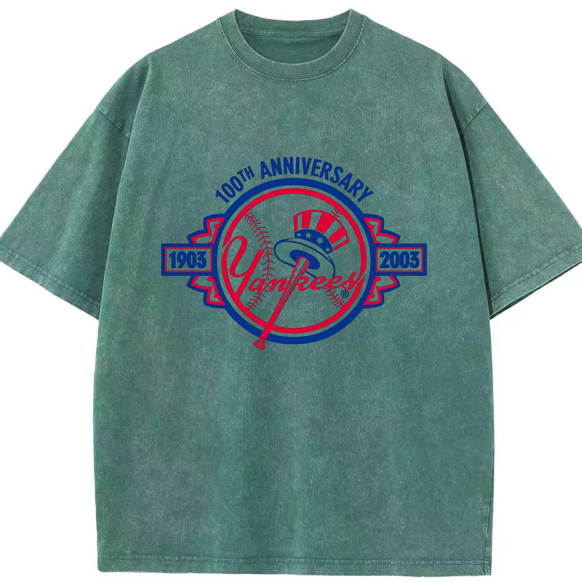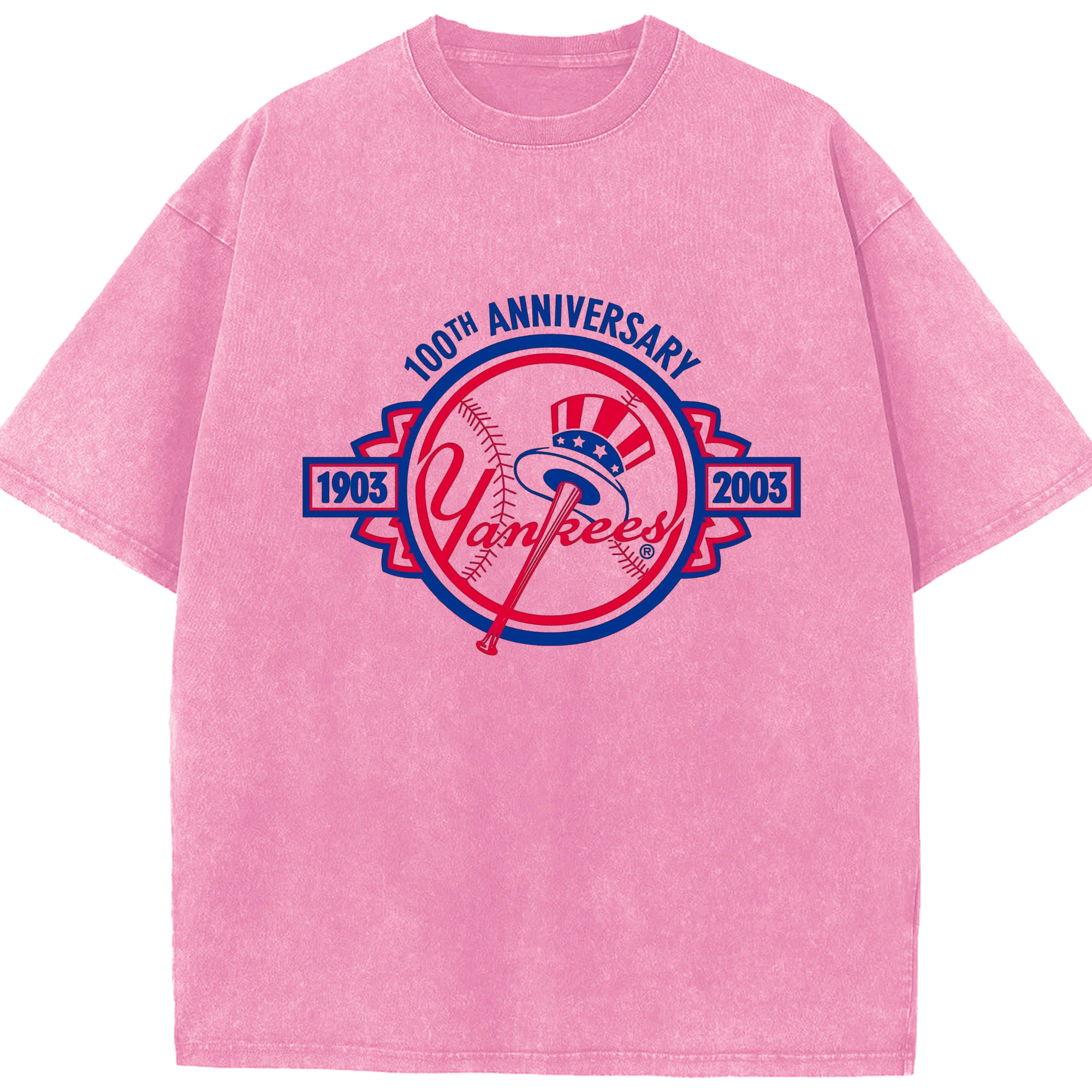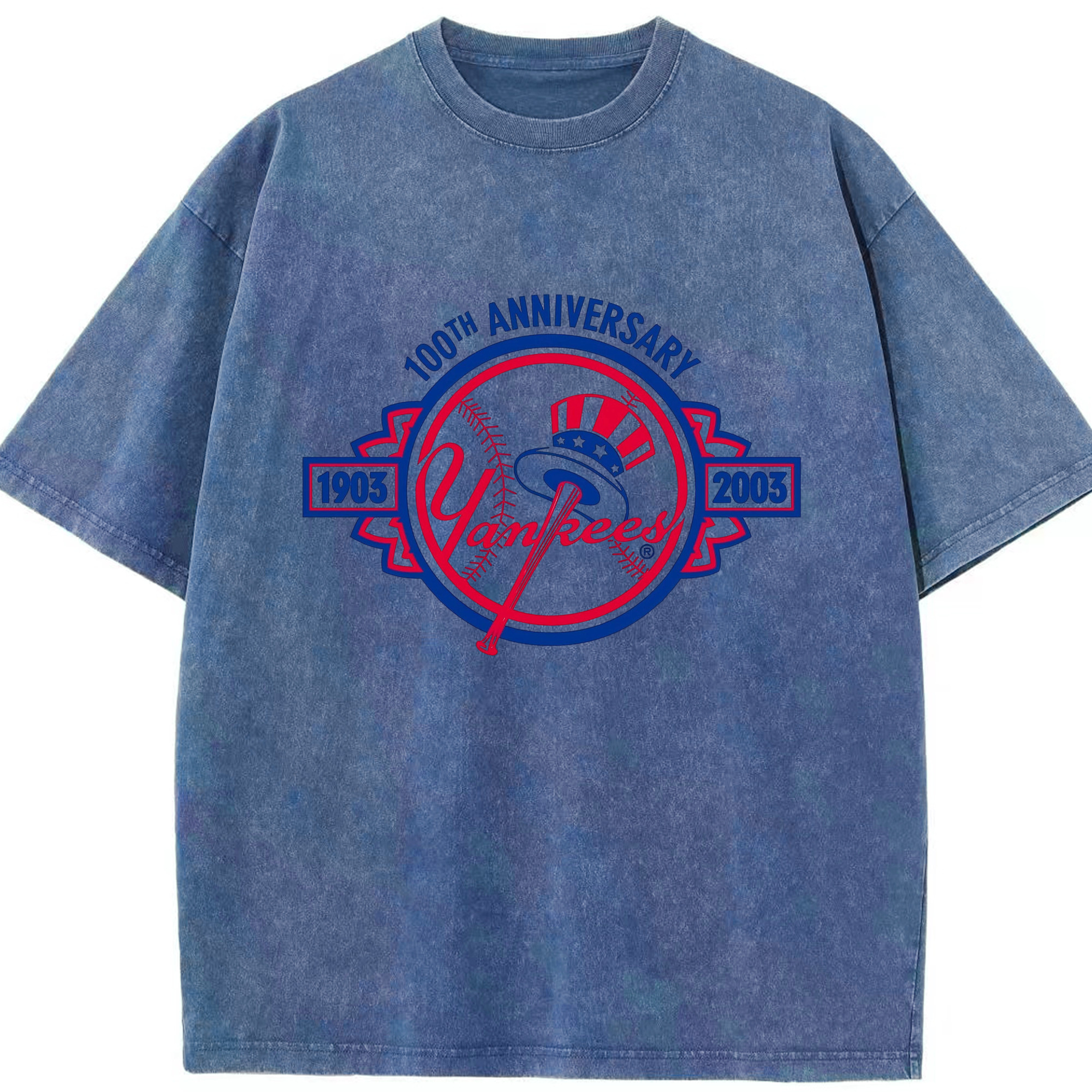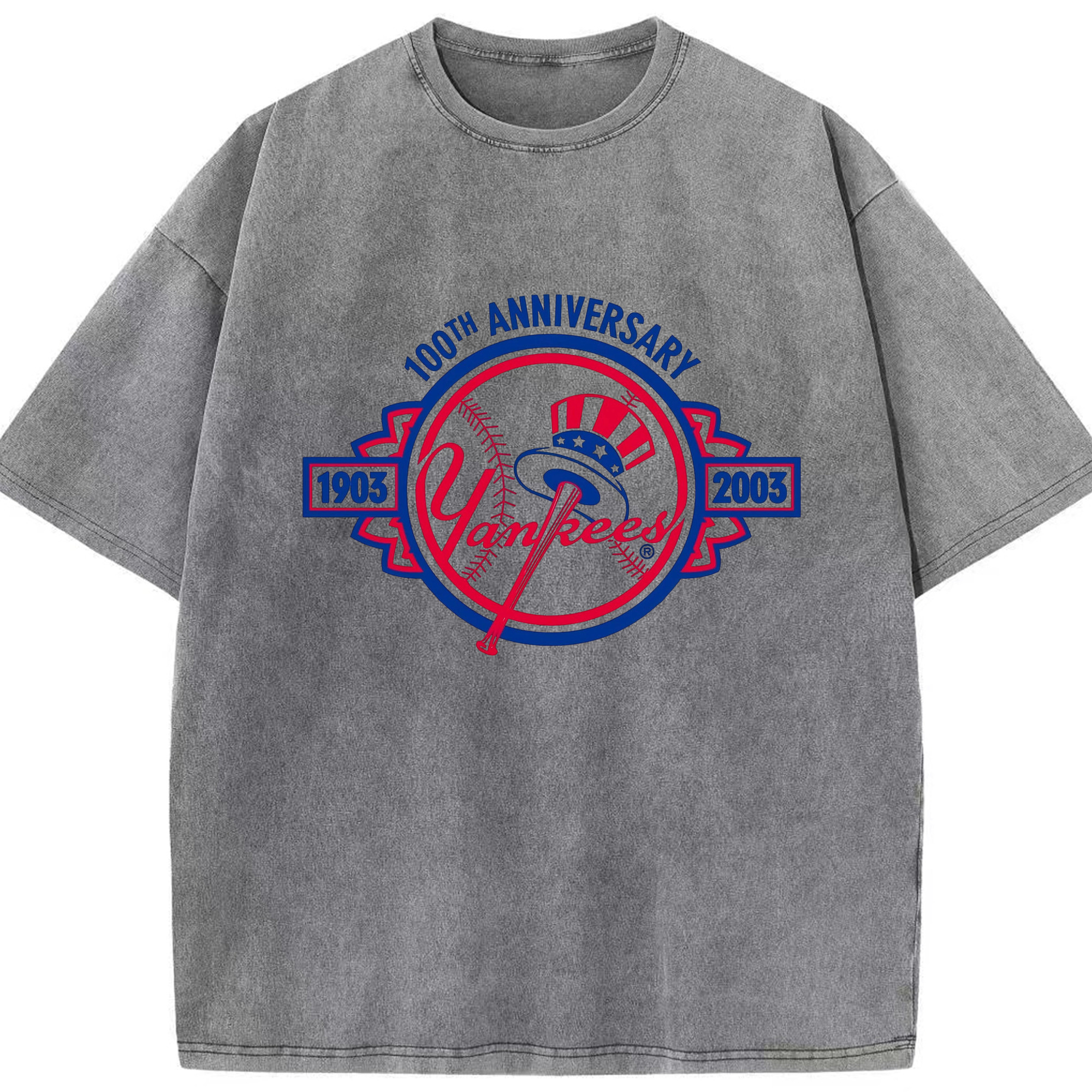 New York Yankees 100th Anniversary 1903-2003 Washed Vintage Look 230g Cotton Oversized T-Shirt With Front Heat Transfer Print – Soft, Lightweight, Stylish Fit – Comfortable Casual Wear For Sports & Everyday Use