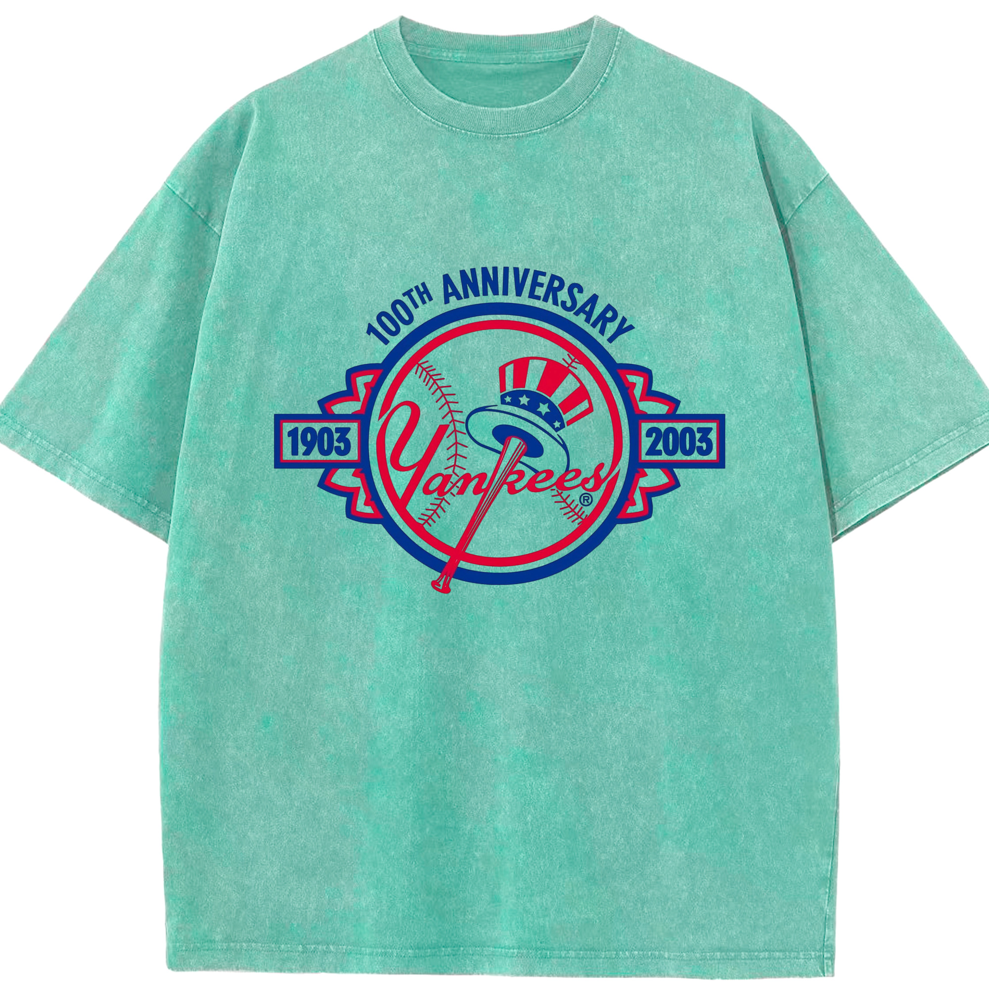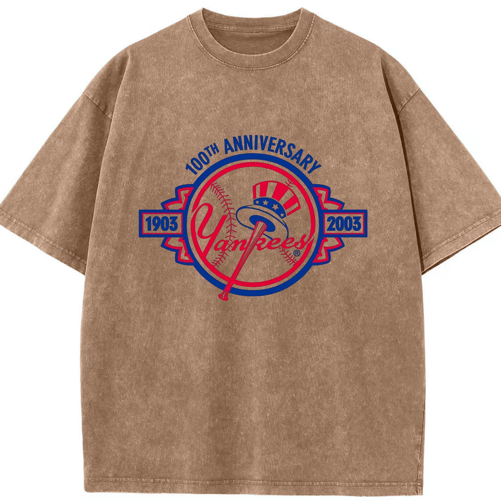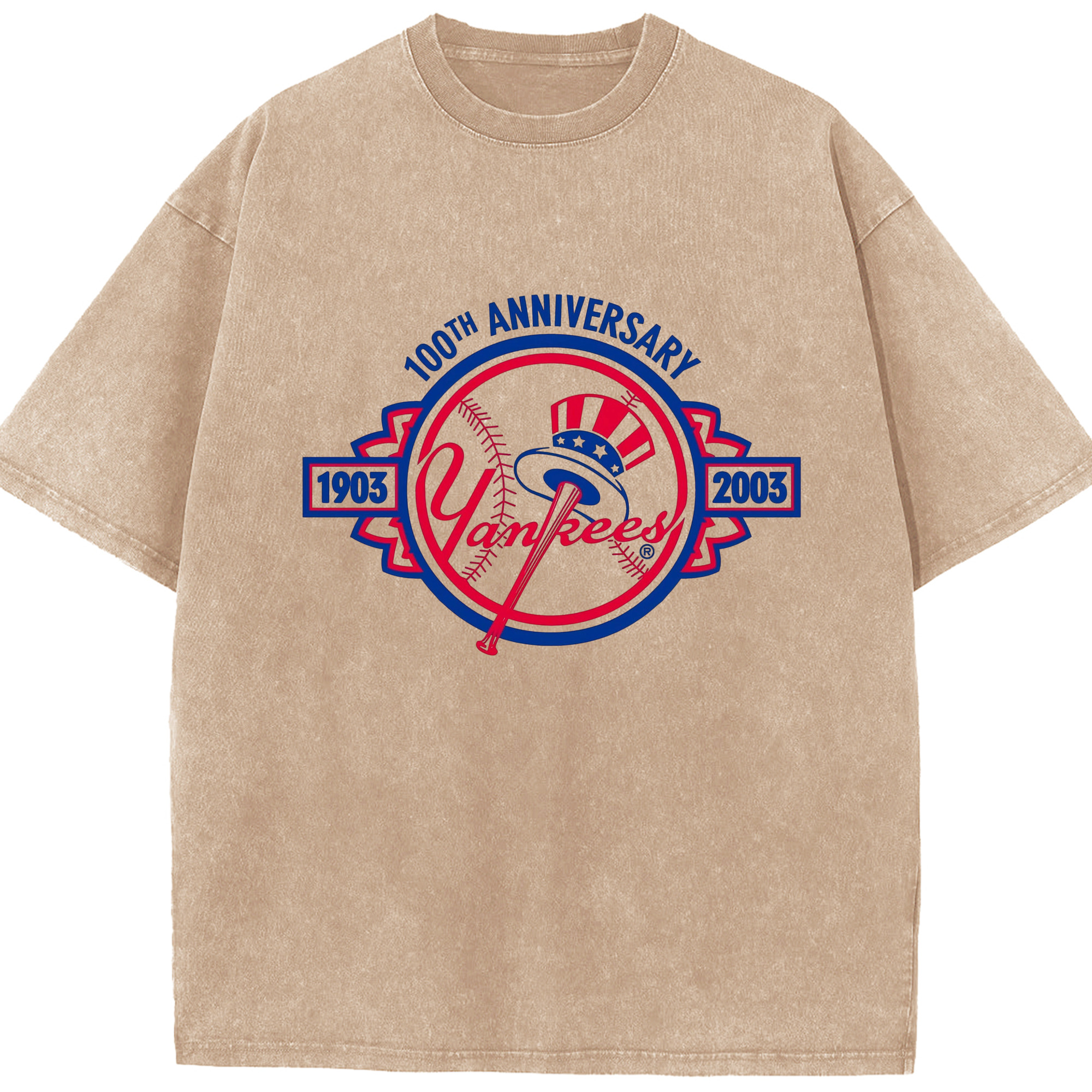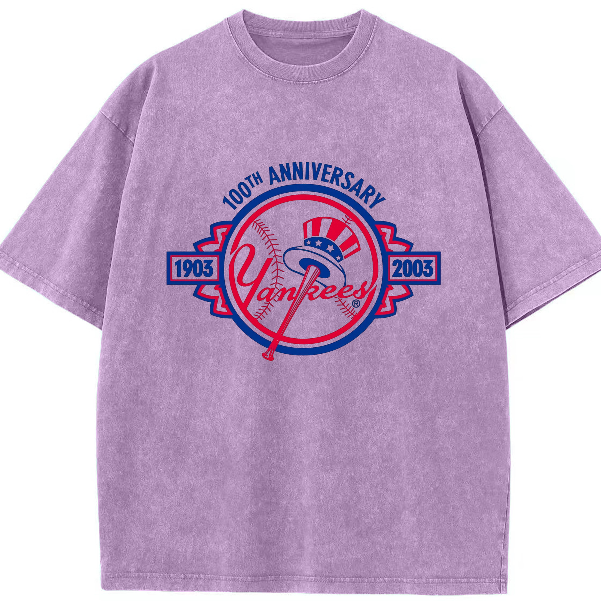New York Yankees 100th Anniversary 1903-2003 Washed Vintage Look 230g Cotton Oversized T-Shirt With Front Heat Transfer Print – Soft, Lightweight, Stylish Fit – Comfortable Casual Wear For Sports & Everyday Use