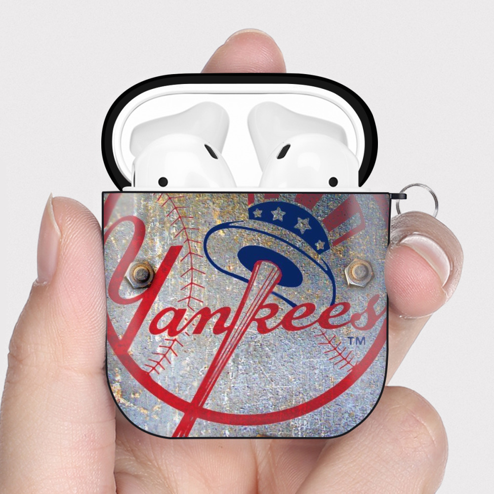 New York Yankees 112 AirPods 2 Case Hard Shell Black, Flexible PC Material, Precise Cutouts, Full Protection, Anti-Fingerprint, Washable, Includes Keychain – Durable & Slim Design