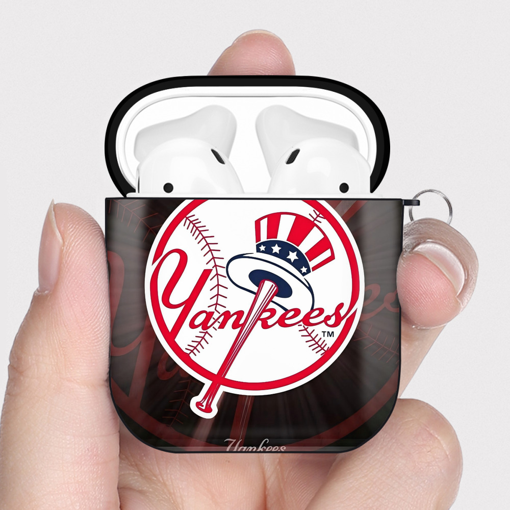 New York Yankees 124 AirPods 2 Case Hard Shell Black, Flexible PC Material, Precise Cutouts, Full Protection, Anti-Fingerprint, Washable, Includes Keychain – Durable & Slim Design