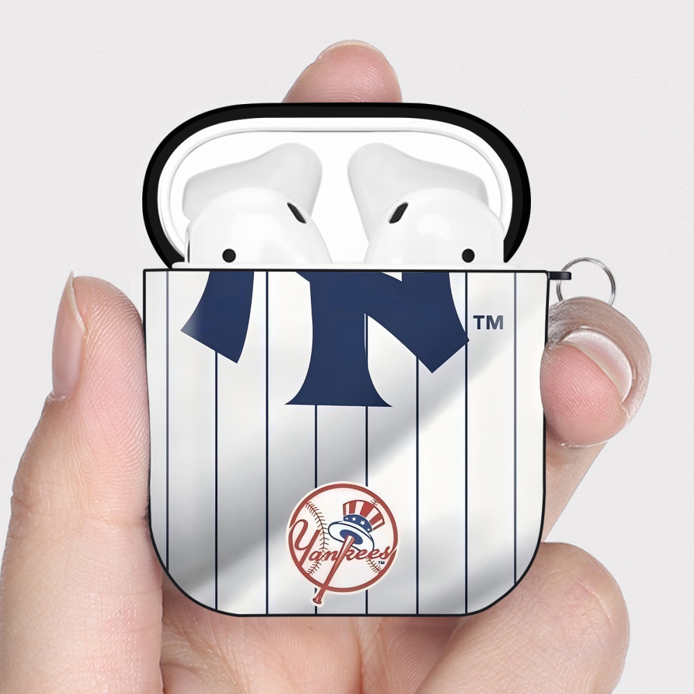 New York Yankees 126 AirPods 2 Case Hard Shell Black, Flexible PC Material, Precise Cutouts, Full Protection, Anti-Fingerprint, Washable, Includes Keychain – Durable & Slim Design