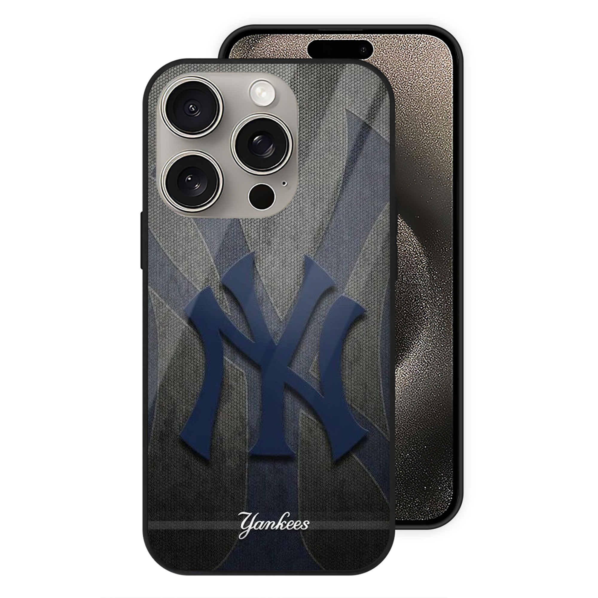 New York Yankees 153 IPhone 15 Pro Mirror Phone Case – UV Printed Glass + TPU – Scratch-Resistant, Wireless Charging Compatible, Precise Fit & Stylish Design