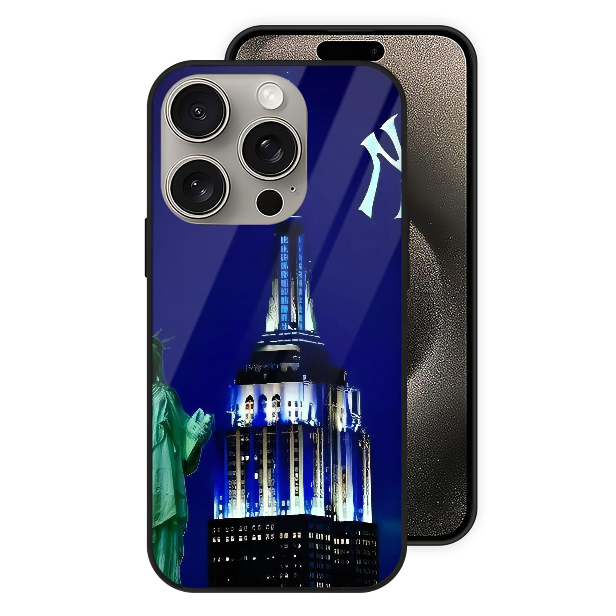 New York Yankees 175 IPhone 15 Pro Mirror Phone Case – UV Printed Glass + TPU – Scratch-Resistant, Wireless Charging Compatible, Precise Fit & Stylish Design