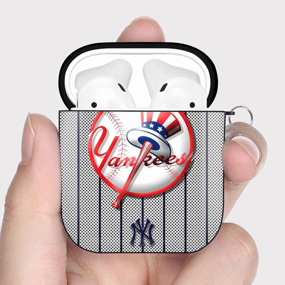 New York Yankees 197 AirPods 2 Case Hard Shell Black, Flexible PC Material, Precise Cutouts, Full Protection, Anti-Fingerprint, Washable, Includes Keychain – Durable & Slim Design