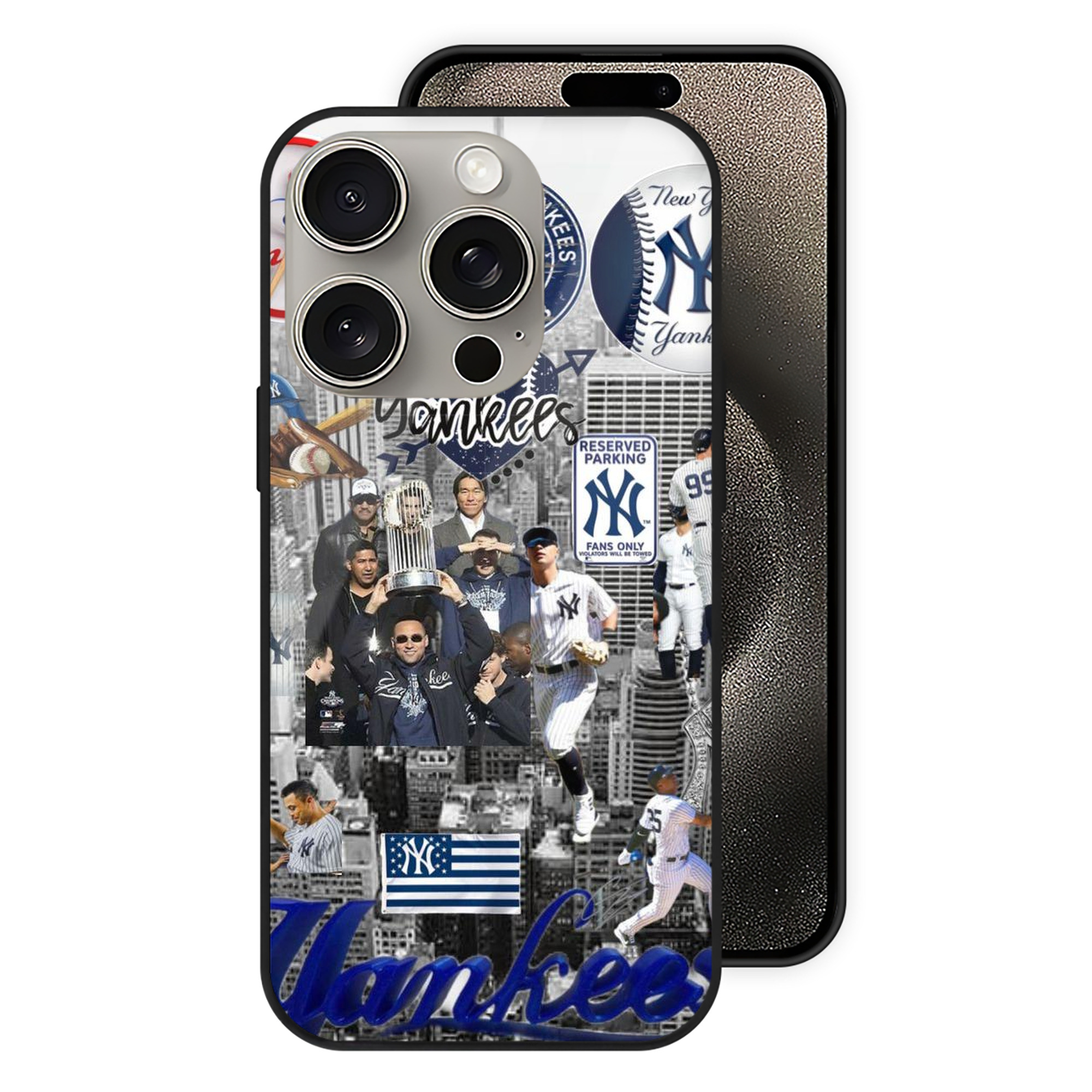 New York Yankees 199 IPhone 15 Pro Mirror Phone Case – UV Printed Glass + TPU – Scratch-Resistant, Wireless Charging Compatible, Precise Fit & Stylish Design