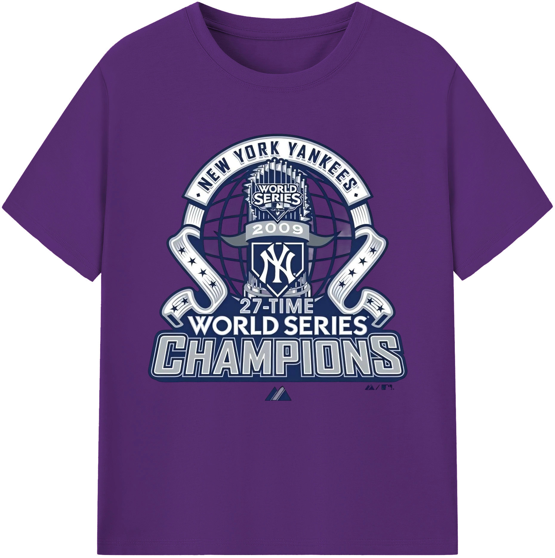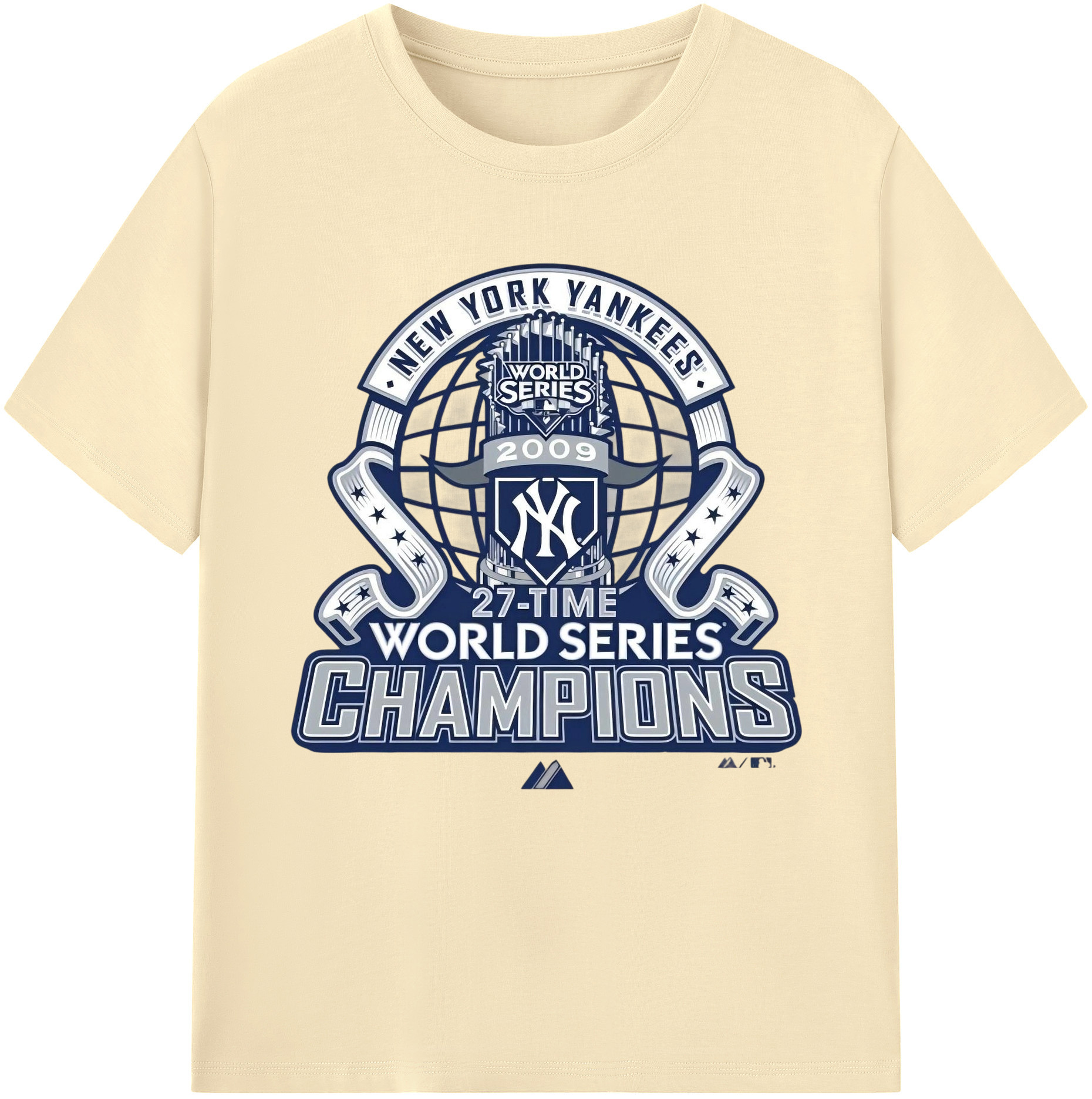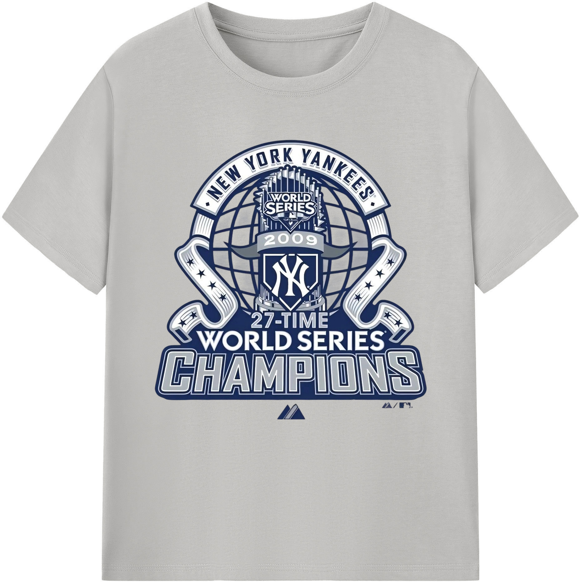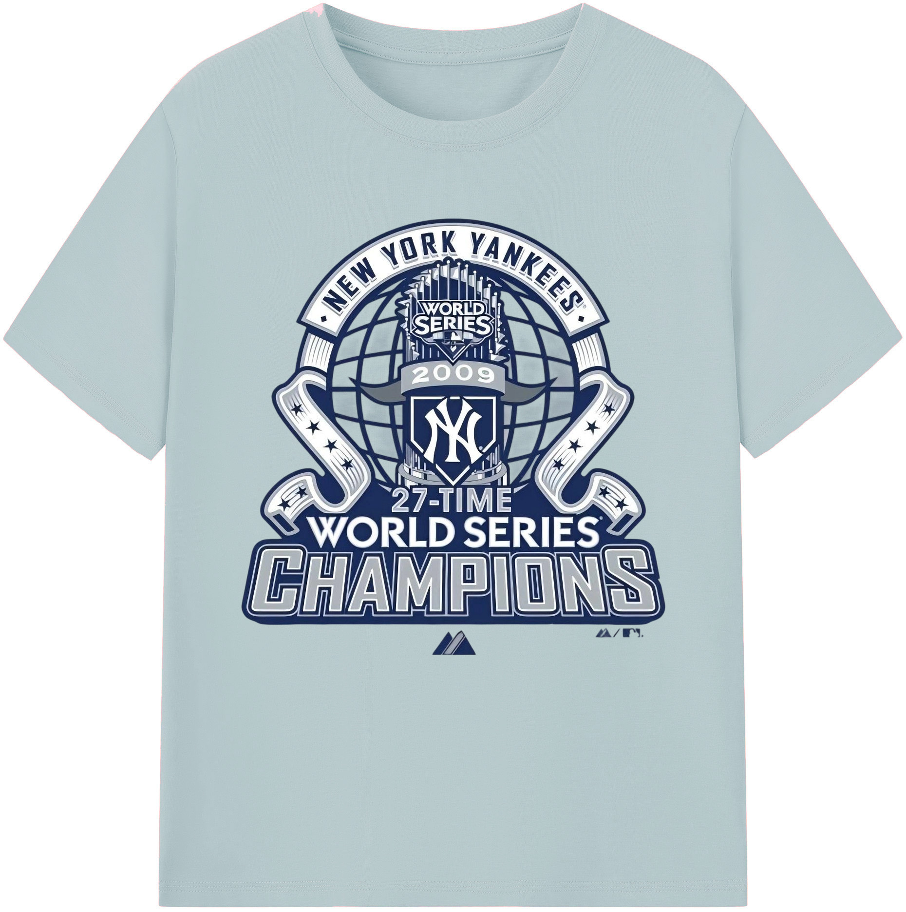 New York Yankees 2009 27th WS Champions Blue Combed Cotton T-Shirt 180g With Front Heat Transfer Print – Soft, Lightweight, Fitted Design – Stylish Casual Wear For Sports & Everyday Use