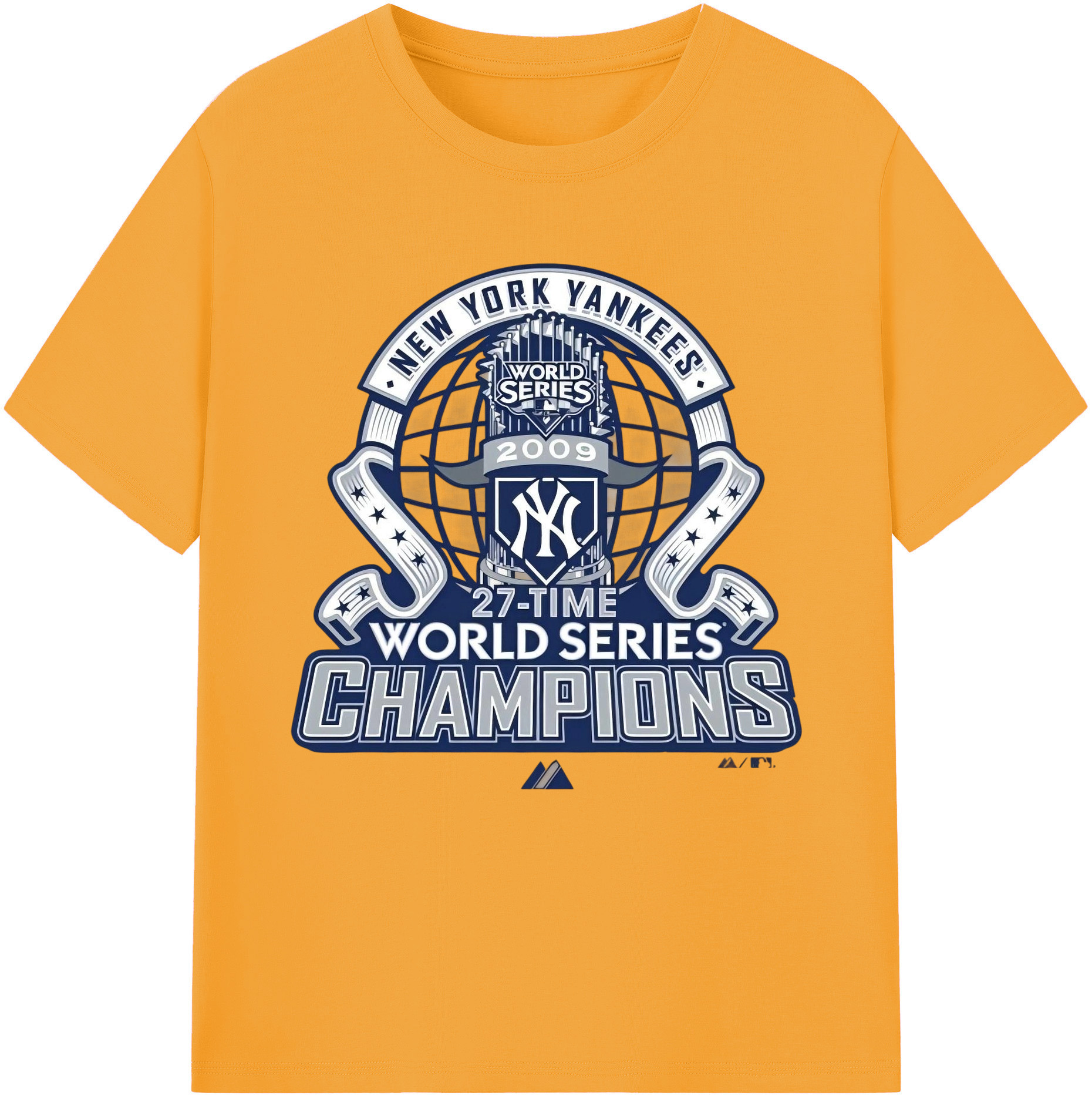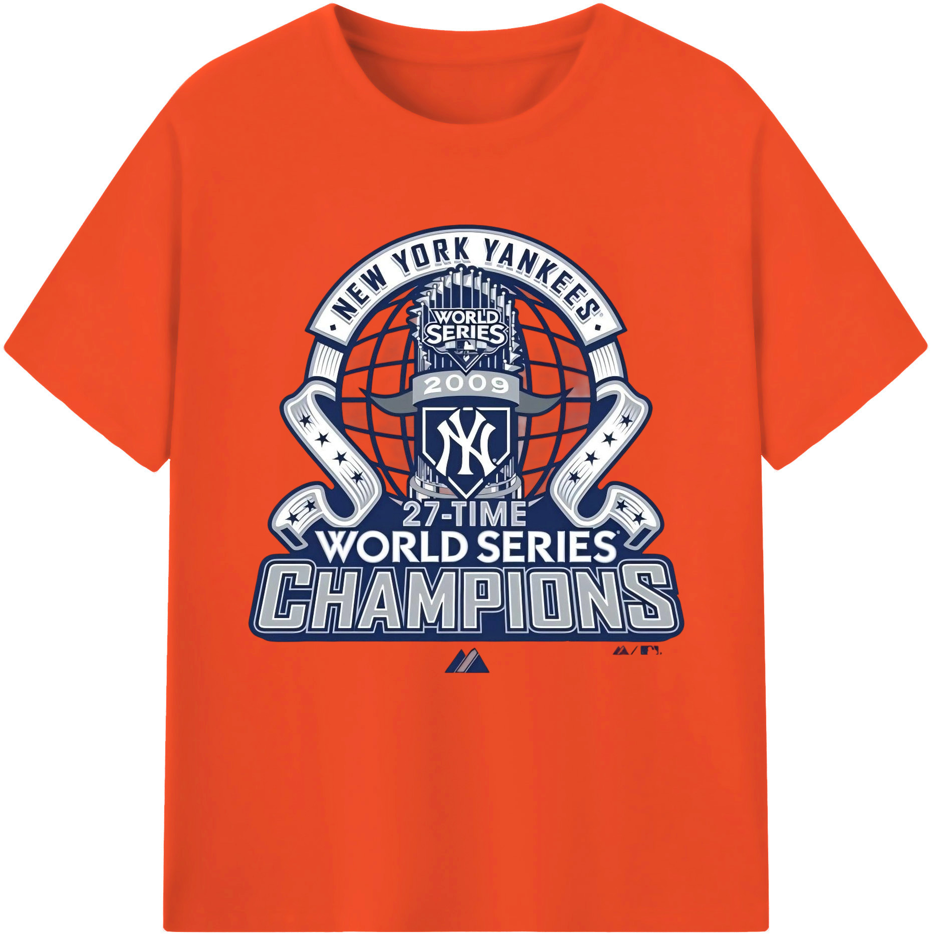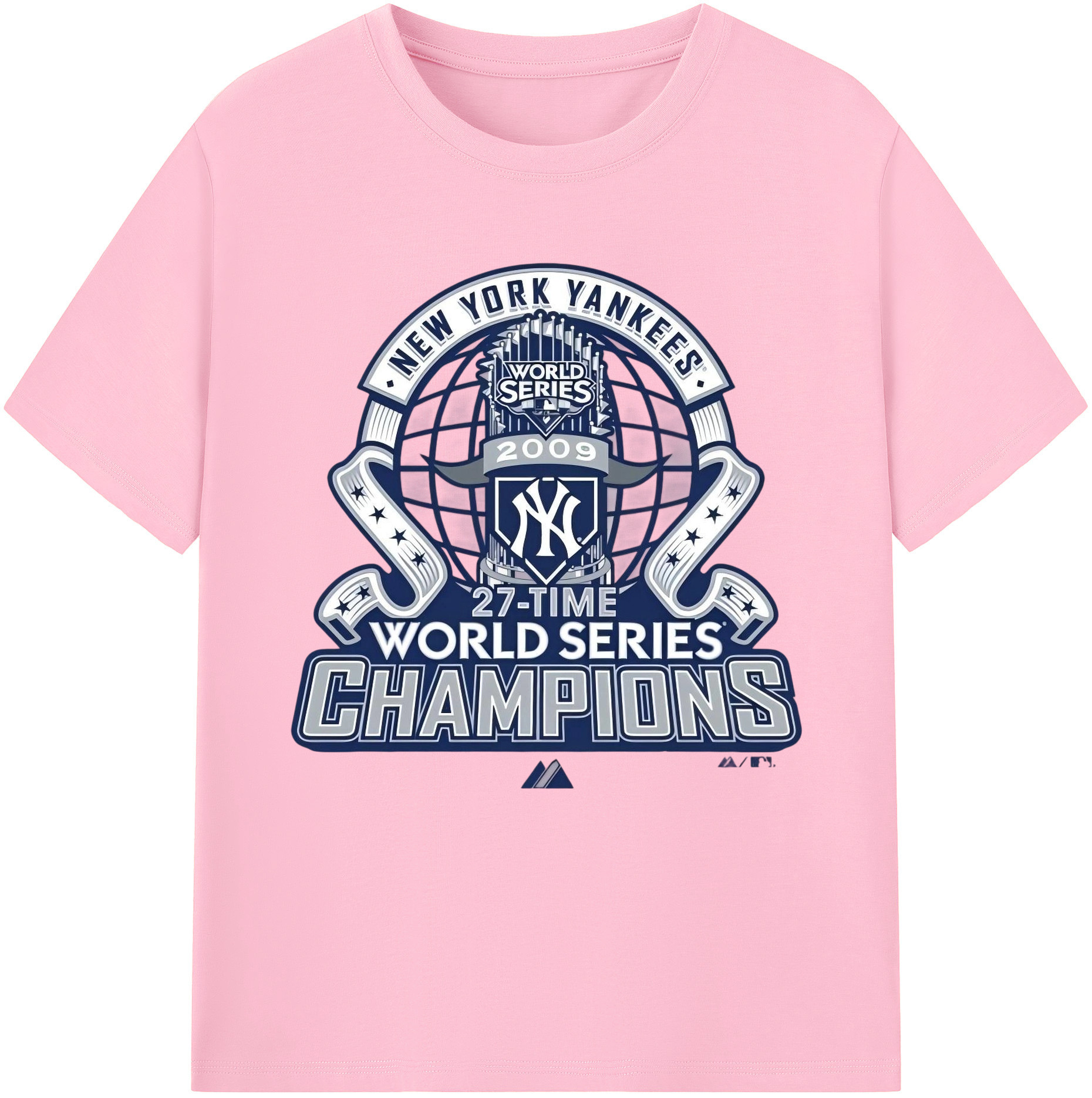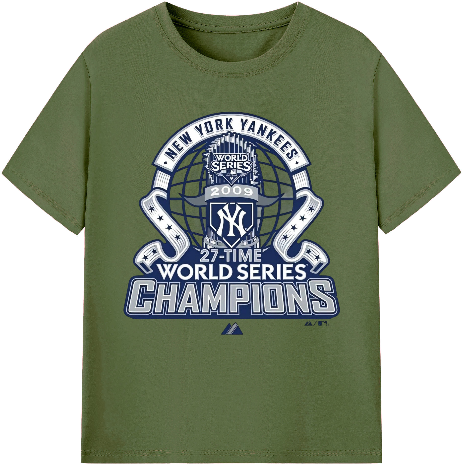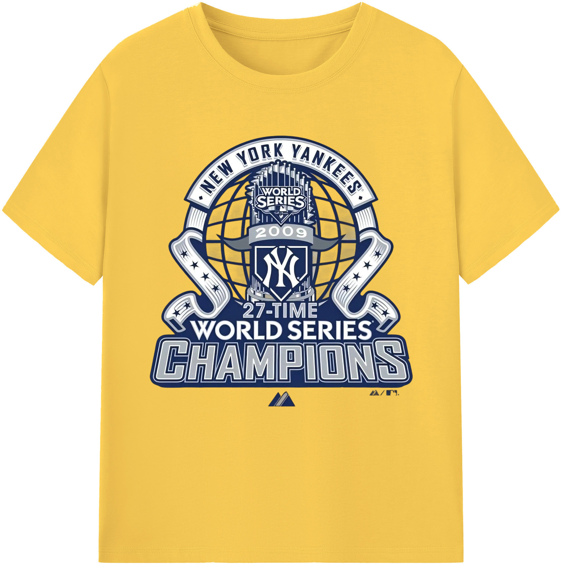 New York Yankees 2009 27th WS Champions Blue Combed Cotton T-Shirt 180g With Front Heat Transfer Print – Soft, Lightweight, Fitted Design – Stylish Casual Wear For Sports & Everyday Use